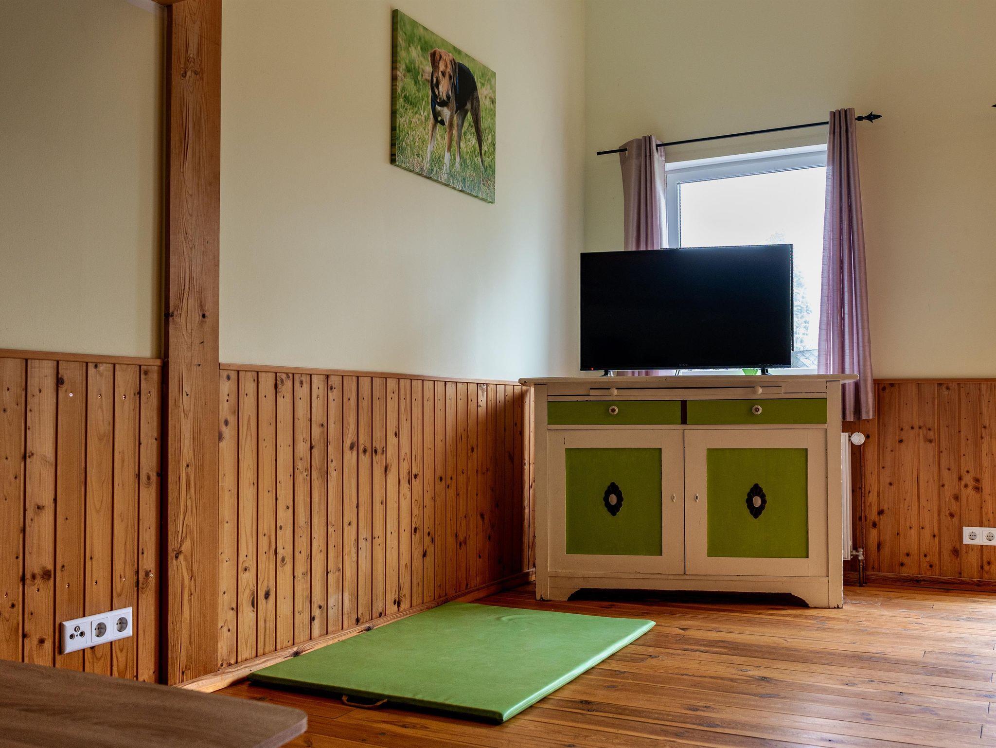 Im Hauptgebäude, einem ehemaligen Reiterhof, befindet sich der gemütliche Pfotentreff mit einer kleinen Gastroküche. Hier können unsere Gäste von Mittwoch bis Montag auf Wunsch frühstücken und auch zu Abend essen. Die vierbeinigen Begleiter dürfen selbstverständlich auch mit.