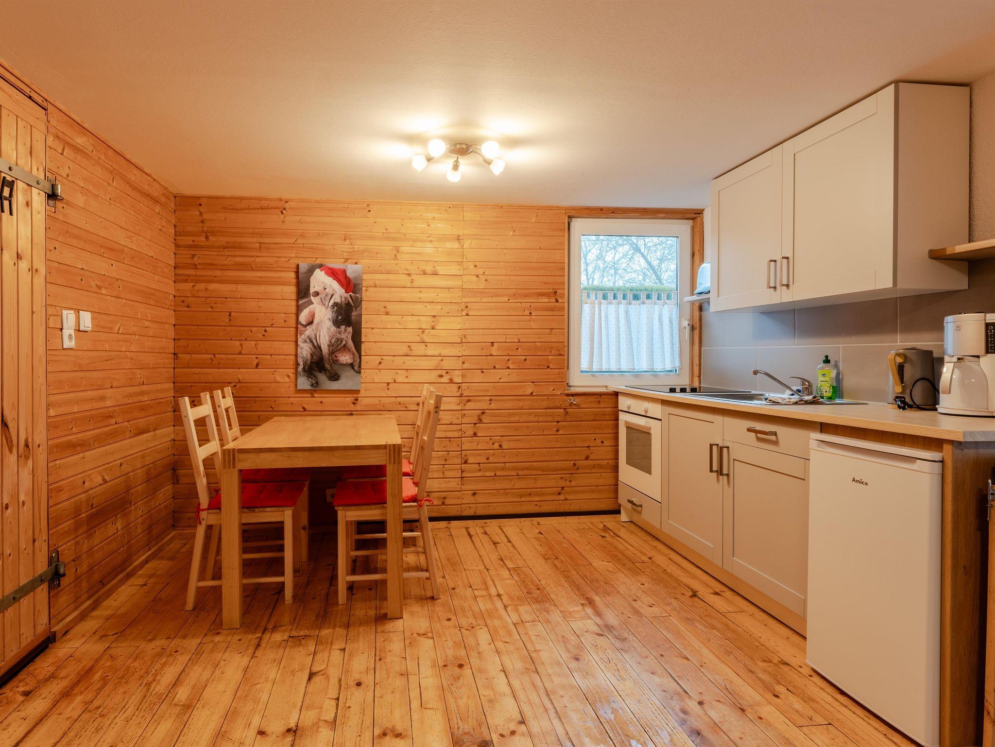 Die Ferienhäuser befinden sich auf dem 3000 qm großen, eingezäunten Gelände (Maschendrahtzaun, ca. 1,30m hoch). Die ganz aus Holz gebauten Häuser sind gemütlich und hundefreundlich eingerichtet und verfügen teilweise über einen eigenen Garten. Die beiden Ferienwohnungen wurden liebevoll in die alte Stallgasse hineingebaut.