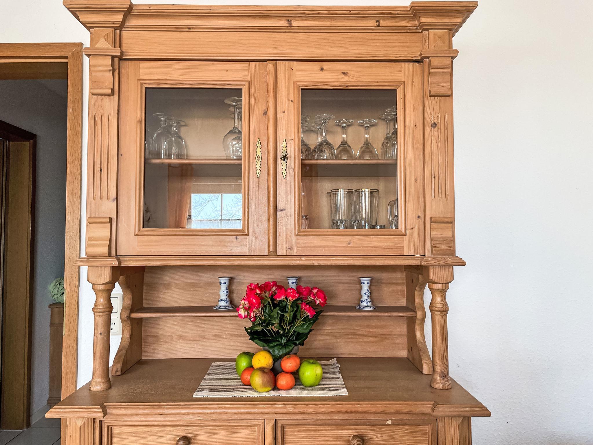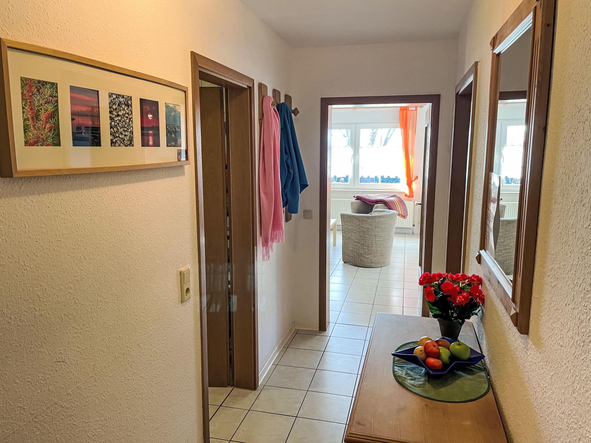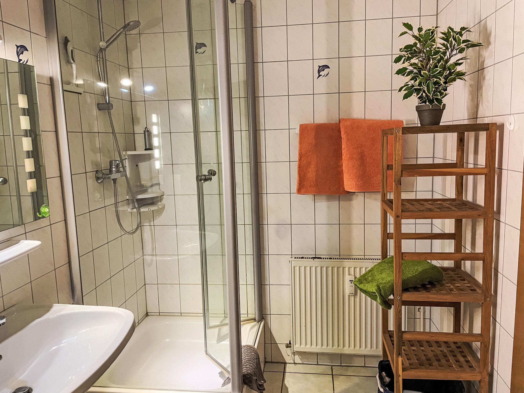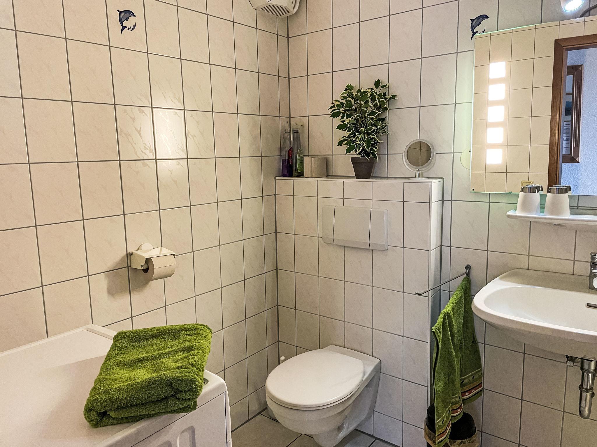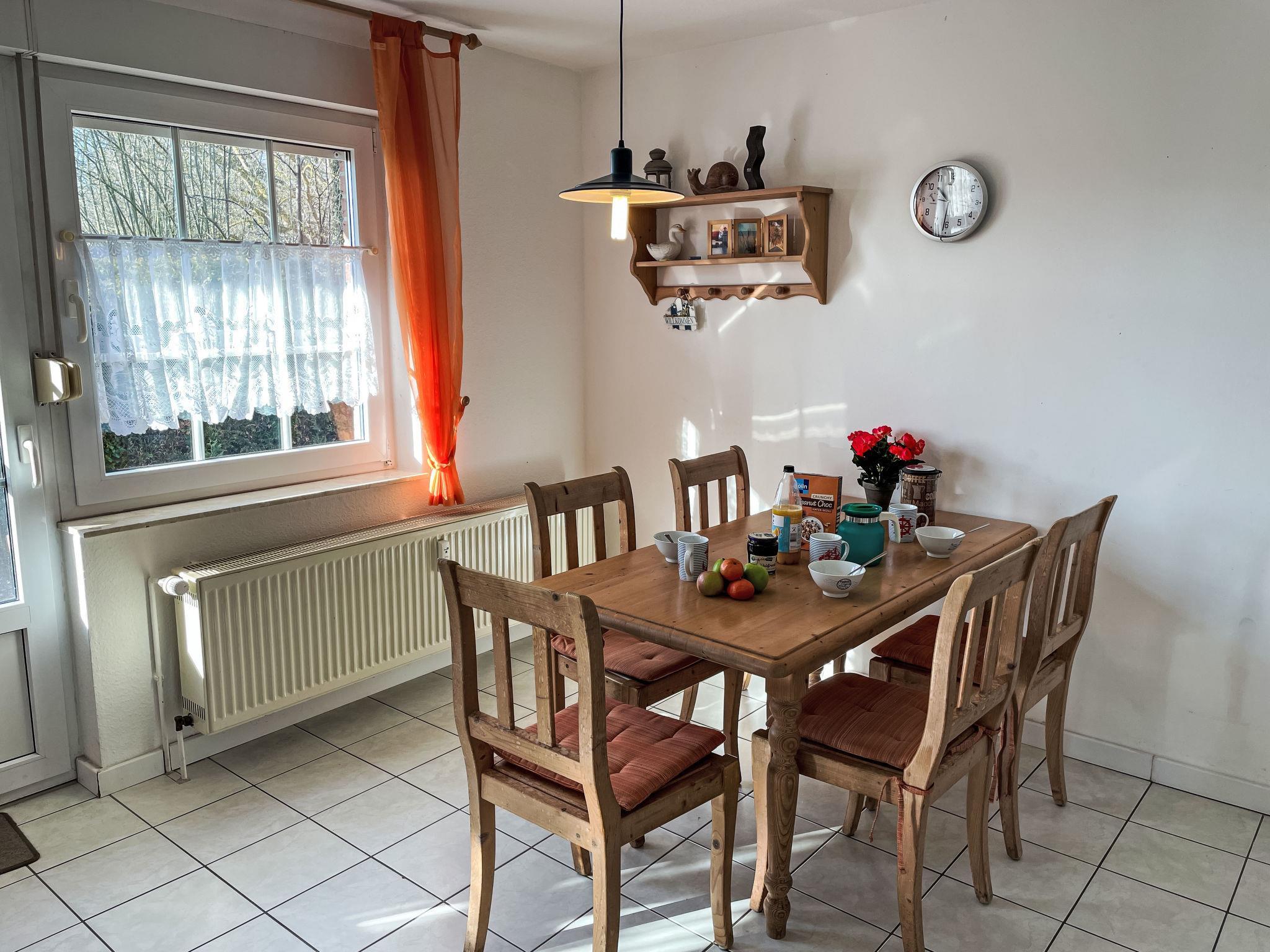 "Wohnung Nr.9 im Dörp", 3-room apartment 70 m2, on the ground floor. Beautiful and modern furnishings: living/sleeping room with 1 sofabed, dining table, satellite TV, radio and CD-player. Exit to the terrace. 1 double bedroom. 1 room with 1 french bed. Open kitchen (oven, dishwasher, 4 ceramic glass hob hotplates, toaster, kettle, microwave, electric coffee machine). Shower/WC. Gas heating. Terrace. Terrace furniture, box-room. Facilities: washing machine, children's high chair, baby cot. Internet (WiFi, free). Parking (1 car). Please note: non-smokers only. Smoke alarm. DE05988