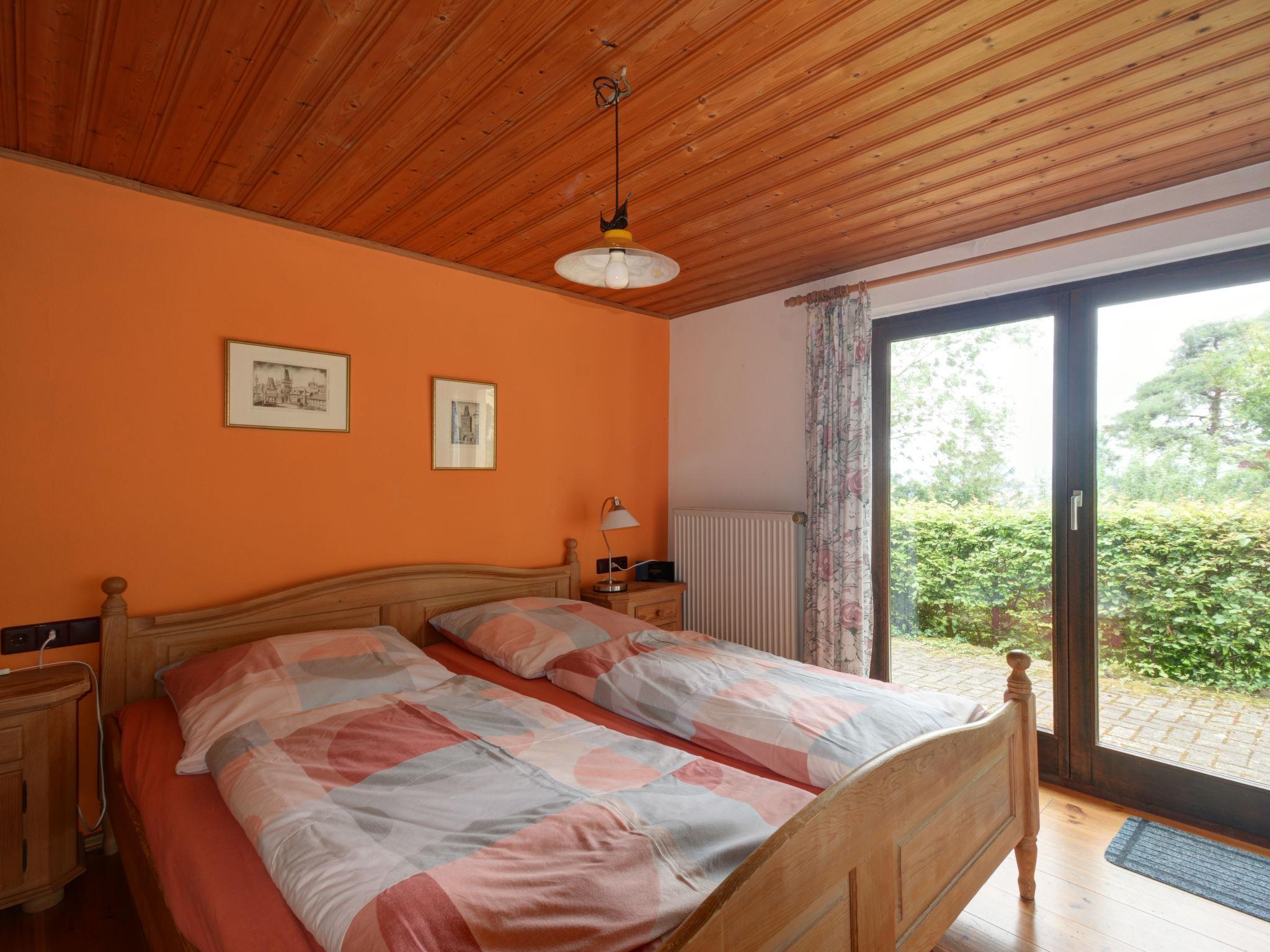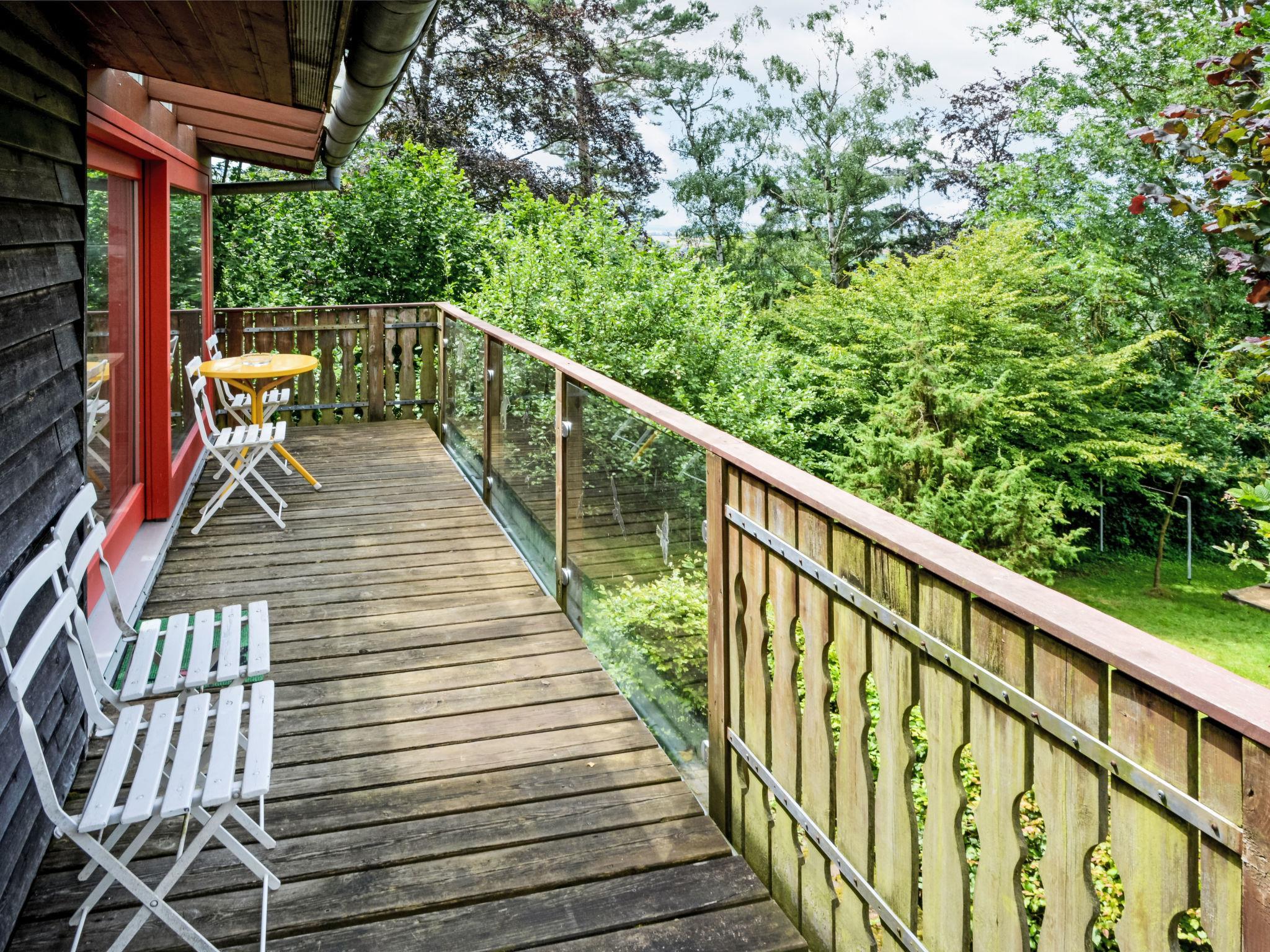4-room house 80 m2 on 2 levels. Cosy and wooden furniture furnishings: living room with winter garden with Scandinavian wood stove, dining nook, digital TV and hi-fi system. Exit to the balcony. 1 children's room with 1 x 2 bunk beds. Kitchen (oven, dishwasher, 4 ceramic glass hob hotplates, microwave, electric coffee machine). Sep. WC. On the lower ground floor: 1 room with 1 x 2 bunk beds. 1 double bedroom. Exit to the garden. Bath/shower/WC, Sauna. Balcony 10 m2, terrace 10 m2. Terrace furniture, box-room. Facilities: children's high chair, logs (free). Please note: non-smoking house. Smoke alarm, fire extinguisher. DVBT TV .