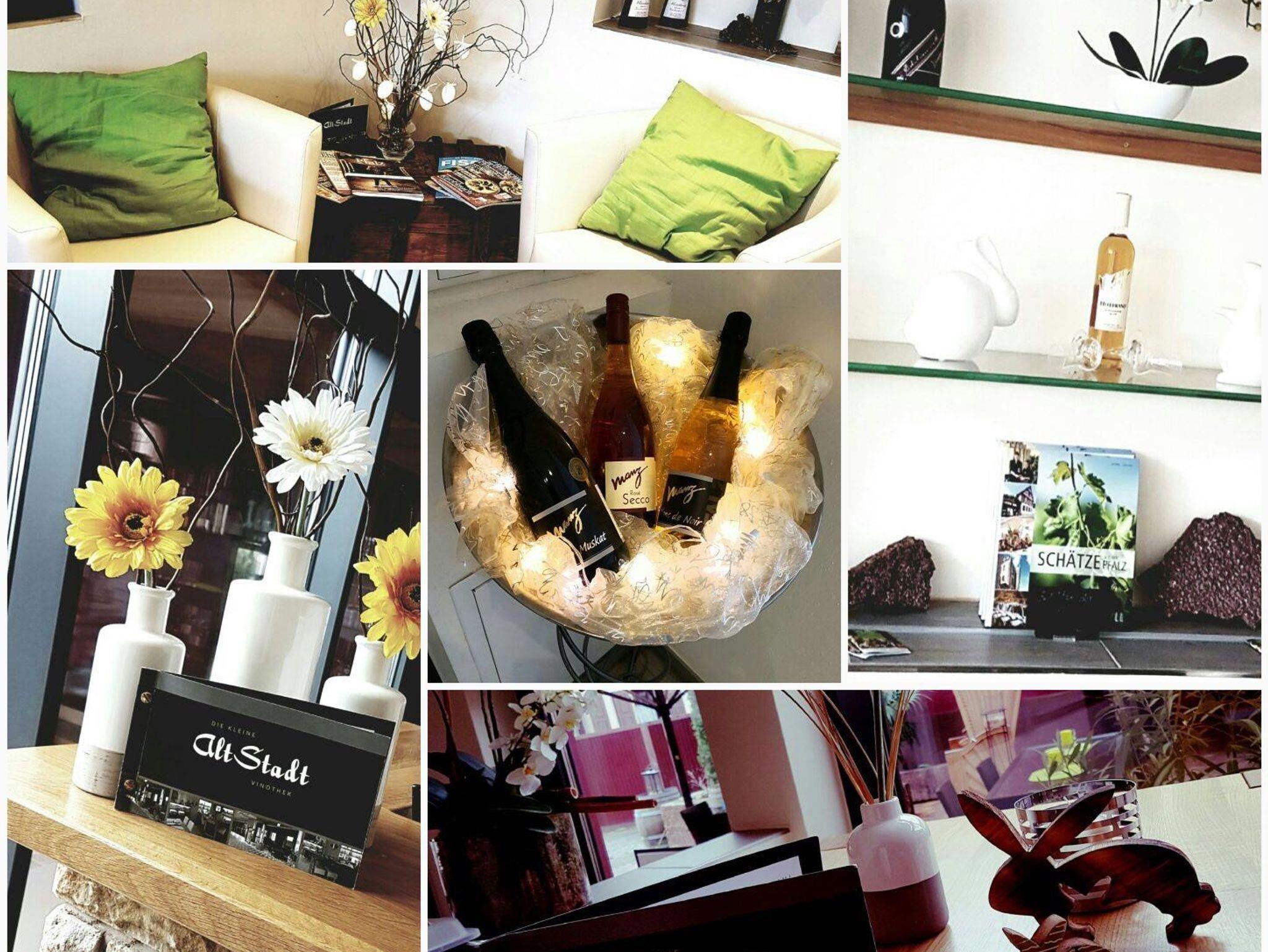 In unserer Weinbar und Vinothek, mit Sitzplätzen im rebenüberdachten Innenhof können Sie verweilen und genießen. Neben unseren Weinen bieten wir verschiedene kleine Speißen, hausgebackenen Kuchen und Kaffee an.