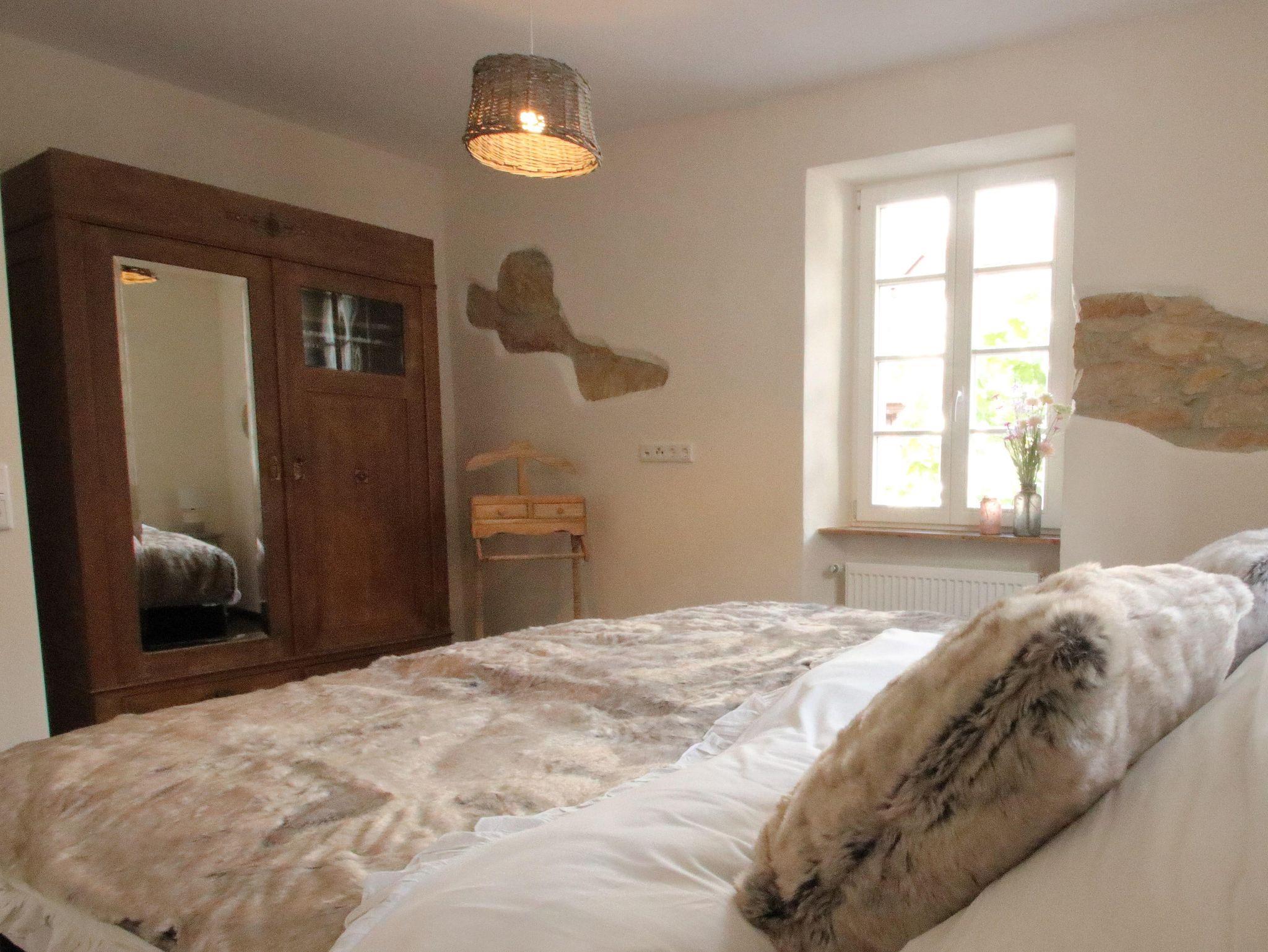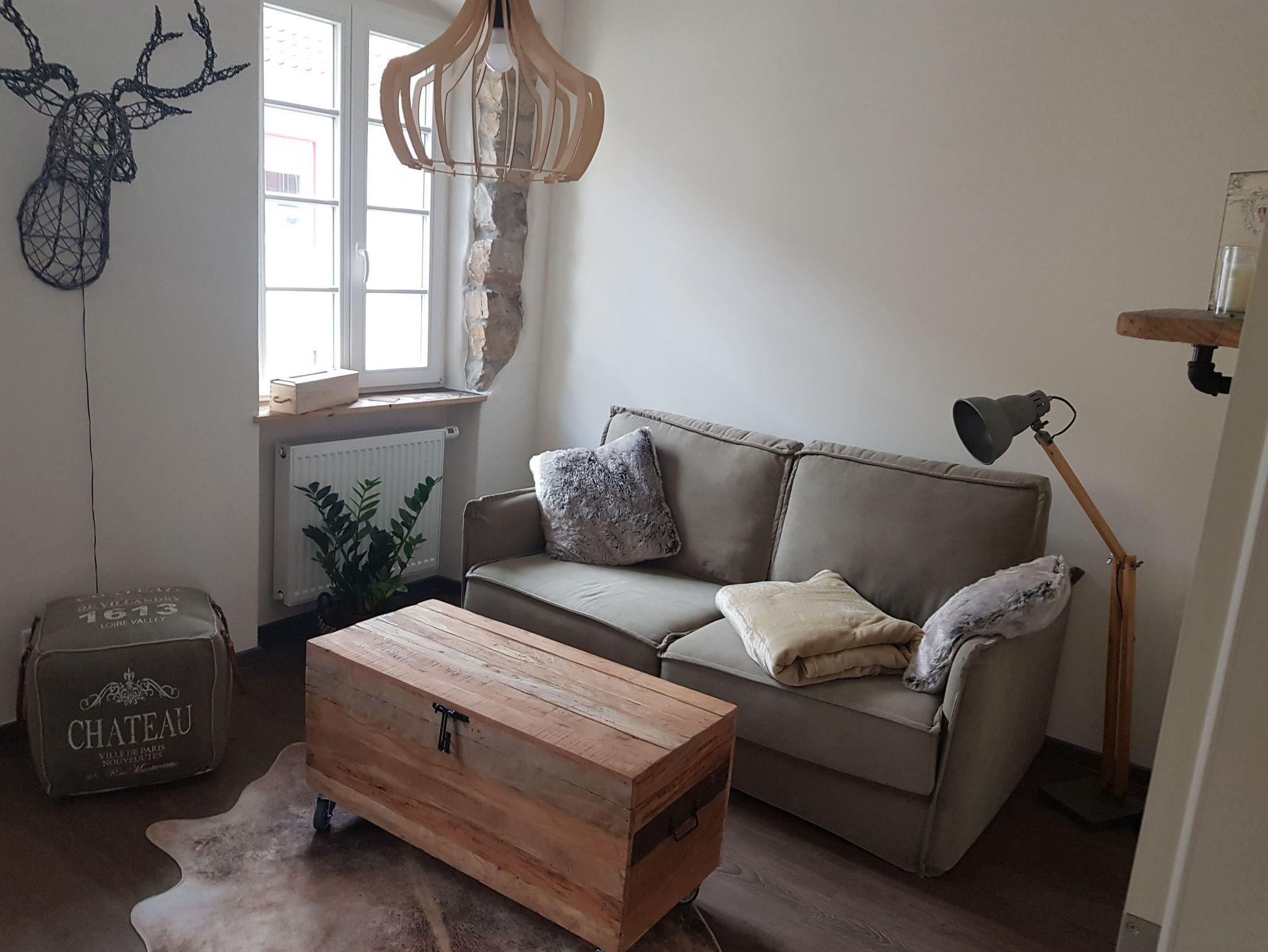 Unsere „Almhütte“ im 1. Obergeschoss, ausgestattet mit Naturmöbeln lädt zum Verweilen ein. Auf 43 qm erwartet Sie eine offene Küche mit Essbereich, ein Badezimmer mit Natursteinwaschbecken, ein Schlafzimmer mit einem großen Boxspringbett und ein Wohnzimmer mit komfortablem Schlafsofa. Innenhof lädt mit einer Sitzgelegenheit zum gemütlichen Beisammensein ein. Außerdem befindet sich dort ein PKW Stellplatz sowie die Möglichkeit Fahrräder unterzustellen. Im Keller steht eine Waschmaschine sowie ein Trockner zur gemeinschaftlichen Nutzung zur Verfügung. Handtücher, Bettwäsche und Endreinigung sind im Preis inklusive.