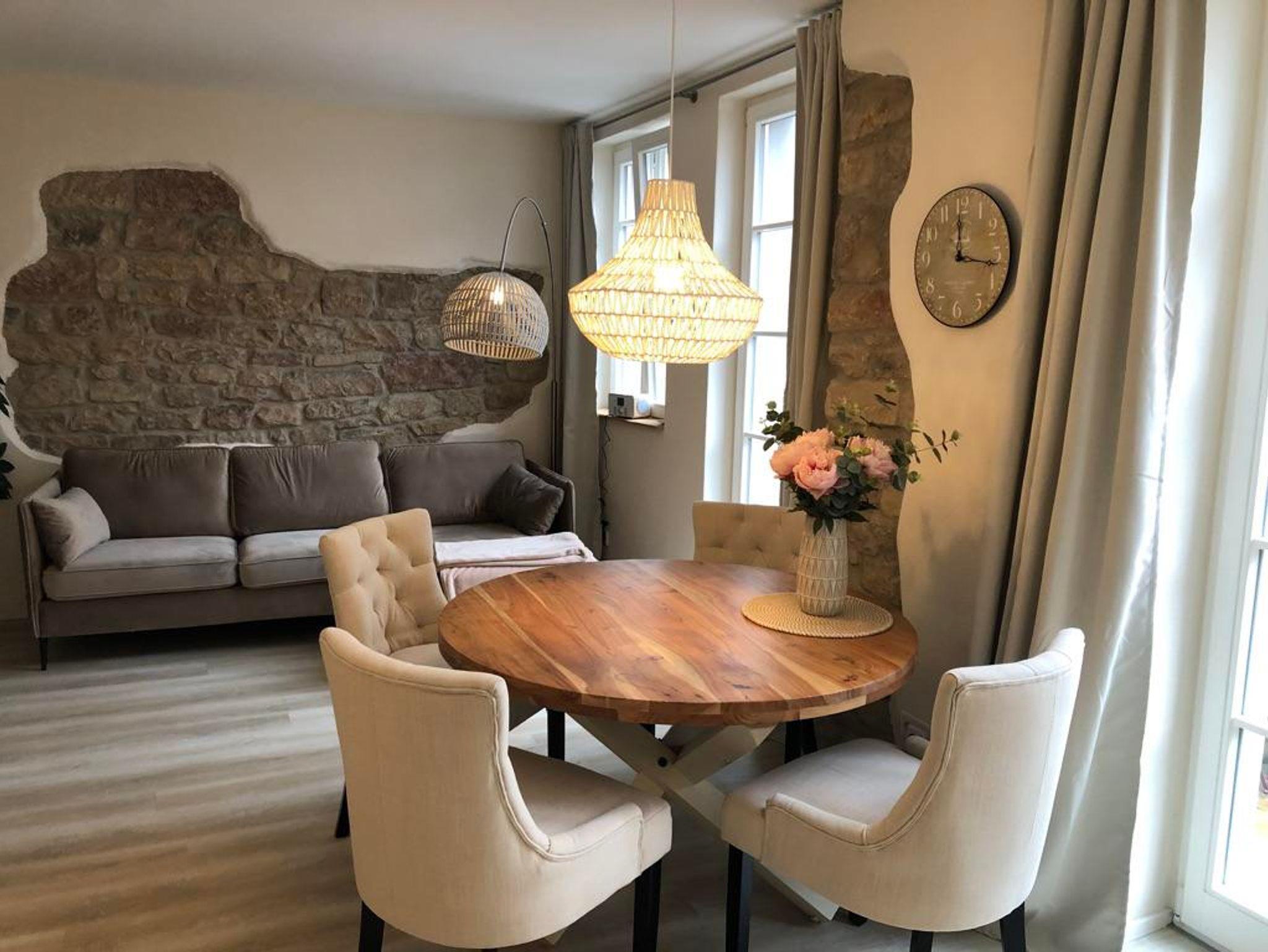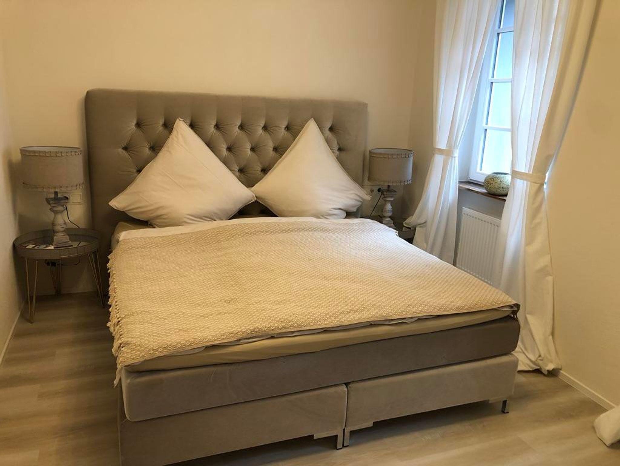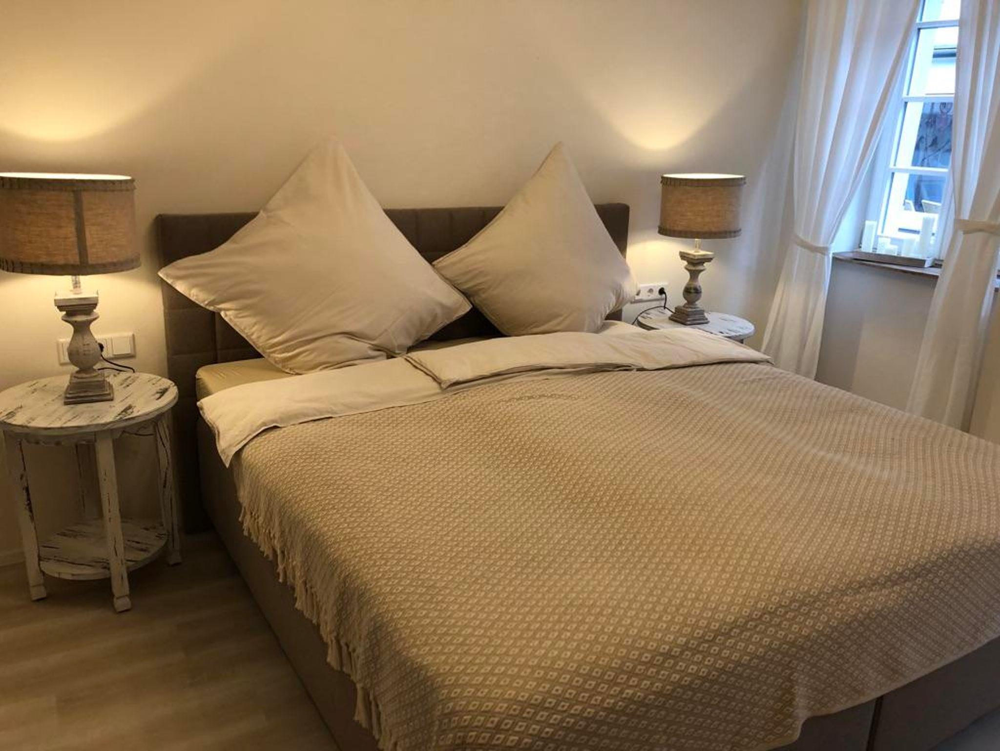 Wer das Exclusive liebt, fühlt sich in unserem „Landhaus“ angekommen. Auf 66 qm im Erdgeschoss erwartet Sie eine offene Wohnküche mit Essbereich, Sofa und Zugang zur eigenen Terrasse mit Sitzgelegenheit, ein Badezimmer, ein separates WC und zwei Schlafzimmer, die jeweils mit einem großen Boxspringbett ausgestattet sind. Außerdem befindet sich im Innenhof ein PKW Stellplatz sowie die Möglichkeit Fahrräder unterzustellen. Im Keller steht eine Waschmaschine sowie ein Trockner zur gemeinschaftlichen Nutzung zur Verfügung.Handtücher, Bettwäsche und Endreinigung sind im Preis inklusive.