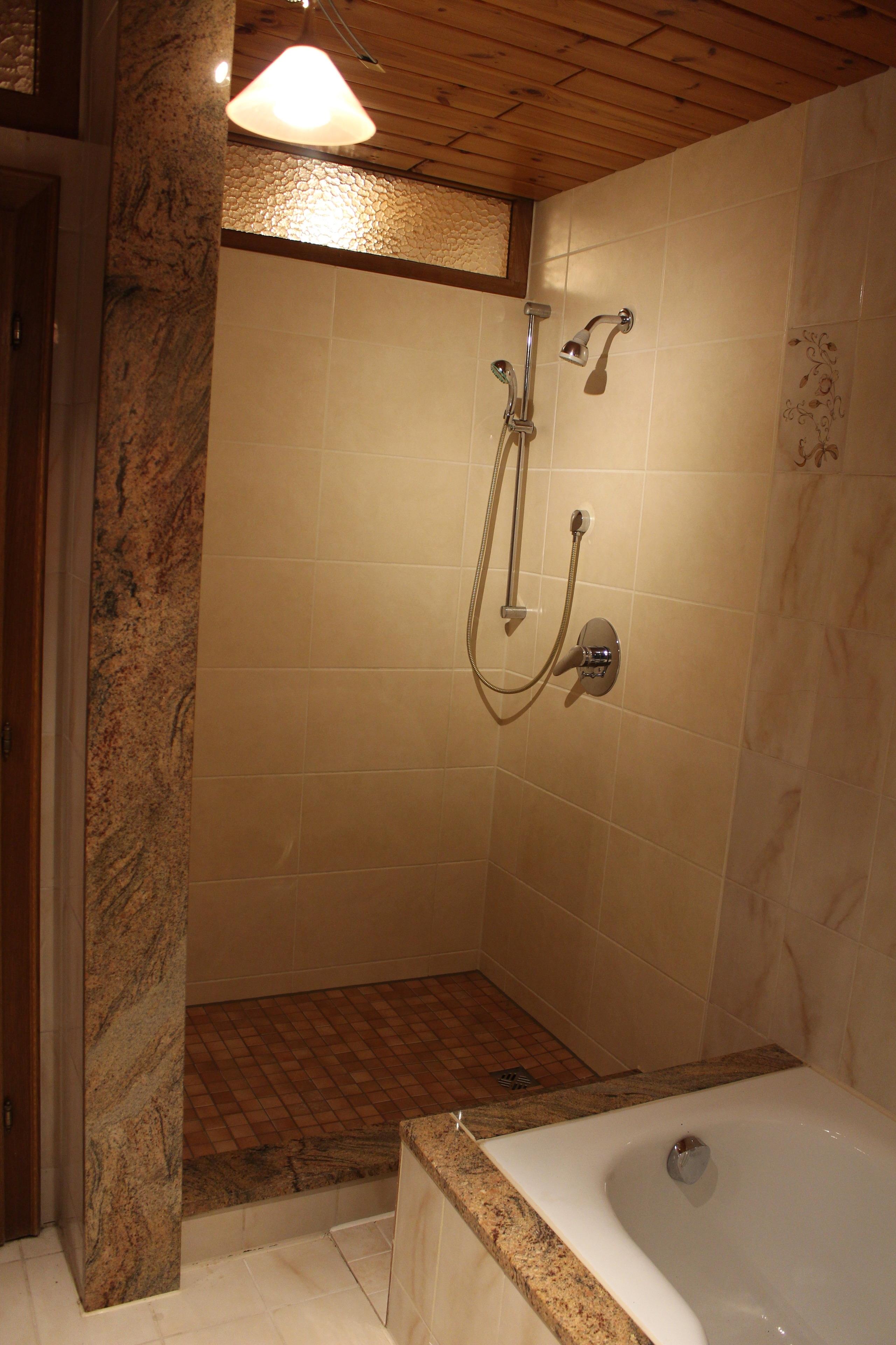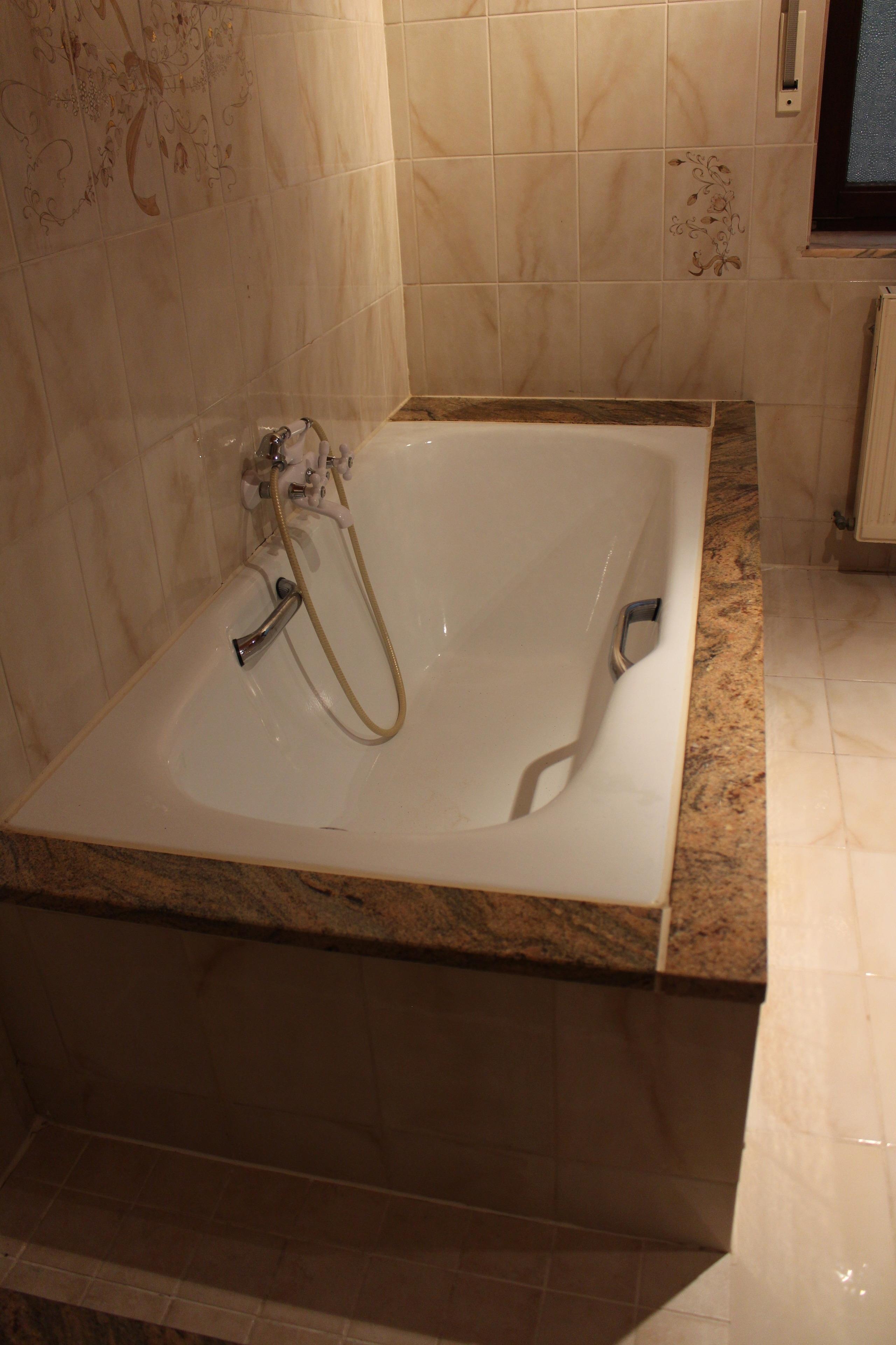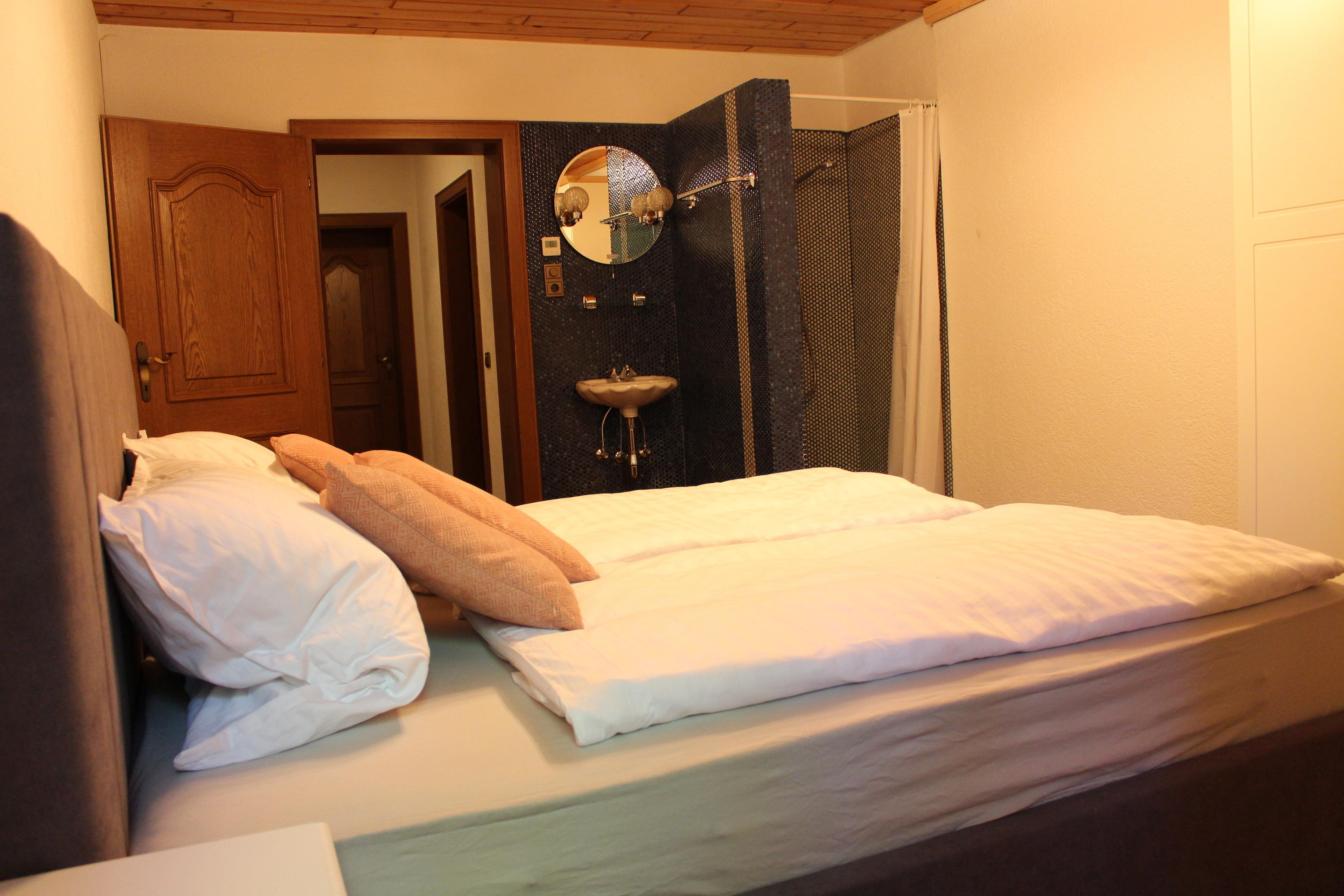 Das Badezimmer ist mit Dusche, Badewanne, WC und Waschbecken ausgestattet.