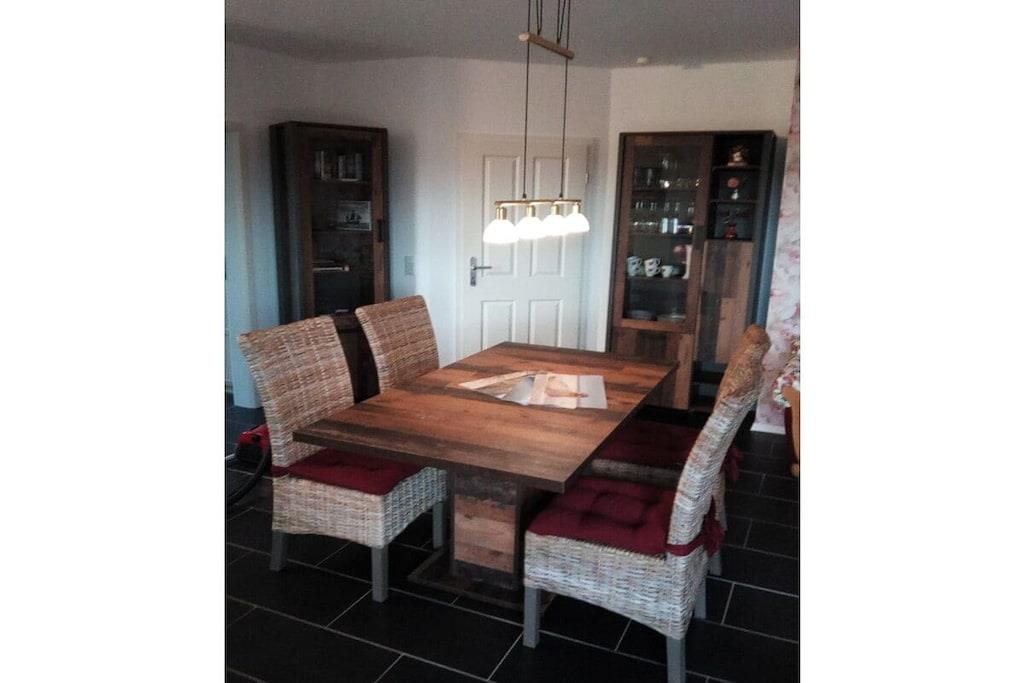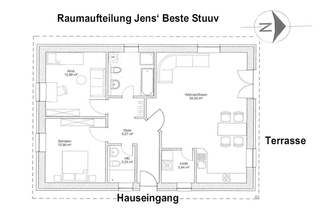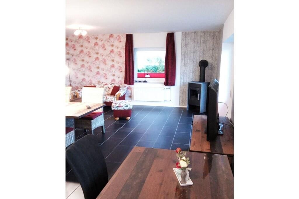 "Jen's Beste Stuuv" is a wonderful holiday home for your break from everyday life! It offers modern comforts and a magnificent view of the countryside – enjoy a long sunbath on the terrace! The house was built in 2015 and offers plenty of space for up to four people, even with babies or dogs. The spacious living and dining area leaves nothing to be desired and boasts modern furnishings, and a fireplace provides cozy warmth. Delicious delicacies can be prepared in the fully equipped open kitchen. For a good night's sleep, there are two bedrooms – one with a double bed and the second with two single beds. The holiday home is equipped with one full bathroom and one shower room.