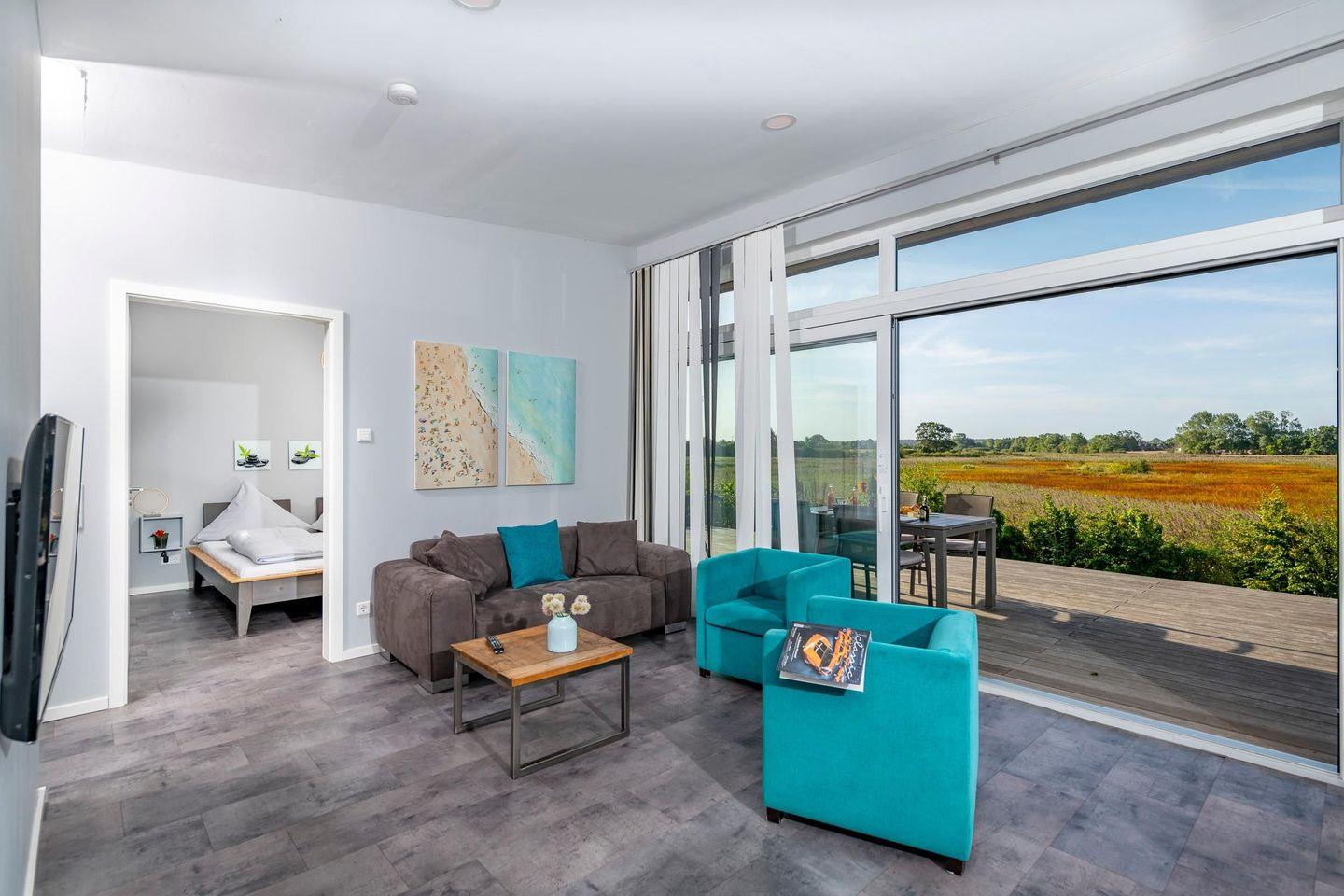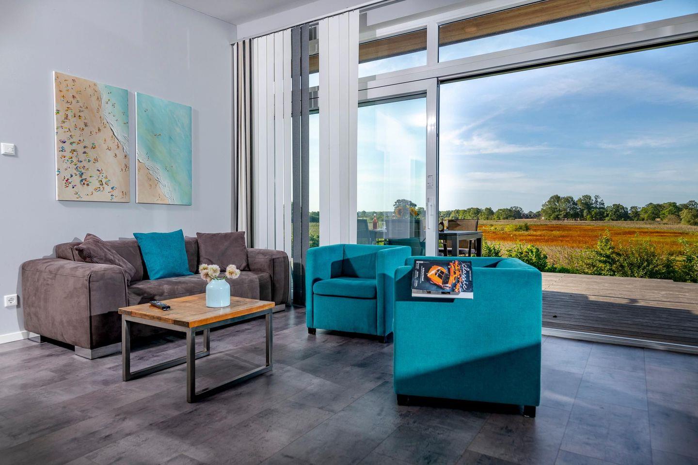 Mitten im Landschaftsschutzgebiet der Geltinger Bucht und nur 50 Meter vom Meer entfernt präsentiert sich das Ferienhaus Auszeit als architektonisches Highlight. Leicht erhöht über dem Boden schwebend, fügt sich das Haus harmonisch in die umliegende Natur ein. Klare Linien, viel Licht und ein durchdachtes Raumkonzept schaffen einen besonderen Rückzugsort für 2 bis 4 Personen.