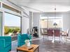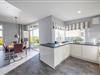Die offene, hochwertig ausgestattete Küche geht fließend in den Essbereich mit massivem Esstisch über.
