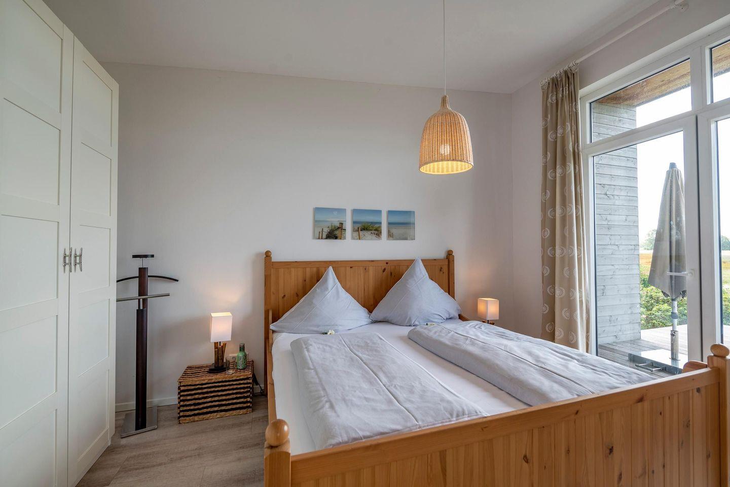 Das Ferienhaus Insel besticht durch einen frischen, unkomplizierten Strandhausstil mit maritimem Flair. Natürliche Materialien wie Rattan und naturbelassene Hölzer schaffen ein warmes, entspanntes Wohngefühl. Dezente Naturtöne erinnern an Strand und Dünen und sorgen für ein harmonisches Ambiente. Die gekalkten Holzdielen laden dazu ein, barfuß durch die Räume zu laufen – ein echtes Urlaubsgefühl für Körper und Seele.