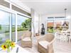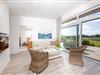 Das Hauptschlafzimmer begeistert mit malerischem Ausblick, ergänzt durch ein stilvolles Badezimmer mit gläserner Regenwalddusche.