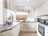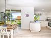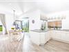 Die offene, hochwertig ausgestattete Küche geht fließend in den Essbereich mit massivem Esstisch über.