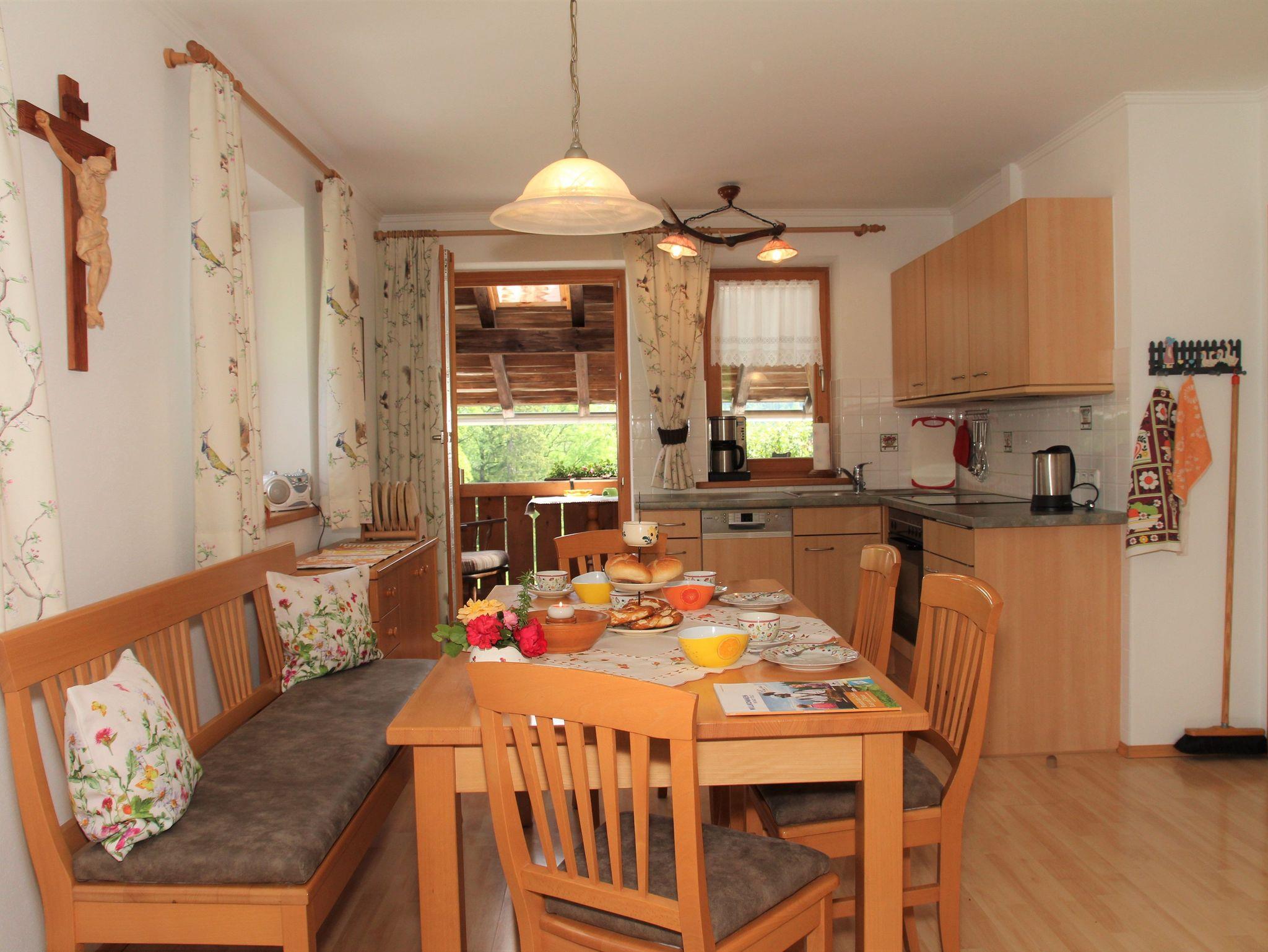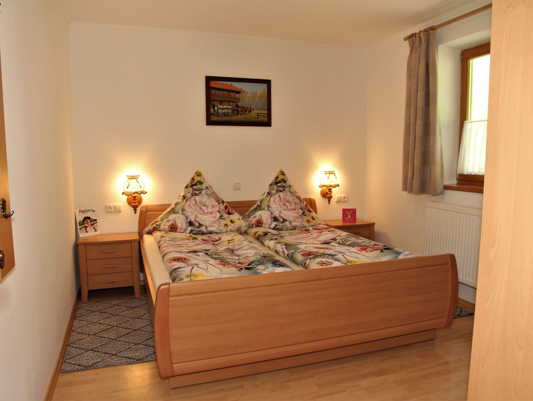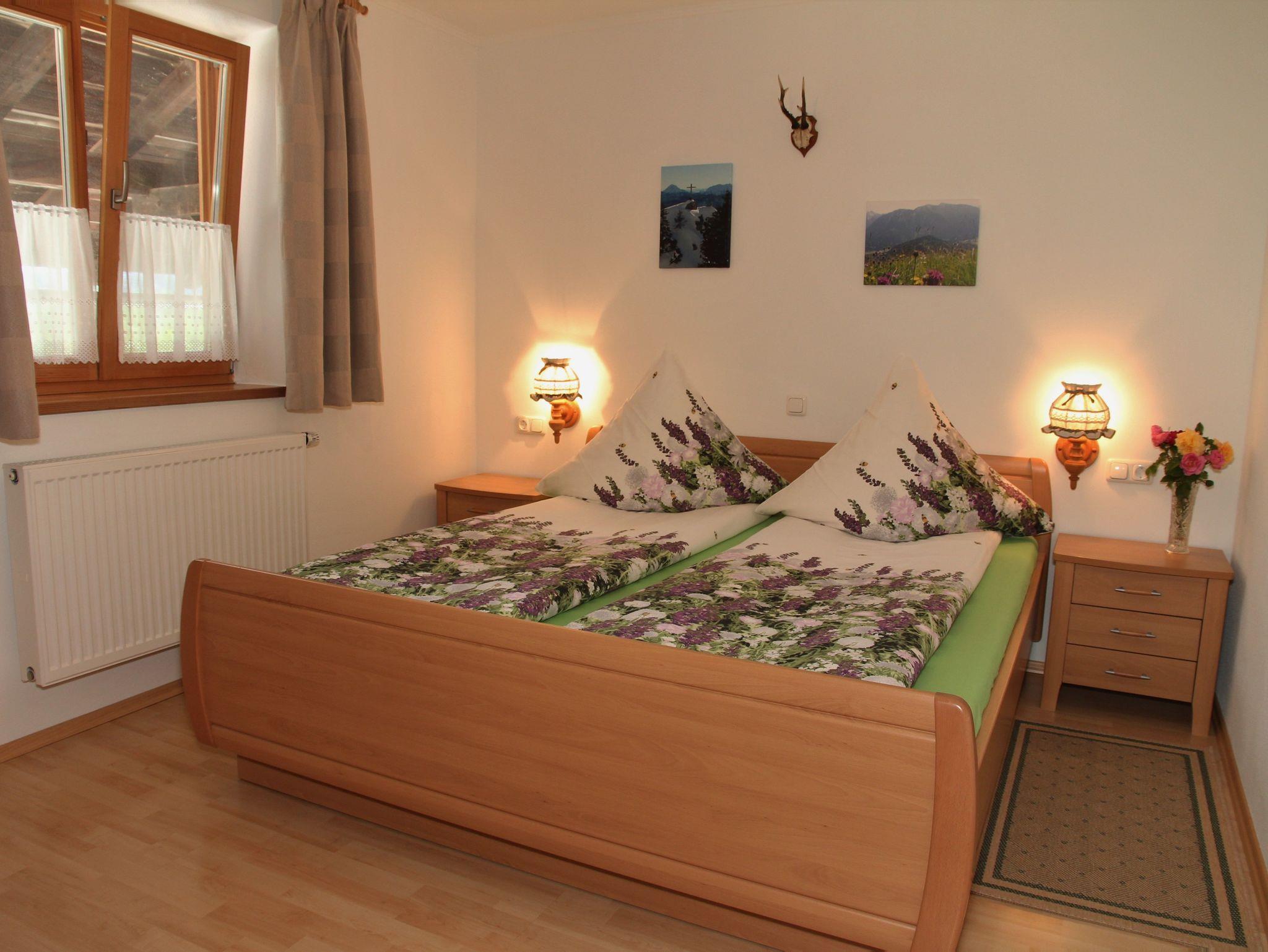 Die ruhige Ferienwohnung befindet sich im Nebengebäude, Hochparterre mit Parkplatz vor der Wohnungseingangstür möglich, mit Terrasse und Balkon. Geschmackvoll eingerichtete Räume in gemütlicher Atmosphäre in alpenländlichem Design. Die Wohnküche ist komplett ausgestattet, mit Zugang zum Balkon. Zwei Schlafzimmer mit guten Komfortmatratzen, geräumiges Bad mit reichlich Handtüchern zur freien Verfügung, großer Flur.