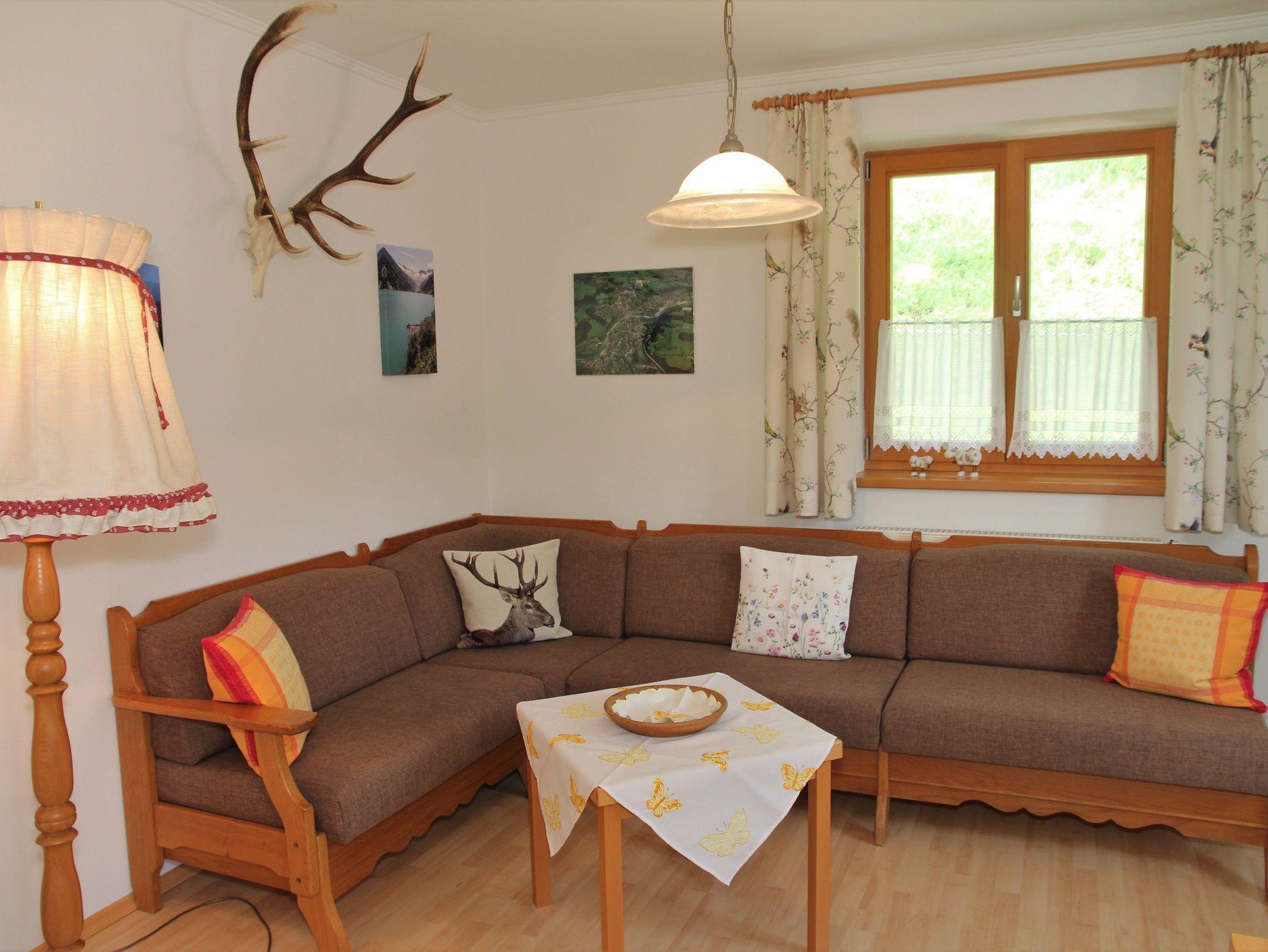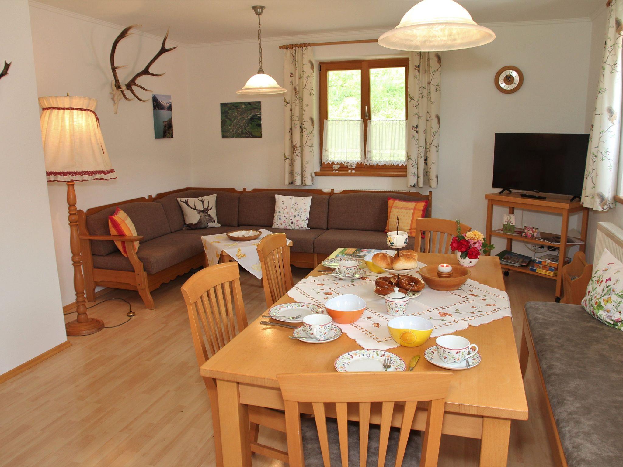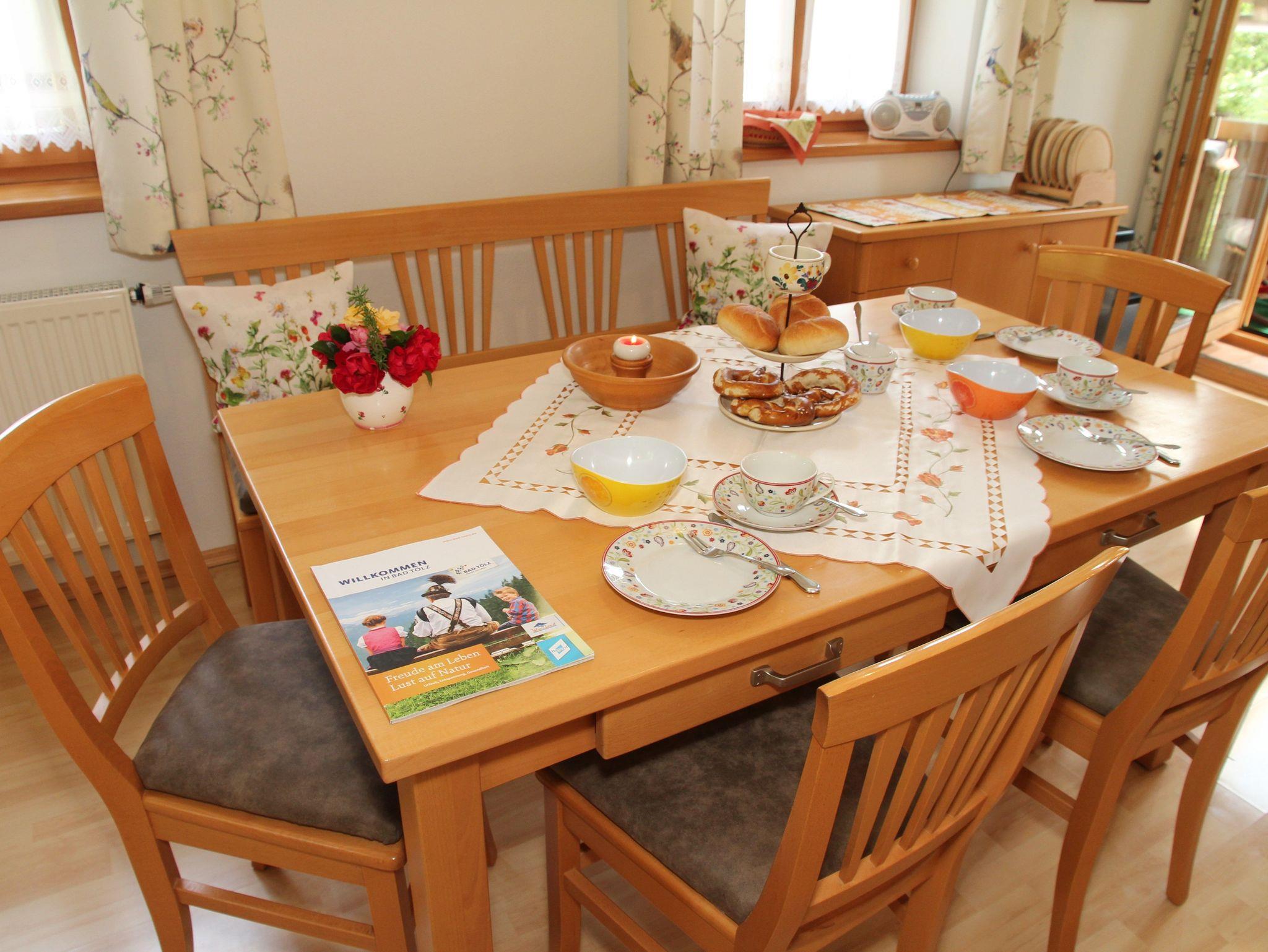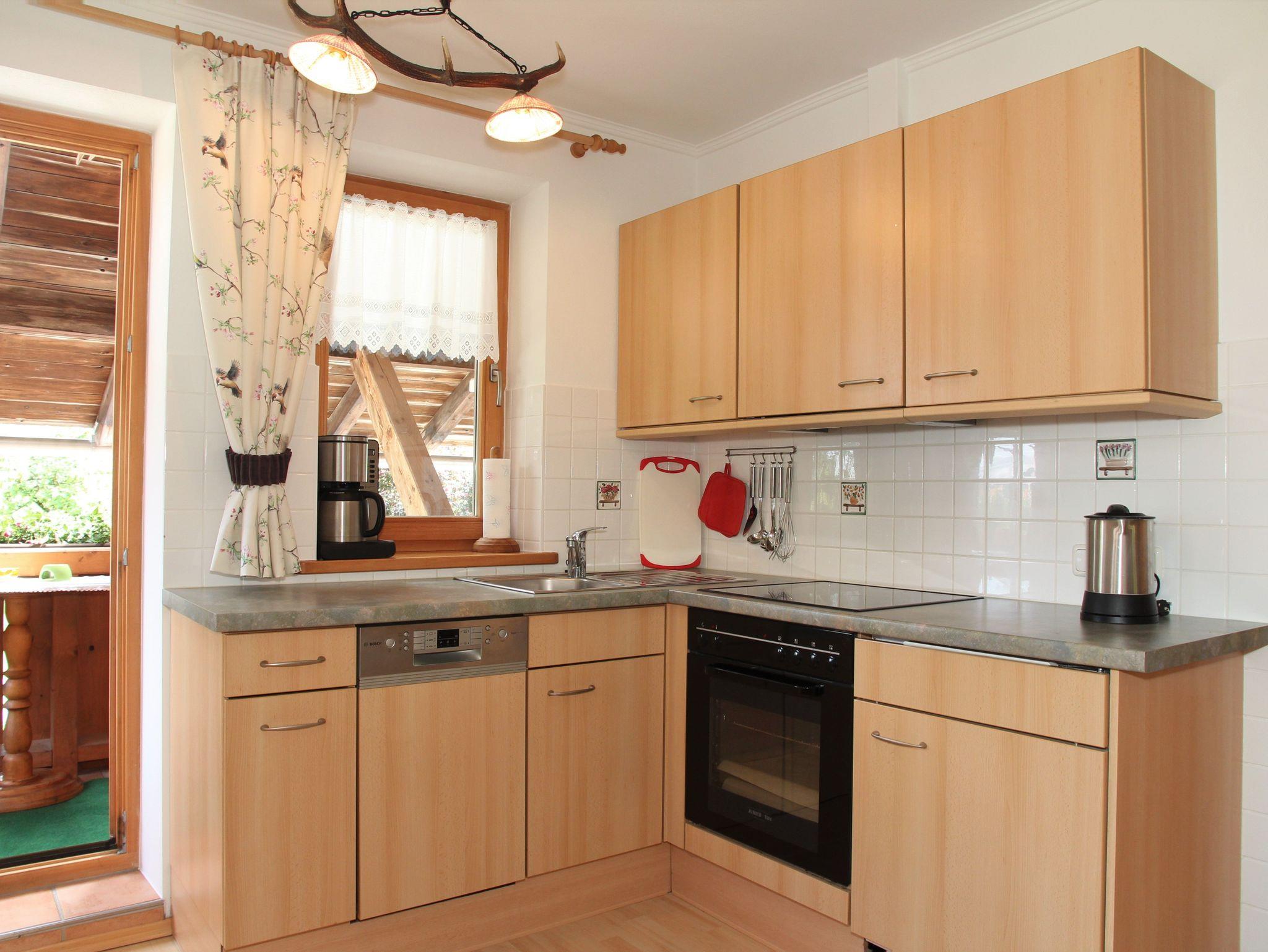 Die ruhige Ferienwohnung befindet sich im Nebengebäude, Hochparterre mit Parkplatz vor der Wohnungseingangstür möglich, mit Terrasse und Balkon. Geschmackvoll eingerichtete Räume in gemütlicher Atmosphäre in alpenländlichem Design. Die Wohnküche ist komplett ausgestattet, mit Zugang zum Balkon. Zwei Schlafzimmer mit guten Komfortmatratzen, geräumiges Bad mit reichlich Handtüchern zur freien Verfügung, großer Flur.