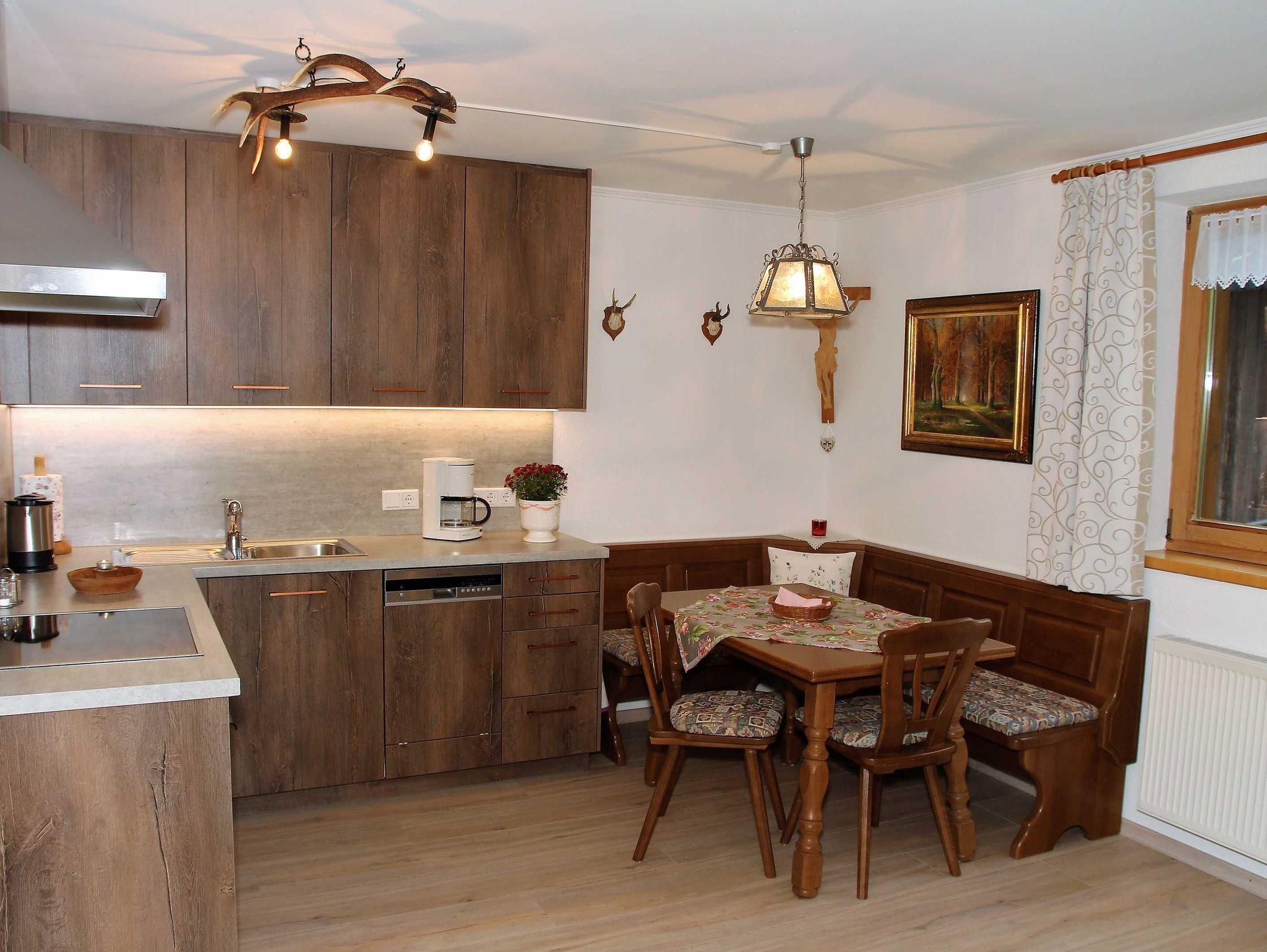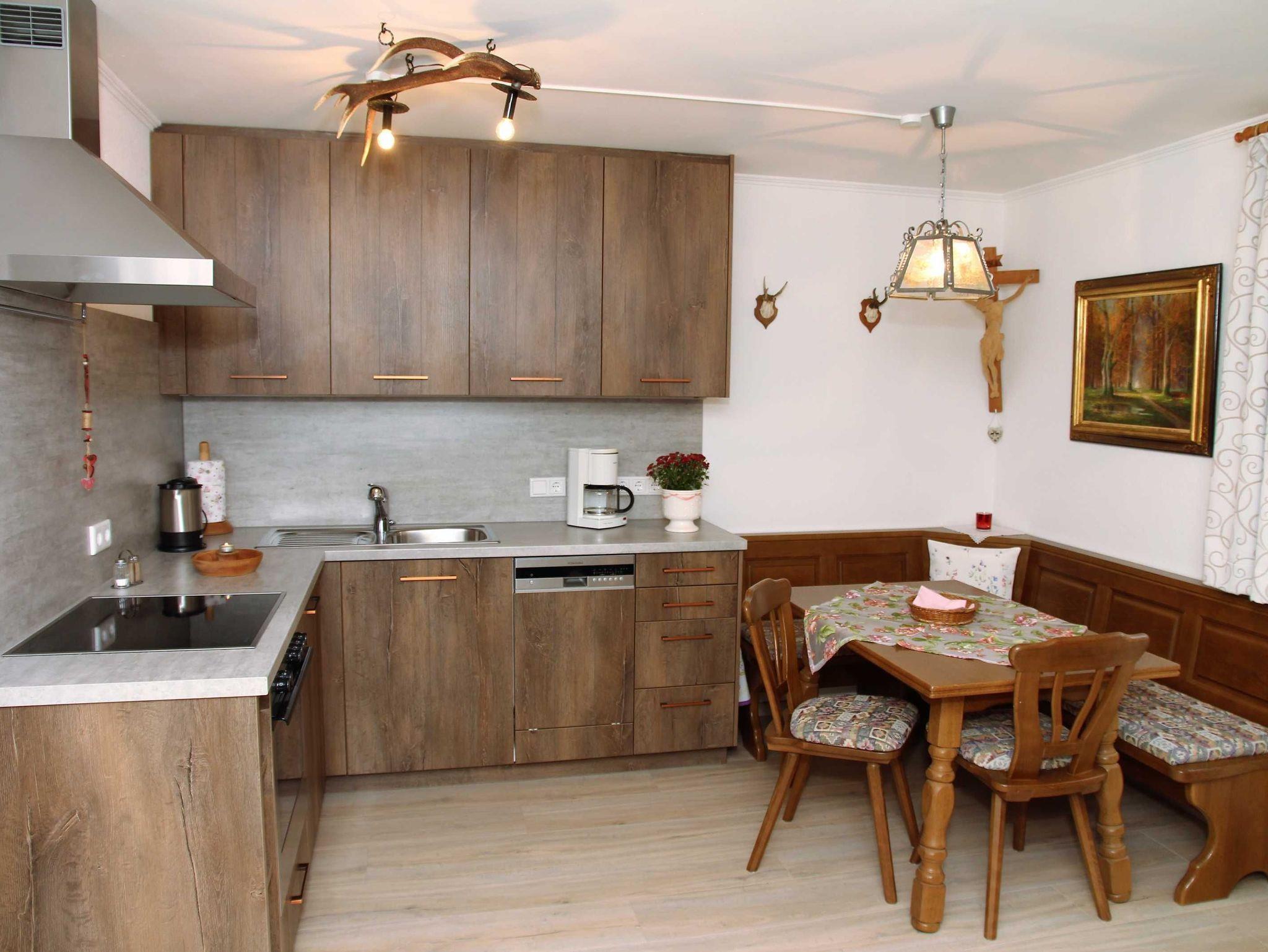 Die Ferienwohnung befindet sich im Nebengebäude, Hochparterre mit Terrasse und über eine Aussentreppe erreichbar. Urig, geschmackvoll eingerichtete Räume in gemütlicher Atmosphäre, in alpenländlichem Design. Wohnküche komplett ausgestattet, Schlafzimmer mit guten Matratzen und Bad mit reichlich Handtüchern.