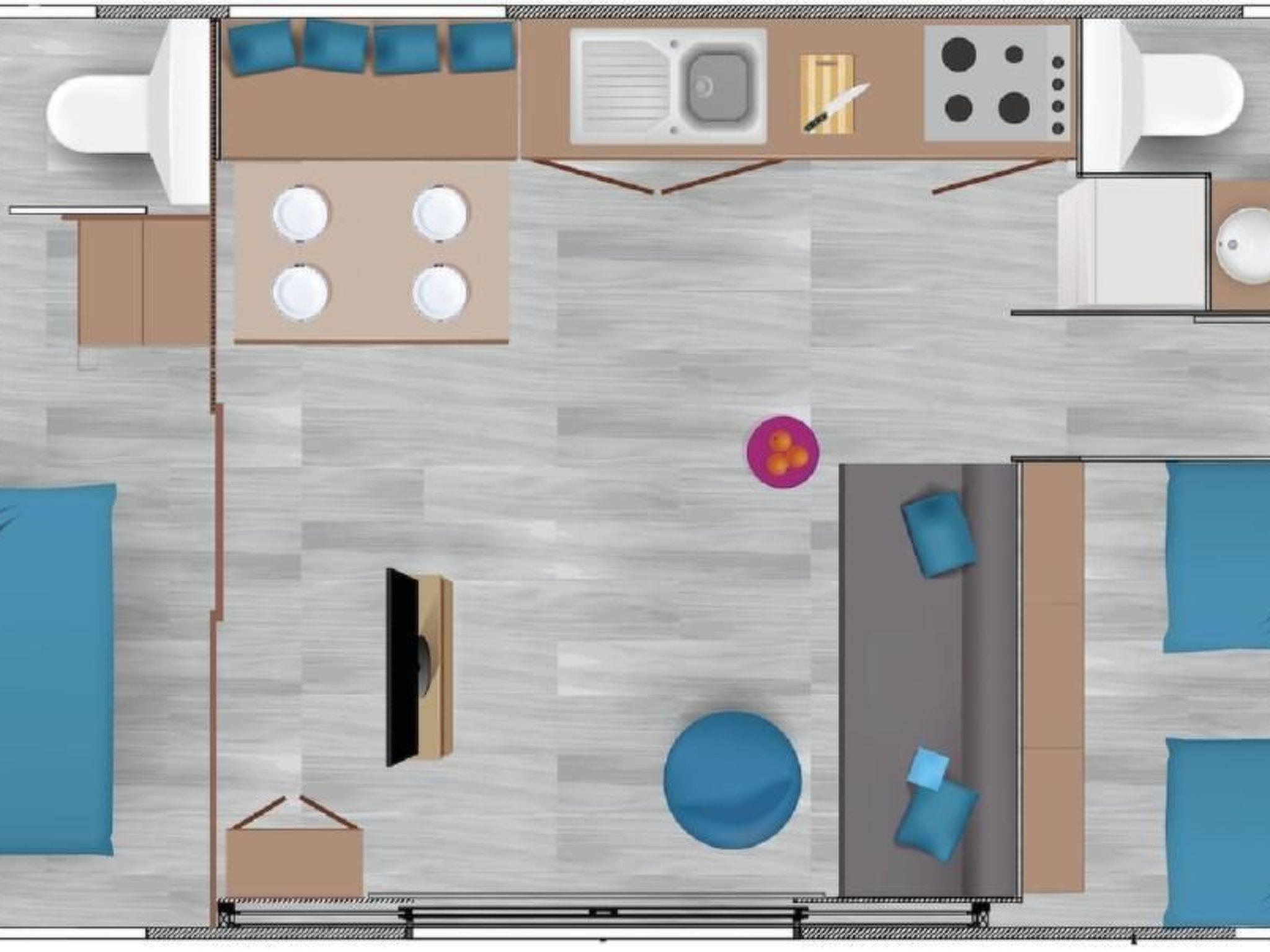 Welcome to our mobile holiday apartment of Wackersdorf. You will have two bedrooms and a big living area with a sofa bed. It is perfect for 5 people. This mobile home has a smart room layout of 40 m² and offers everything you need for a relaxing stay. In the kitchen you will find all electrical appliances to include a dishwasher, fridge, freezer, coffee maker and much more.