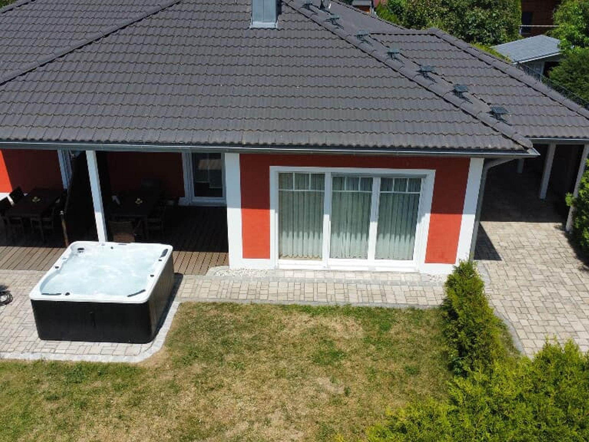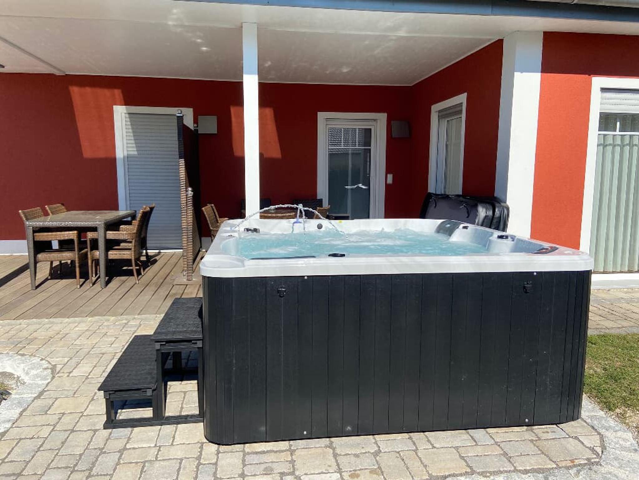 Zwei Bungalows nebeneinander, hier der große Winkelbungalow, genannt: Murnerseehaus ist unterteilt in großes und kleines Appartement mit zwei Hauseingängen. Die gute Raumaufteilung ermöglicht dennoch für 5 Personen Platz: 5 Betten und eine zusätzliche Schlafmöglichkeit im WZ (auf Anfrage).Der Whirlpool vor der Terasse kann gegen einen Aufpreis dazugebucht werden.