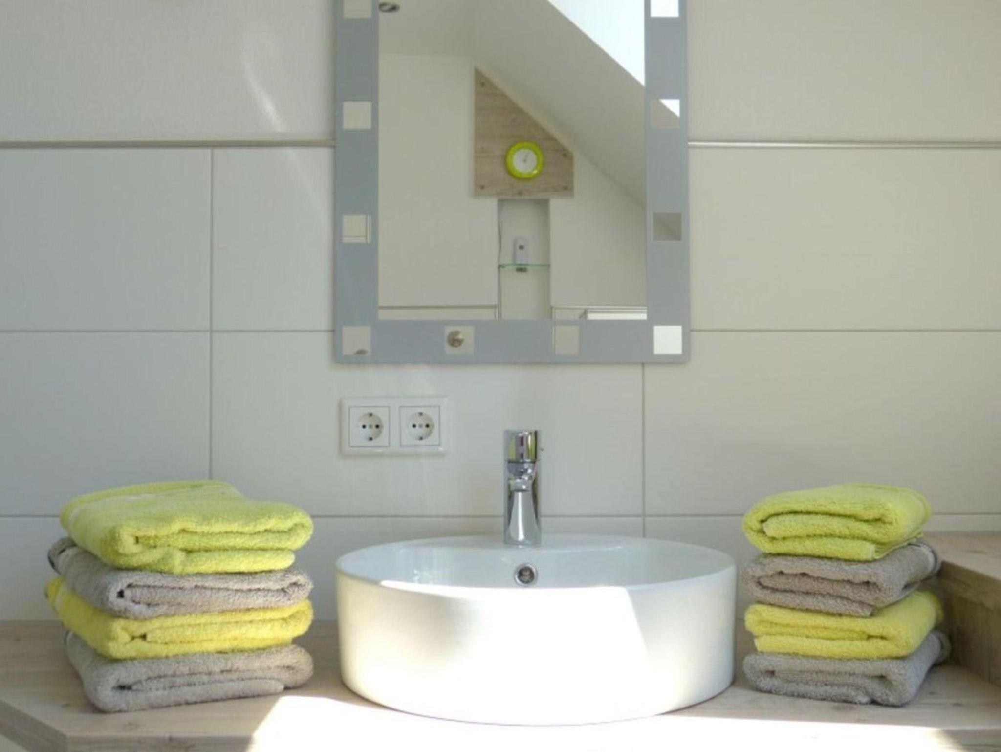 Das Highlight im hellen Tageslichtbad ist die große bodenebene, verglaste Dusche mit rutscharmen Mosaik-Bodenbelag. Neben umfangreichen Ablageflächen sowie einer automatische Nachtbeleuchtung, sorgt ein Handtuchheizkörper für Behaglichkeit bei kühleren Temperaturen. Ebenso finden Sie hier einen Fön, einen beleuchteten Kosmetikspiegel, kuschelige Hand- und Duschtücher sowie für die kleine Wäsche zwischendurch eine Waschmaschine vor.