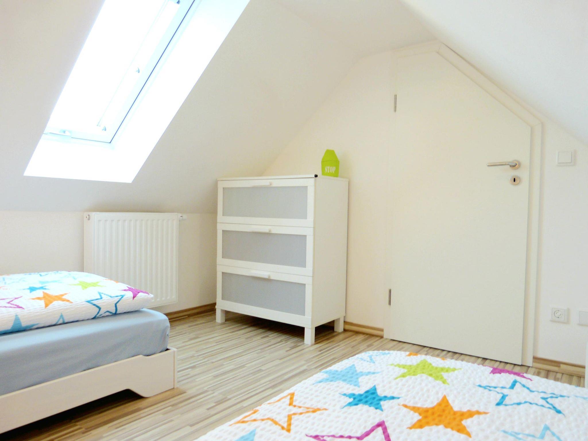 Um kleinen Gästen den Aufenthalt so angenehm wie möglich zu machen, ist die Ferienwohnung mit einer umfassenden Baby- und Kleinkinderausstattung ausgerüstet. Dazu gehört ein Holzgitterbett für Babys und Kleinkinder, eine Bade-Wickel-Kombination im Schlafzimmer der unteren Ebene, ein variabler Hochstuhl, Spielmaterial, ein Fahrradkindersitz und ein Bobby Car. Die Steckdosen sind mit einer Kindersicherung geschützt. Um die Unterkunft perfekt auf Ihre Bedürfnisse abzustimmen, teilen Sie Ihre Wünsche zur Kinderausstattung bis spätestens 10 Tage vor der Anreise mit.