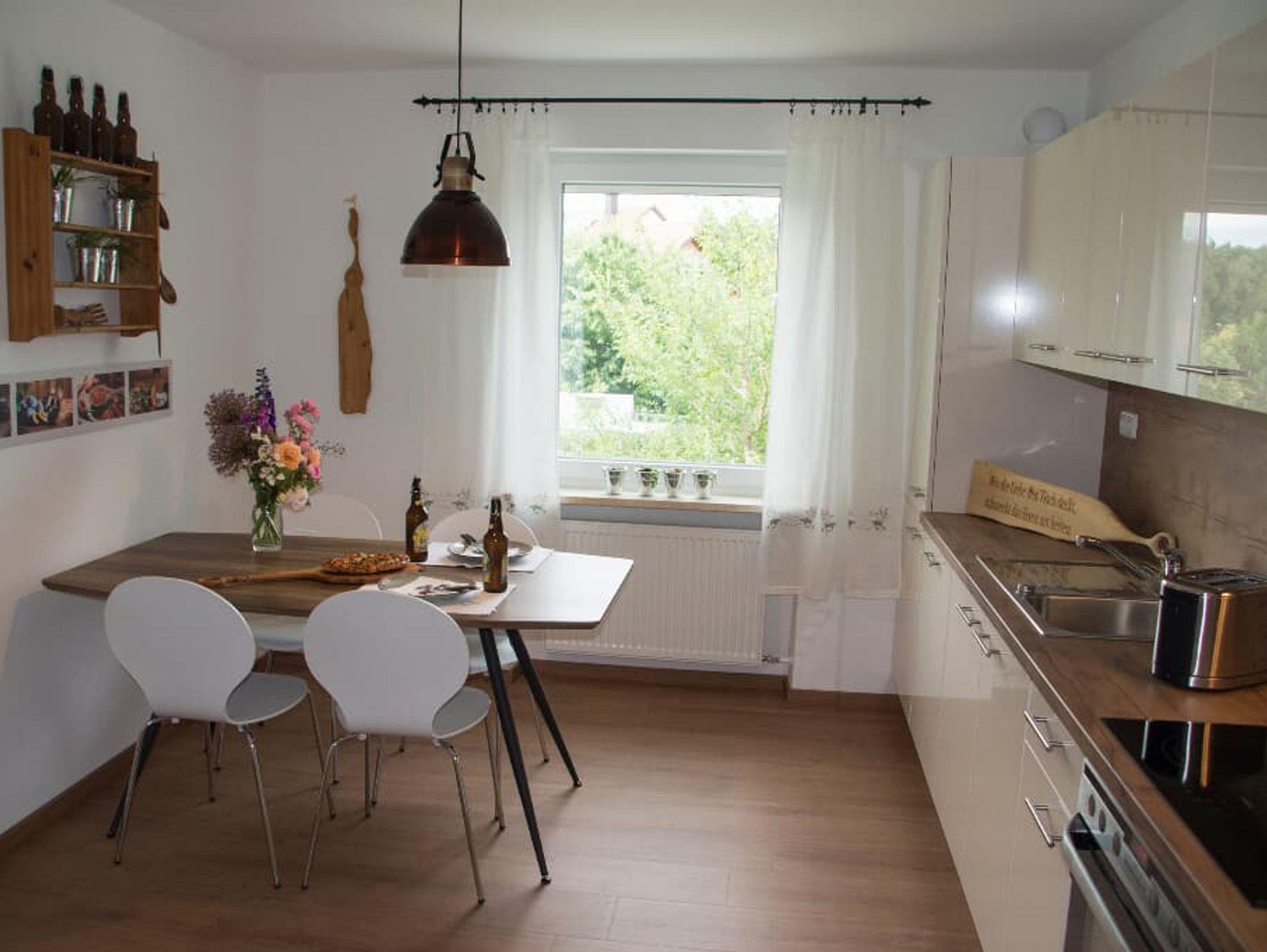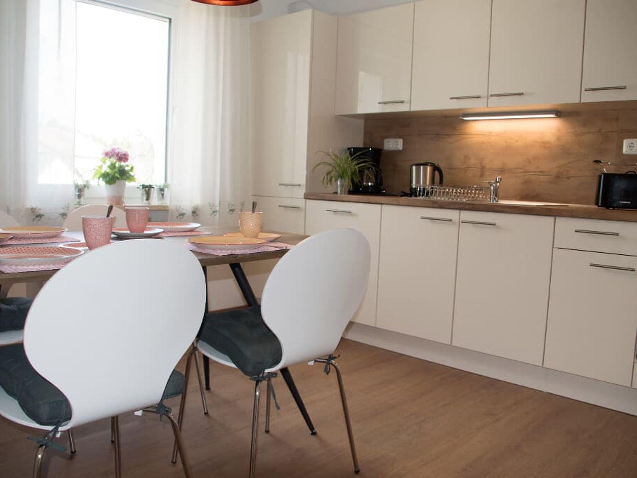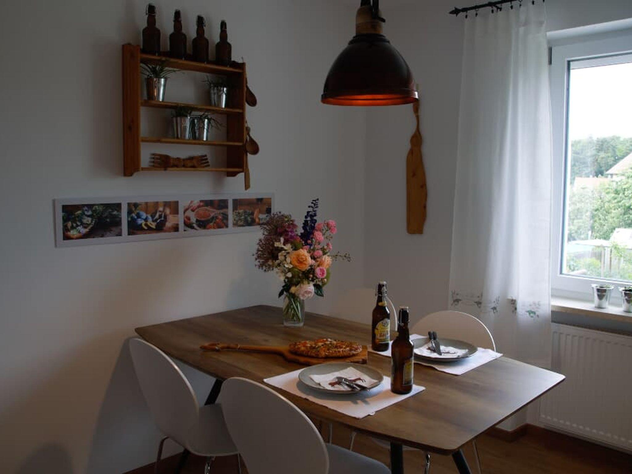Wir bieten Ihnen im EG eine Ferienwohnung (ca. 90 m²), die neu renoviert und liebevoll eingerichtet wurde. 3 Schlafzimmer (1x Doppelbett, 2x Einzelbett), Wohnküche, Bad und separates WC, 1 Wohnzimmer mit großzügigem Balkon.