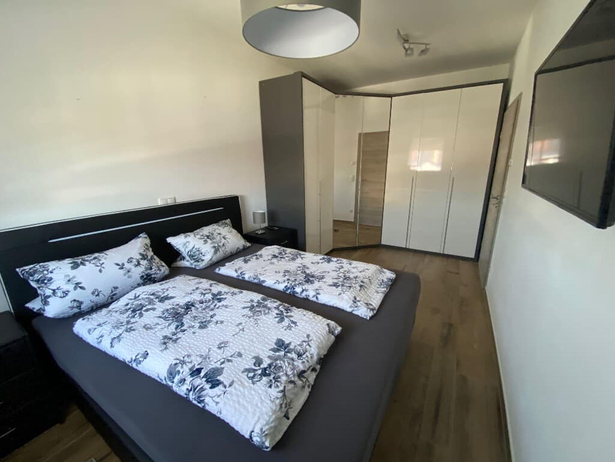 Das Ferienappartement ist hochwertig und modern eingerichtet. Mit einer Größe von 65 qm ist die Wohnung für bis zu 4 Personen geeignet. Es besitzt 1 Schlafraum mit Doppelbett sowie ein Bett und ein Schlafsofa im Wohnaufenthaltsraum. Die Küche ist komplett ausgestattet (Kaffeemaschine, Wasserkocher, Toaster, Herd, Backofen, Geschirrspüler, Kühlschrank, Gefrierfach, Geschirr, Besteck, sonstige Küchenutensilien). Der Wohnbereich ist mit einem Esstisch, einem Sofa und einem SAT-TV ausgestattet.
