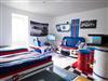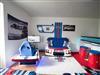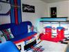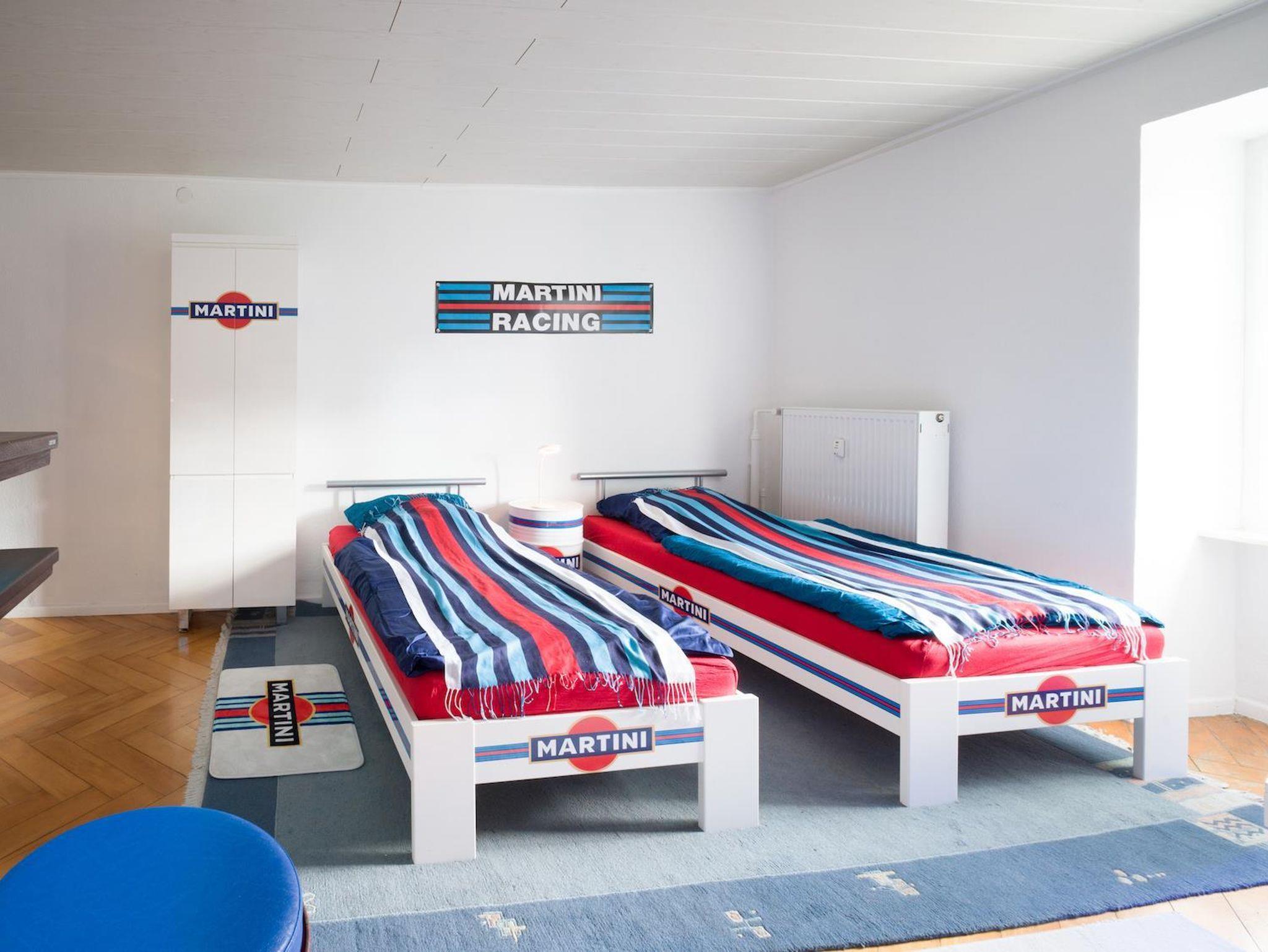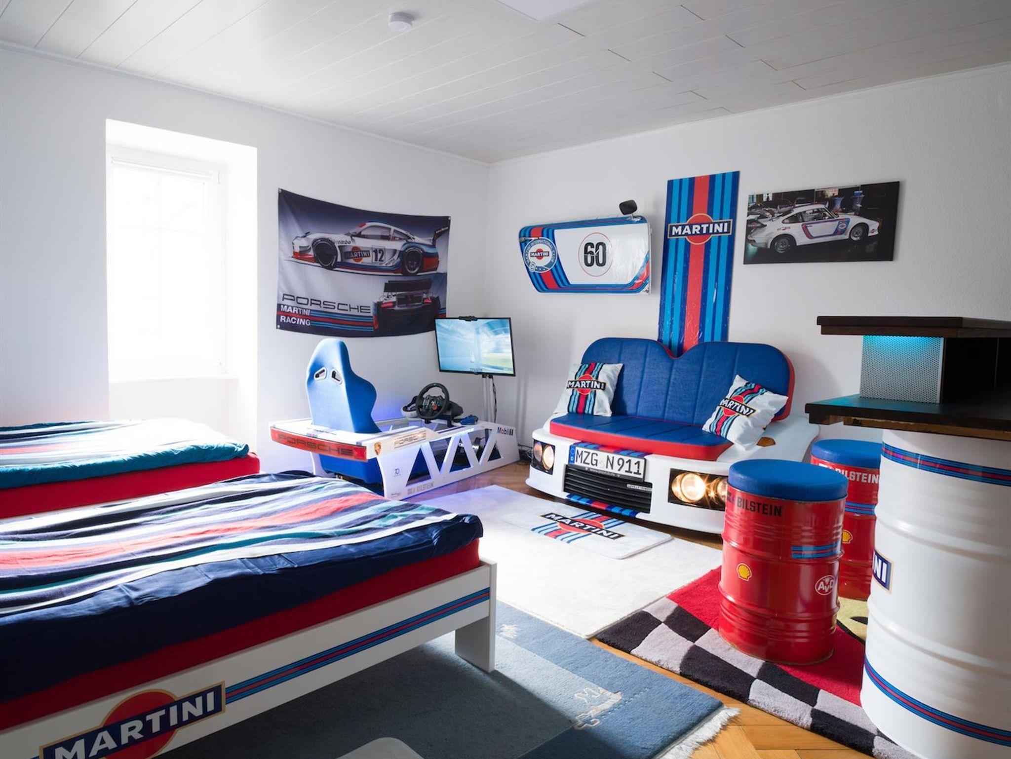Ein Schlafzimmer bringt 2 Personen in einem Doppel-Boxspringbett und 50 Zoll TV unter. Ein zweites Themen-Schlafzimmer Martini Racing besitzt nicht nur 2 Schlafplätze mit zwei Einzelbetten, sondern auch einen Rennsimulator und Bar mit Kühlschrank.