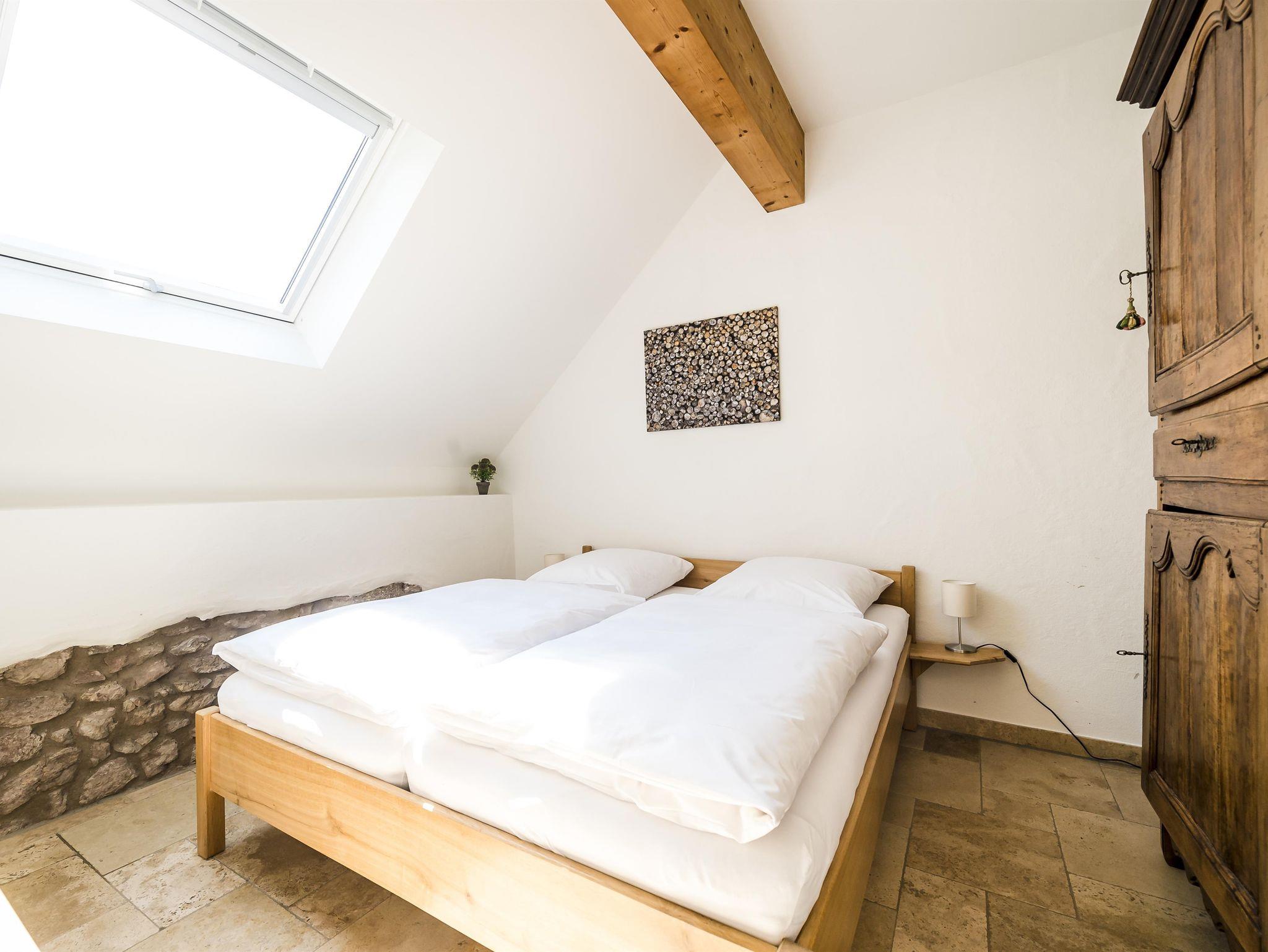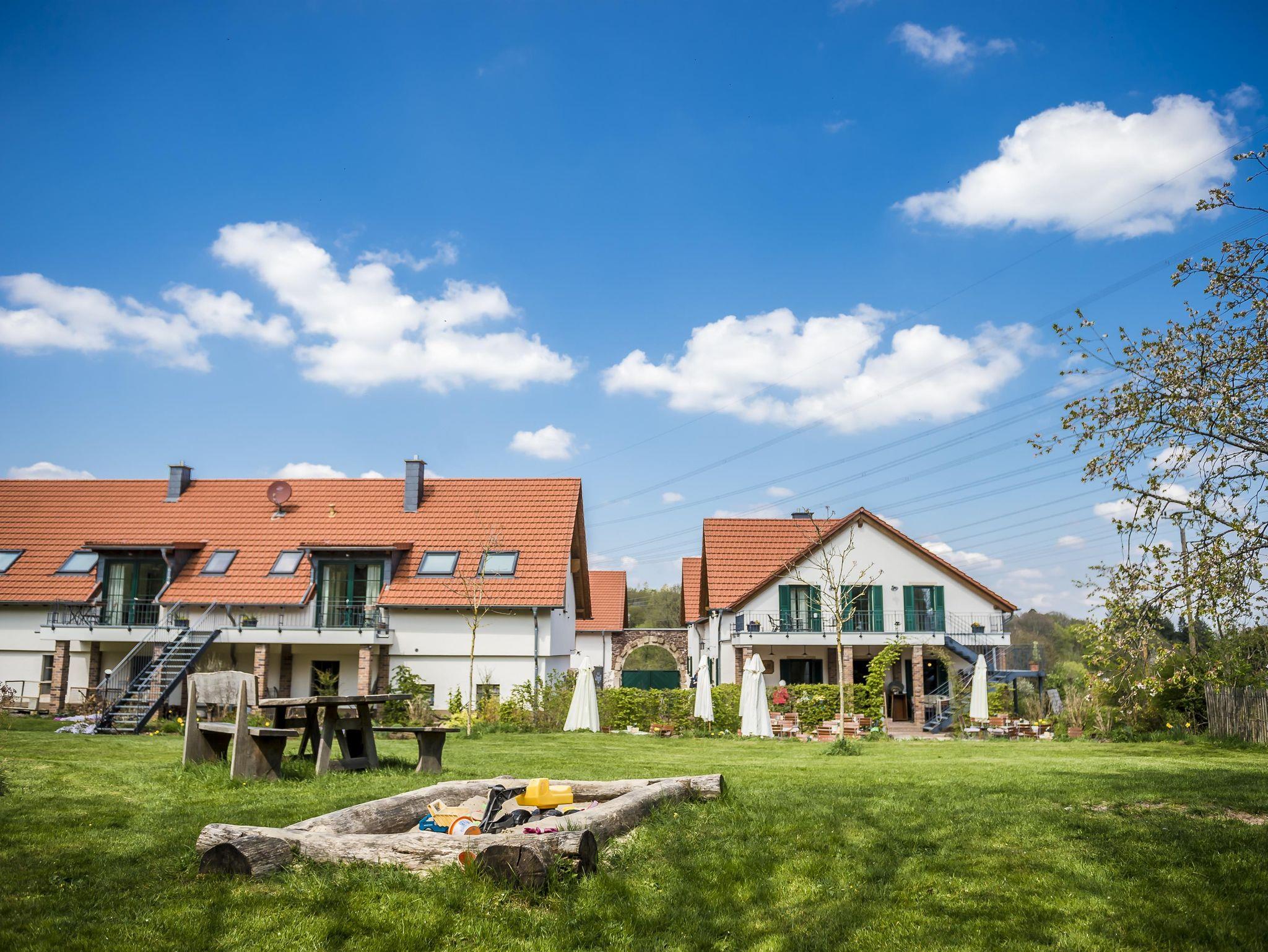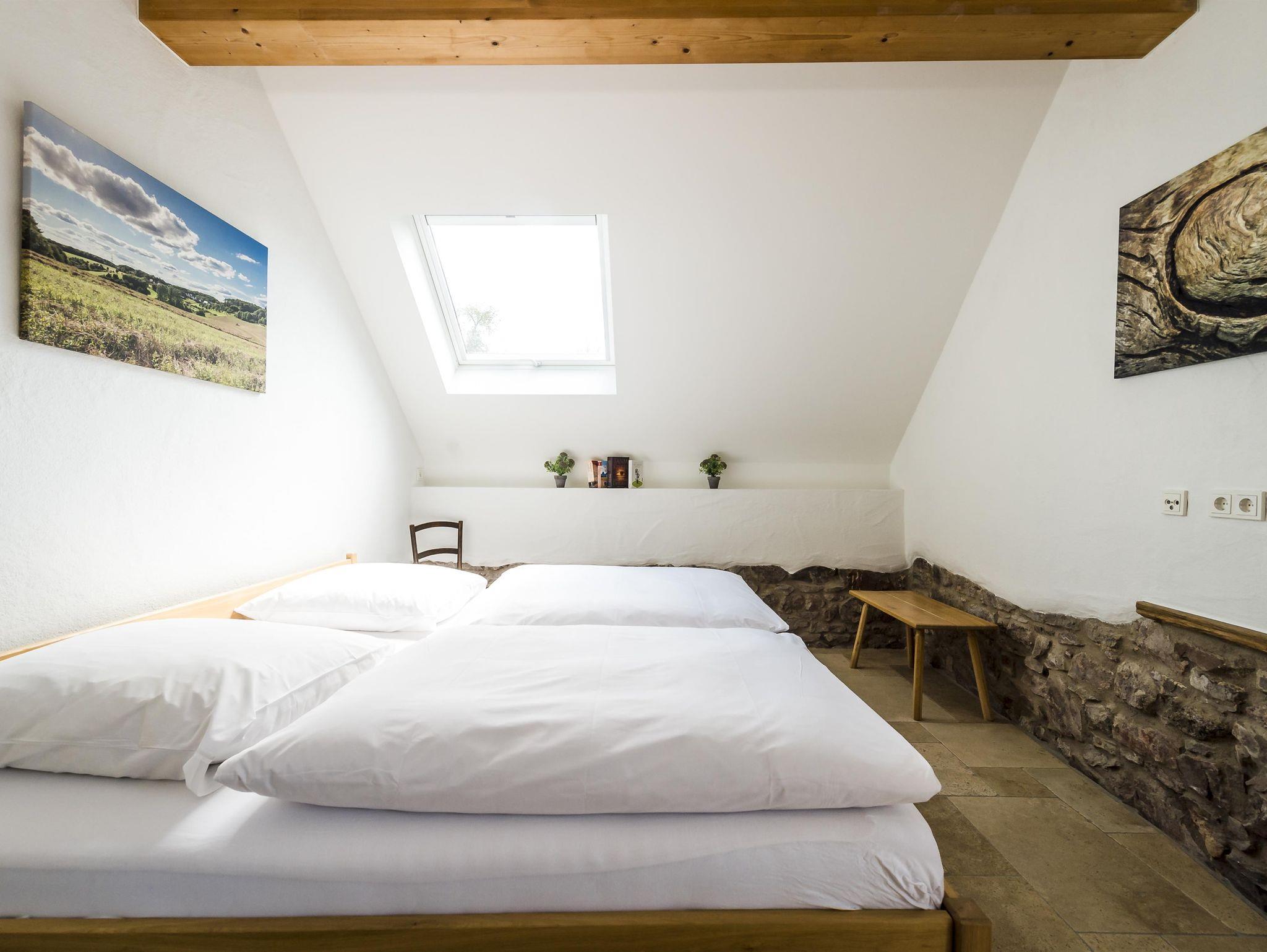 Wir bieten Ihnen vier wunderschöne, großzügig geschnittene Ferienwohnungen, individuell mit viel Liebe zu historischen Details eingerichtet. Eine Wohnumgebung zum Wohlfühlen mit Platz zum Durchatmen und kuscheligen Nischen. Alle Ferienwohnungen sind mit hochwertigen Travertin-Natursteinböden und hellen großzügigen Räumen sowie modernen Bädern ausgestattet. Soweit möglich sind alte bauliche Details wie Bruchsteinmauerwerk und Fensterbänke aus altem Eichengebälk erhalten worden. Alternativ können Sie auch in unseren sechs Hotelzimmern entspannt übernachten.