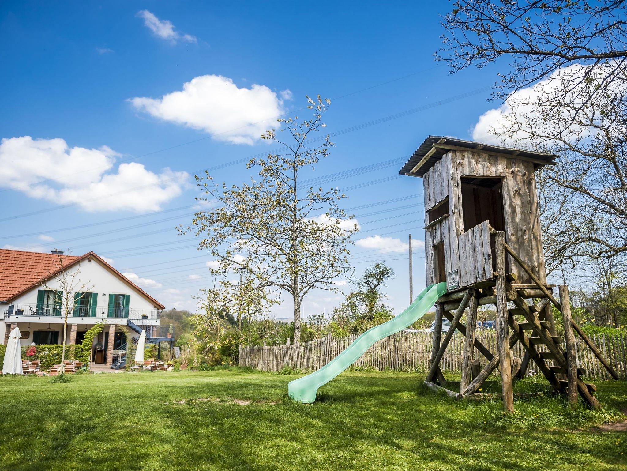 Wir sind vom Wanderverband Deutschland als wanderfreundlicher Gastgeber zertifiziert und sind „Qualitätsgastgeber Wanderbares Deutschland“. Den Rundwanderweg „Traumschleife - Weg des Wassers“ können Sie unmittelbar am Hof starten. Radfahrern bieten wir die Möglichkeit, Ihre Räder unterzustellen und E-Bikes zu laden. Familien sind bei uns herzlich willkommen und können sich auf unserem kleinen Spielplatz austoben. Ihren vierbeinigen Freund dürfen Sie auf Anfrage auch gerne mitbringen.