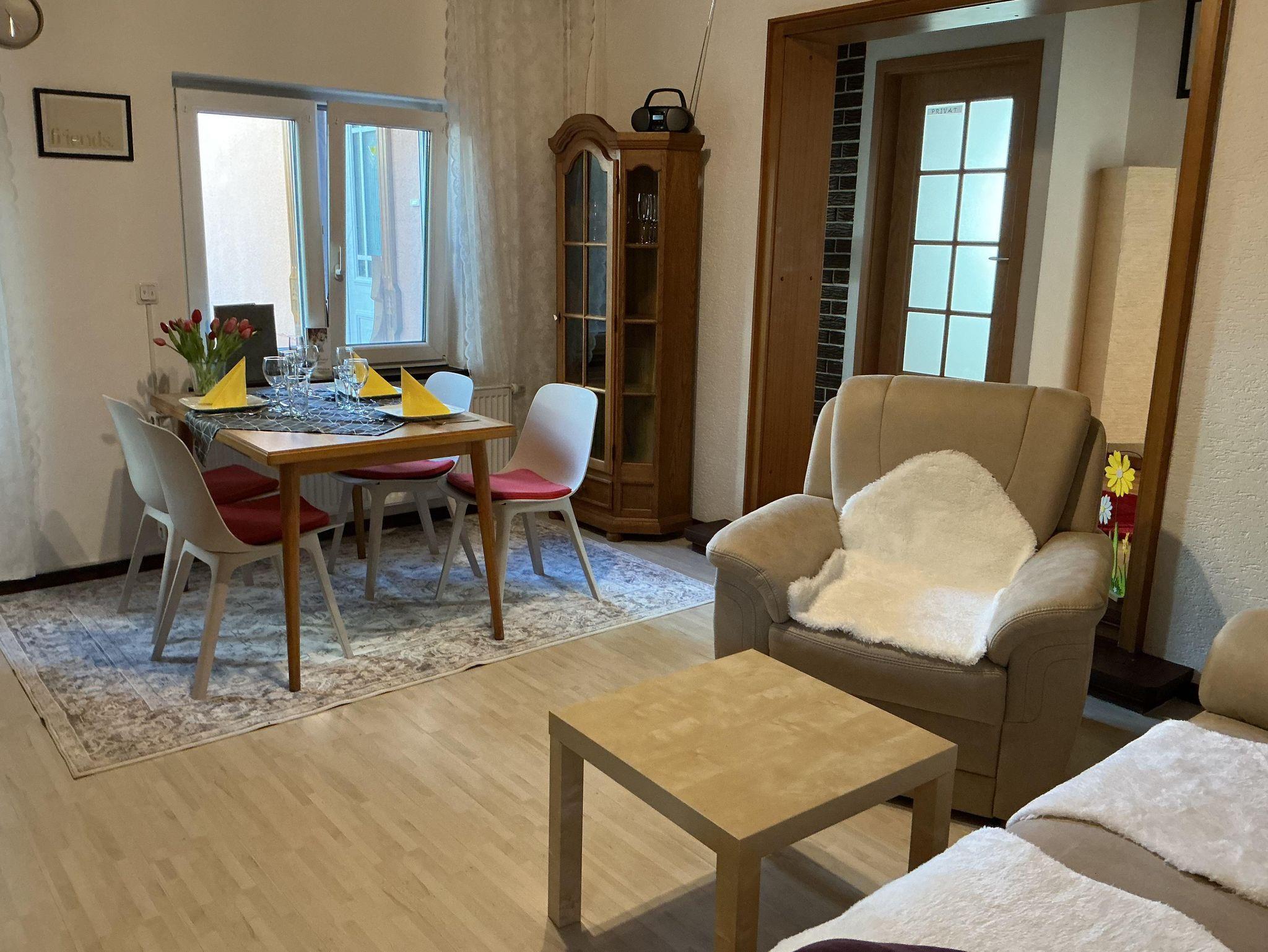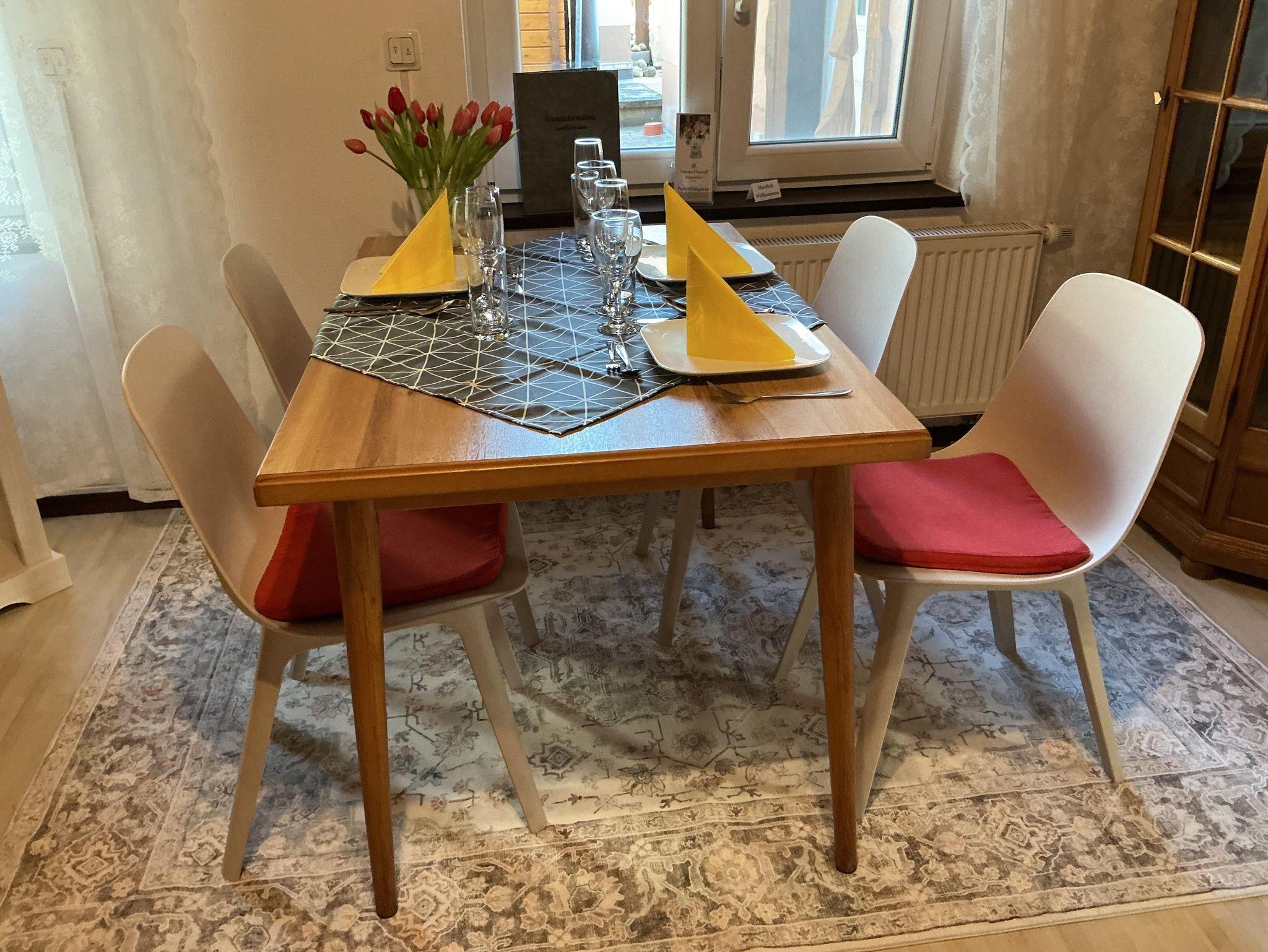 Die 75 m² große, komplett ausgestattete Nichtraucher-Ferienwohnung bietet zwei Schlafzimmer mit jeweils zwei Einzelbetten, ein Wohn-/Esszimmer, eine voll ausgestattete Küche mit Spülmaschine, Mikrowelle, Senseo-Kaffeemaschine und Waschmaschine sowie ein modernes Tageslichtbad mit Dusche. WLAN, Flachbild-TV, Bettwäsche, Handtücher und ein Privatparkplatz sind inklusive; zusätzlich stehen ein Carport für PKW oder Motorräder sowie eine abschließbare Fahrradhütte mit E-Bike-Lademöglichkeit zur Verfügung. Der Garten mit Grillplatz, Gartenmöbeln und Terrasse steht Ihnen zur alleinigen Nutzung zur verfügung.