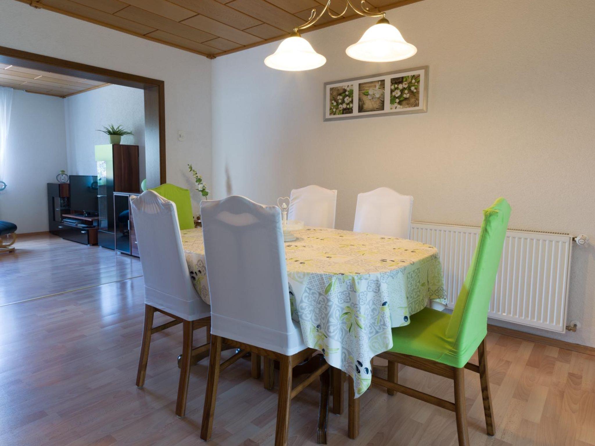 Im großen Wohn- Esszimmer finden Sie nebst Mobiliar eine gemütliche Couch, die bei Bedarf ausgeklappt werden kann, einen Flatscreen und einen Esstisch für 6 Personen.