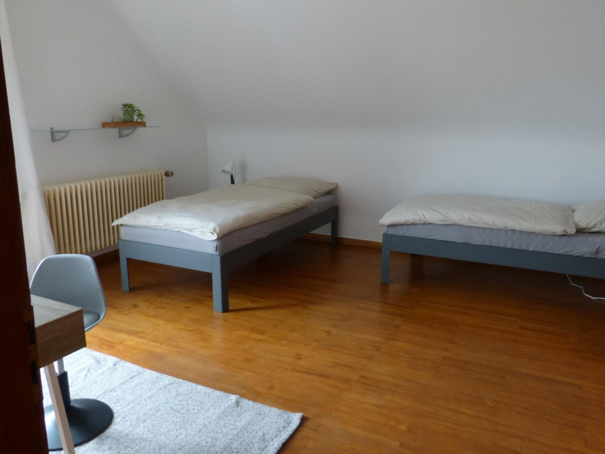 Unsere beiden gemütlichen Schlafzimmer bieten Platz für jeweils zwei Personen. Dabei sind beide Zimmer mit je zwei Einzelbetten, einem Kleiderschrank und einem Schreibtisch ausgestattet. Unsere hochwertigen Matratzen, geschützt von Matratzenschonern sorgen für Ihren erholsamen Schlaf.