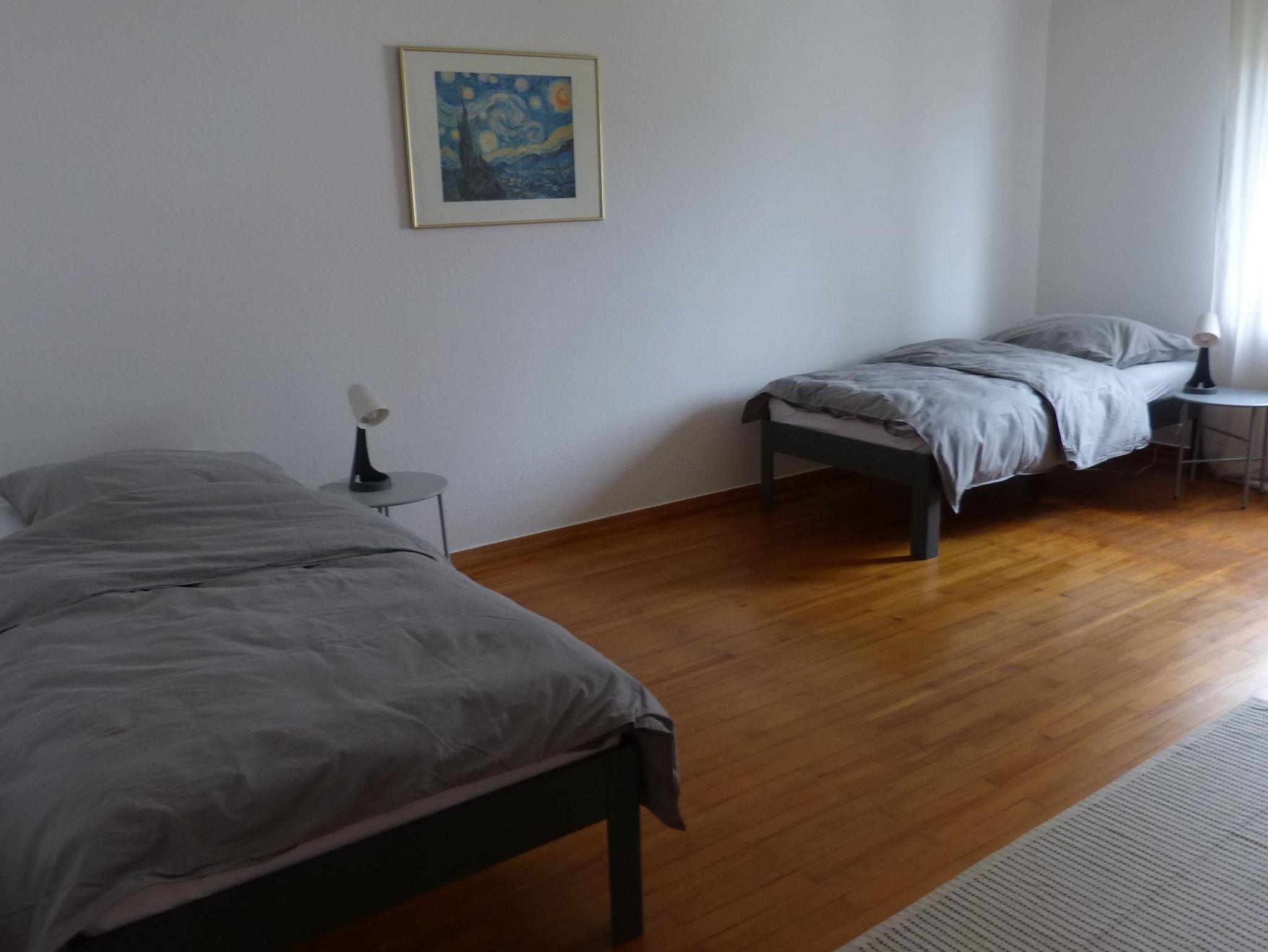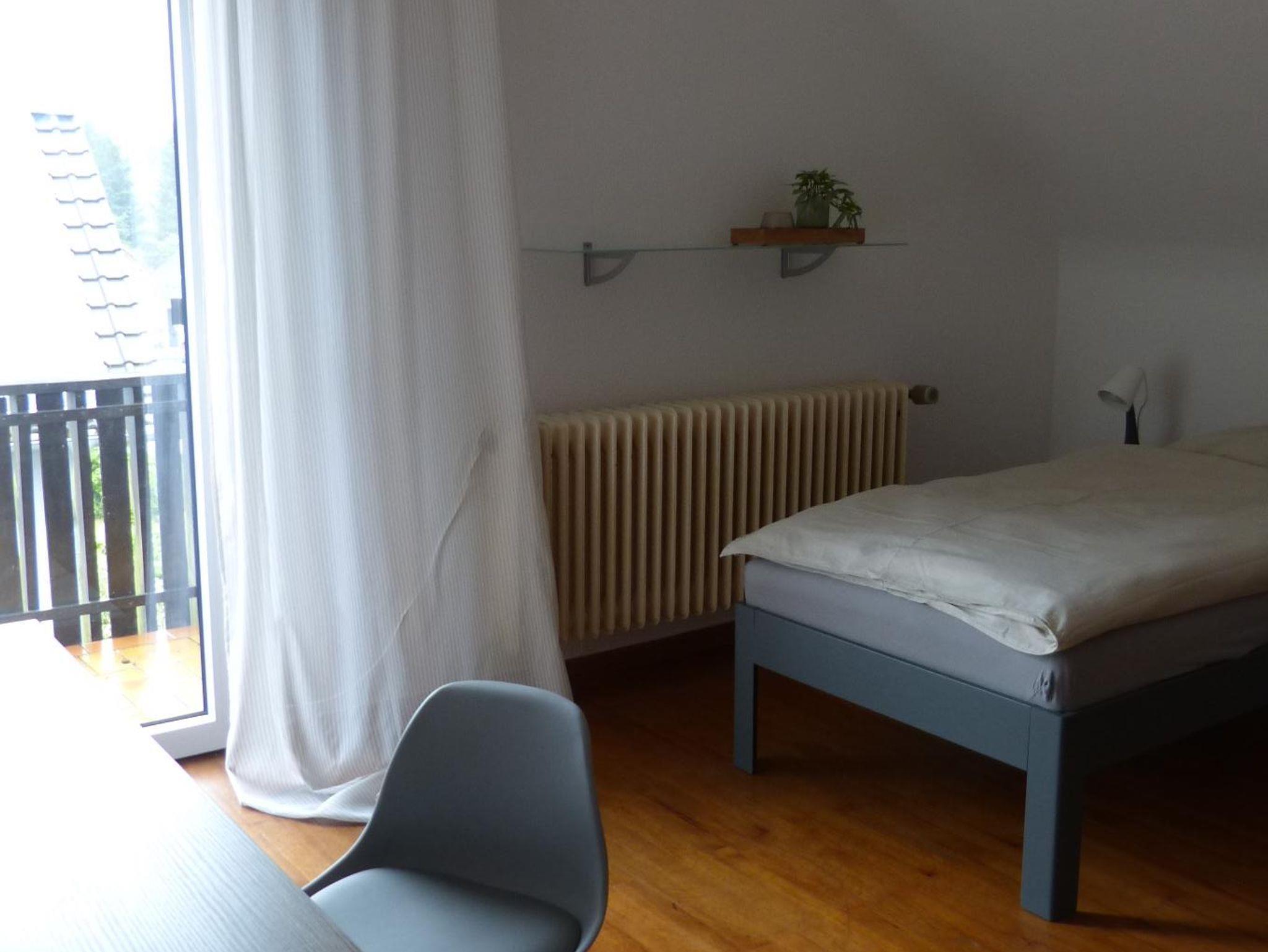 Die Wohnung liegt im Obergschoss des Hauses. Dort erwarten Sie zwei Doppelzimmer mit jeweils zwei Einzelbetten. Eine voll ausgestattete Gemeinschaftsküche im Wohn- und Esszimmer mit Balkon sowie ein Badezimmer runden das Angebot ab.