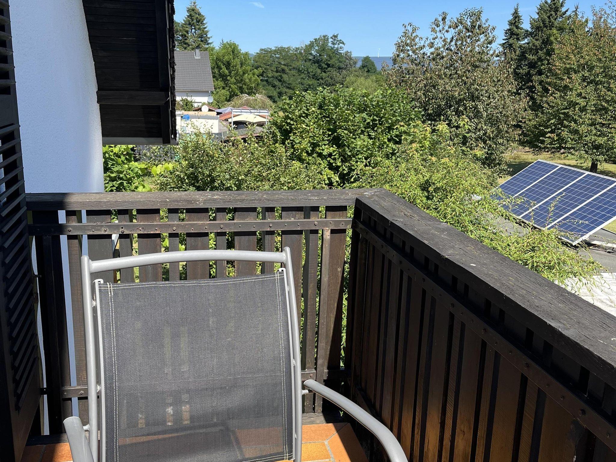 Der kleine Balkon vom Wohnzimmer ausgehend lädt zu einem Kaffee ein.