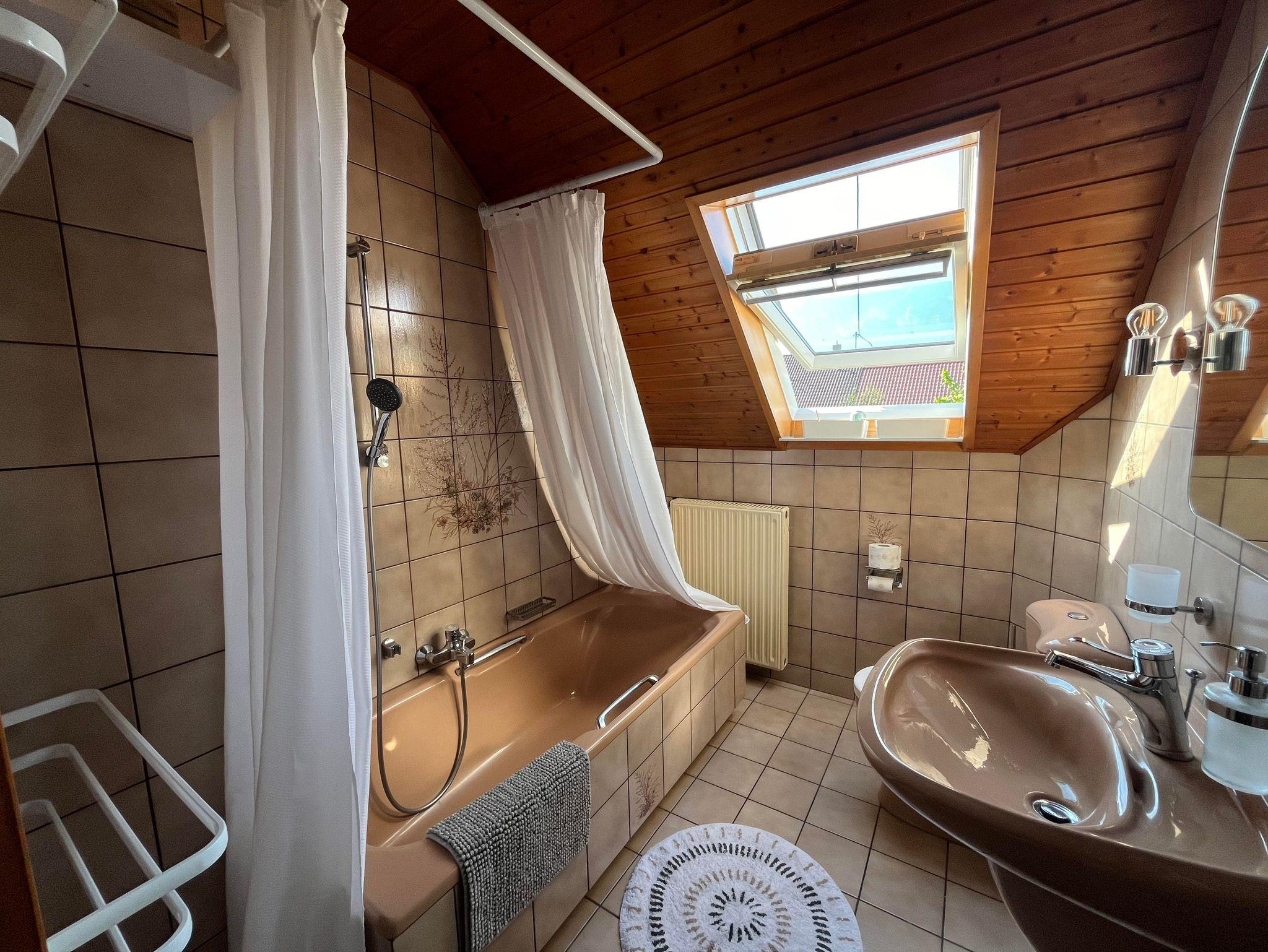 Neben einem Badezimmer mit Badewanne verfügt unsere Wohnung „Onkel Otto“ über ein Wohn- und Esszimmer mit schöner Küchenzeile. Die Küche ist voll ausgestattet, sodass Sie jeden Morgen mit einem gemütlichen Frühstück beginnen können.