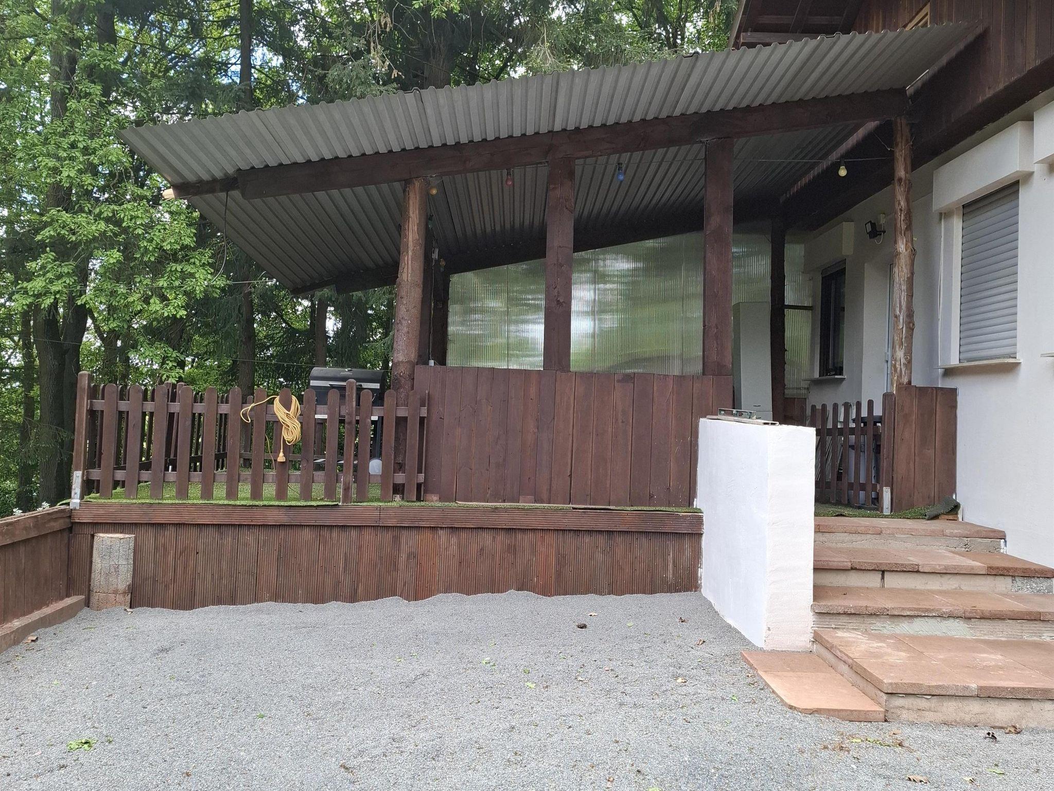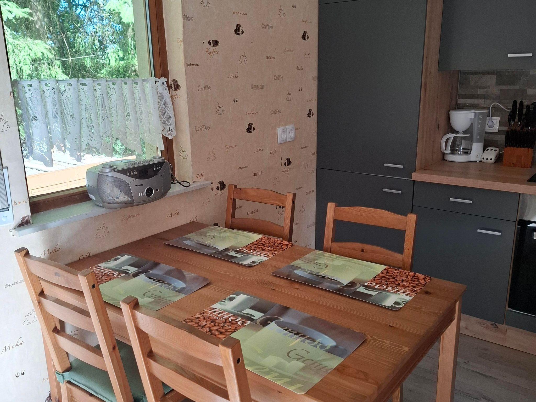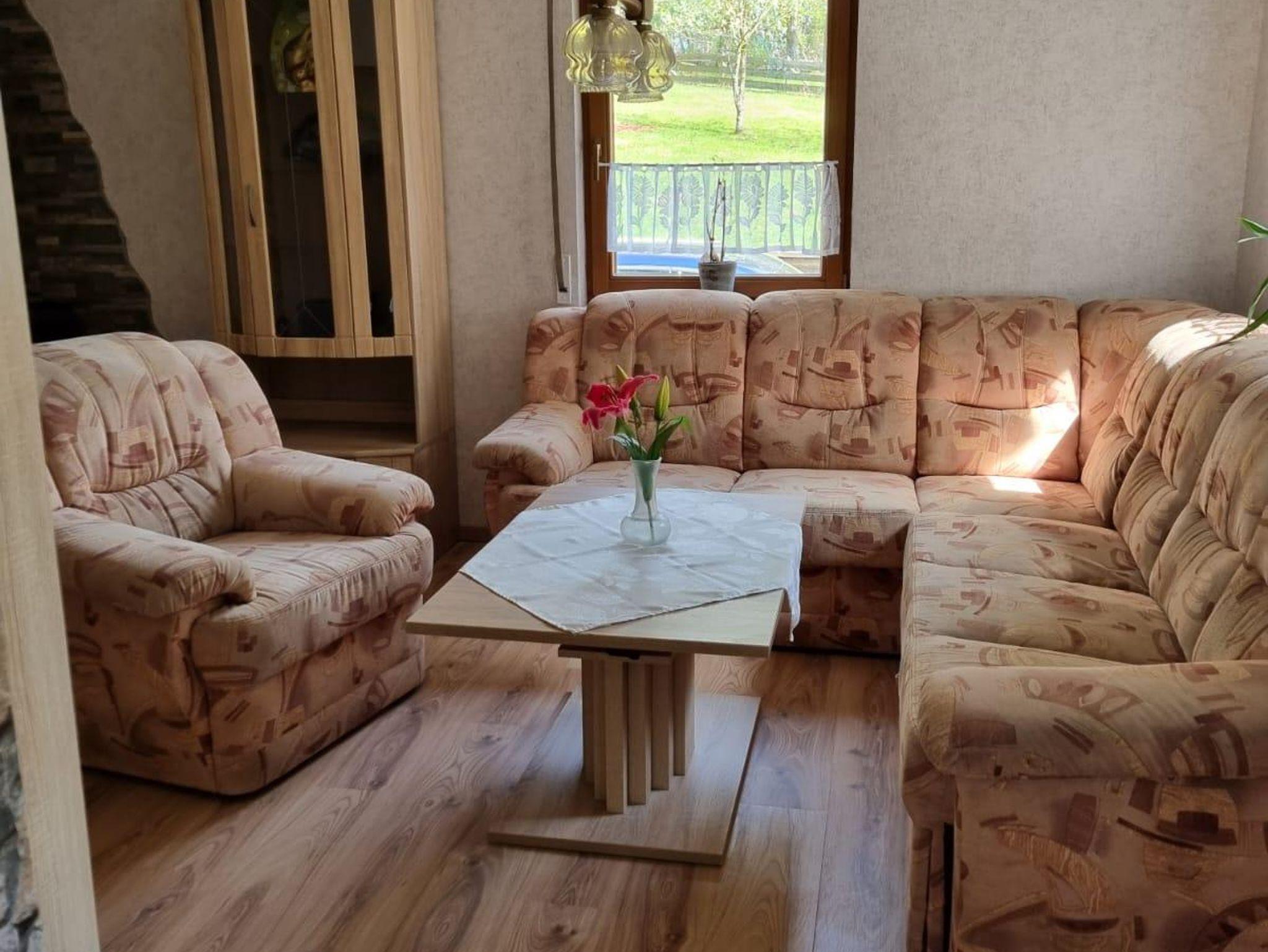 Gerne würden wir ,Sie in unserem Ferienhaus Hochwald begrüssen ! Es verfügt über ein großes Wohnzimmer , mit einem gemüdlichem Holzofen , einem geräumiges Doppelschlafzimmer , in das bei Bedarf gerne noch ein Kinderbett gestellt werden kann . Desweiteren ein Kinderzimmer mit Etagenbett , einer voll eingerichteten Küche , sowie einem schönen Bad mit bodentiefer Dusche . das Haus bietet 4 bis 6 Schlafplätze an (Sofa im Wohnzimmer kann zum Doppelbett gemacht werden ) und hat eine große Terrasse mit Gartenmöbeln und Holzkohle Grill . Auch einen Spielplatz für die kleinen haben wir eingerichtet !