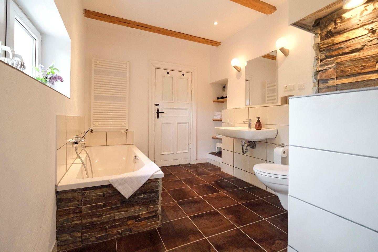 Die exklusiv ausgestattete Ferienwohnung verfügt über 1 Wohnzimmer, 1 Einbauküche mit angrenzendem Essbereich, 2 separate Schlafräume, 1 davon mit Infrarotkabine, 1 Vollbad, 1 Terrasse und einen ca. 750 m² großen, eingezäunten Garten.