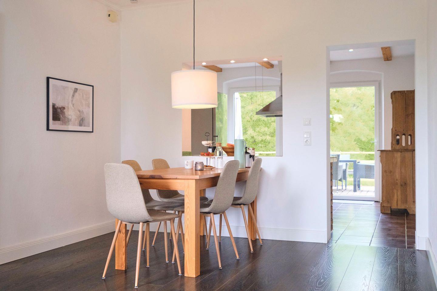 Diese ca. 120 m² große, modern eingerichtete Ferienwohnung "Villa Flora" für bis zu 4 Personen befindet sich im Erdgeschoss einer geschichtsträchtigen Jugendstilvilla im kleinen Ort Wagersrott.