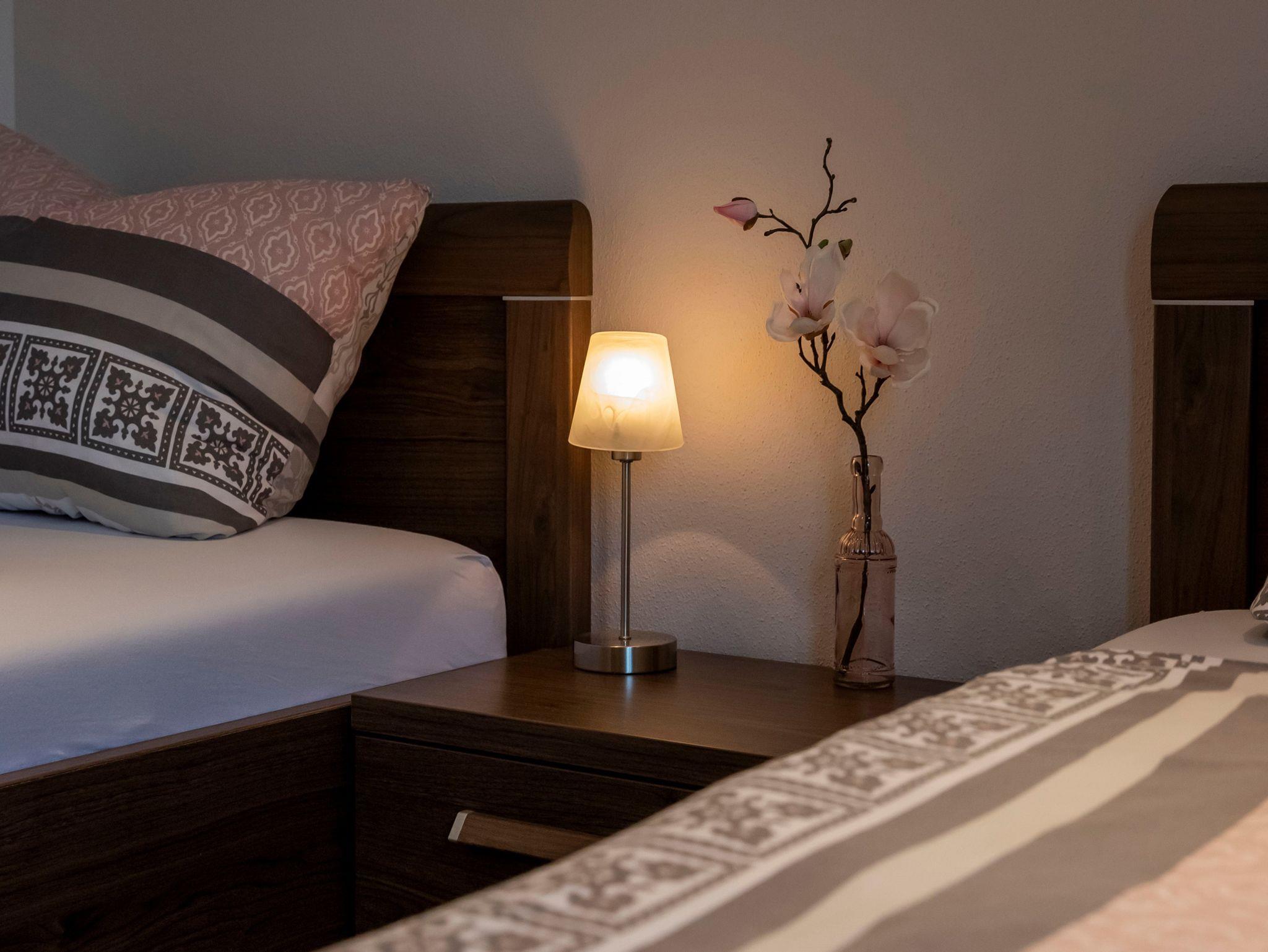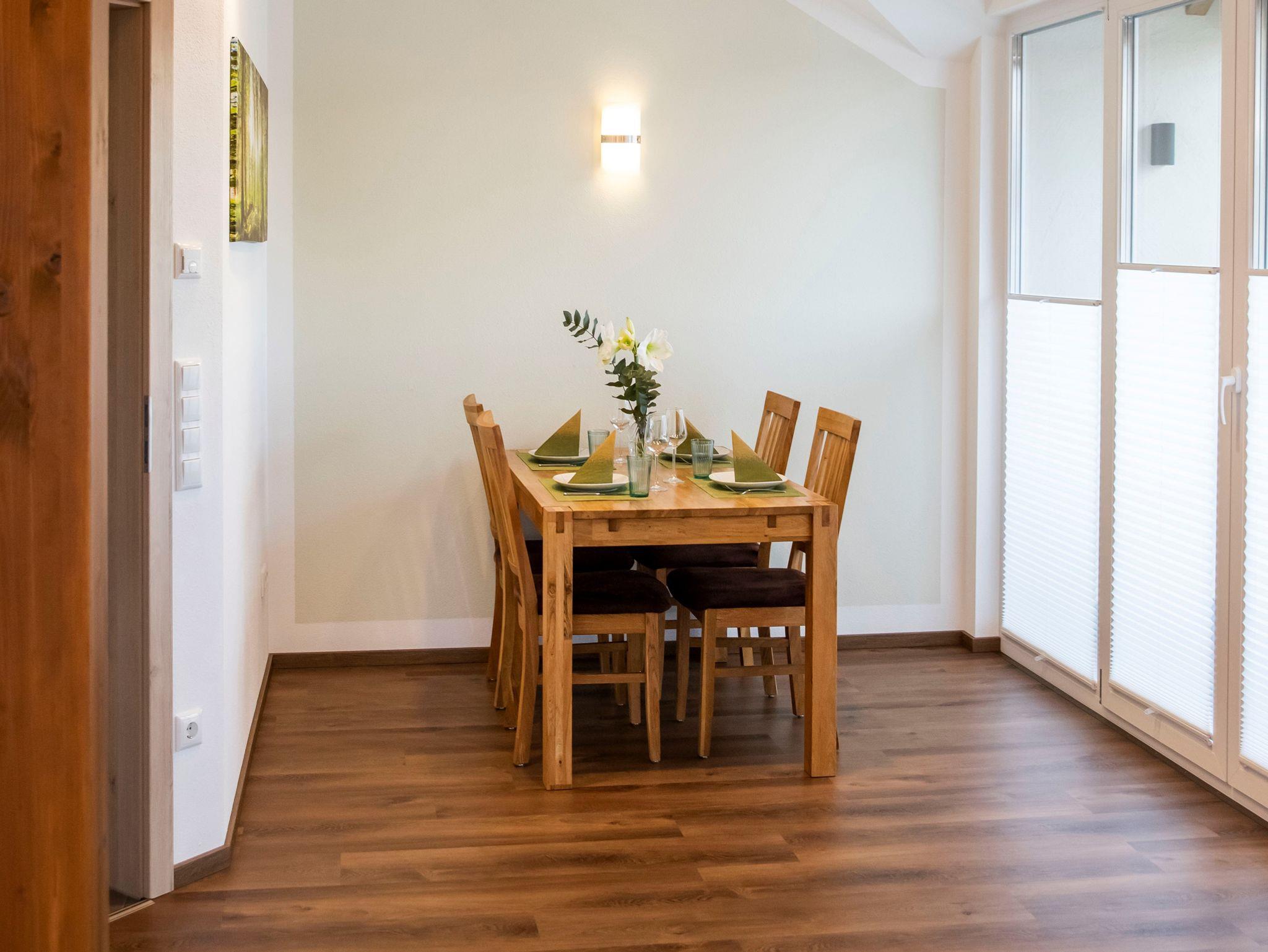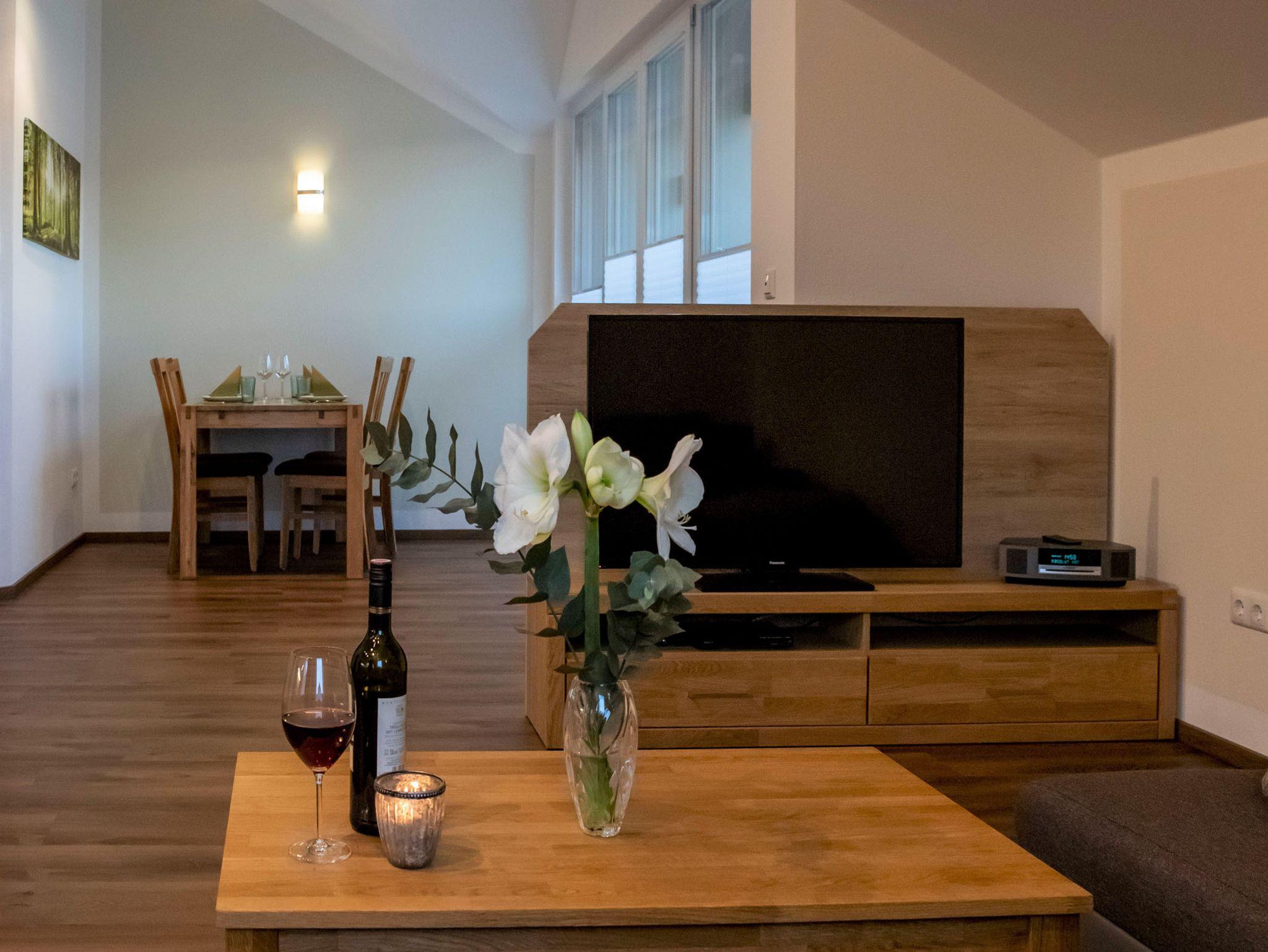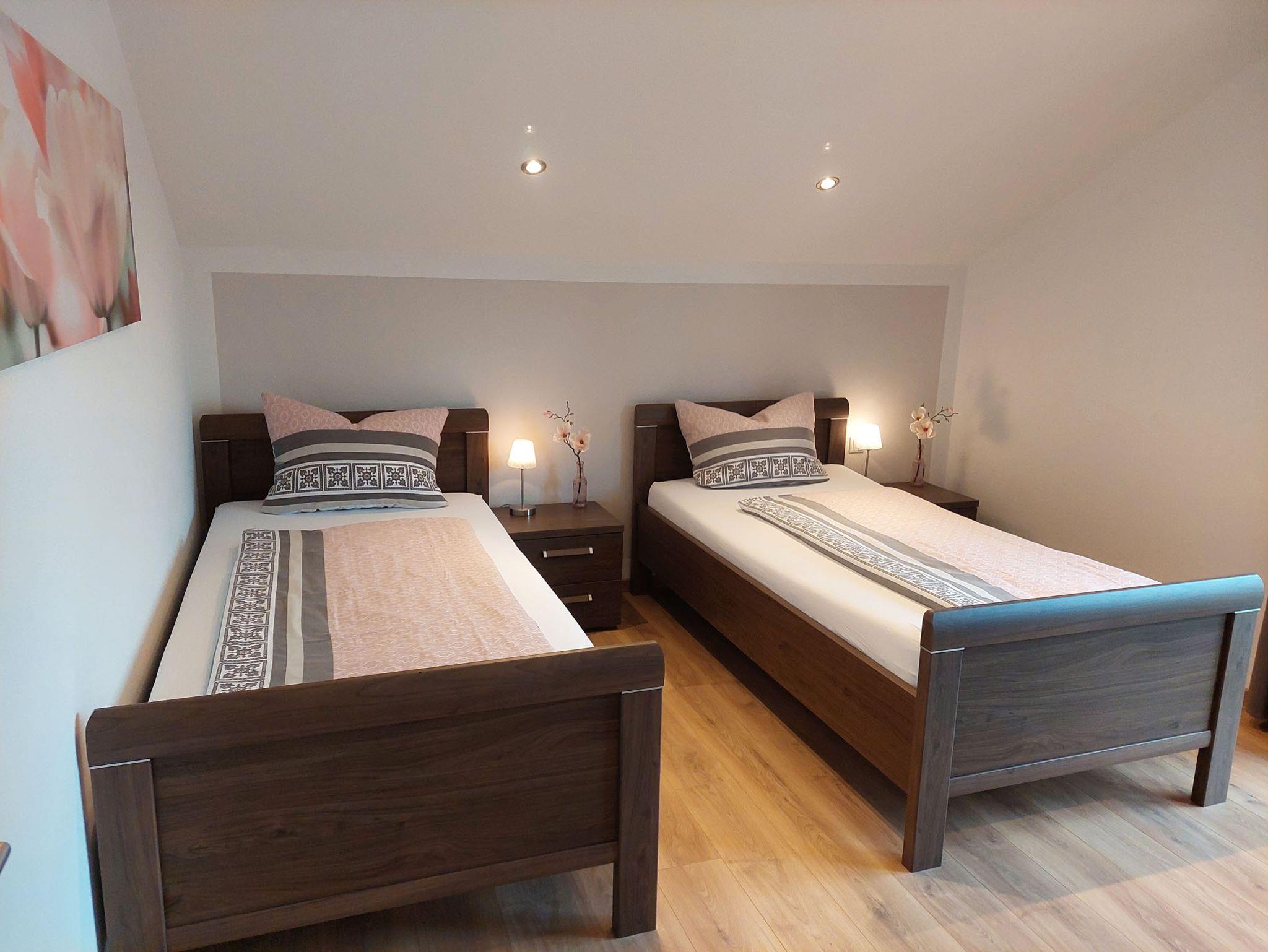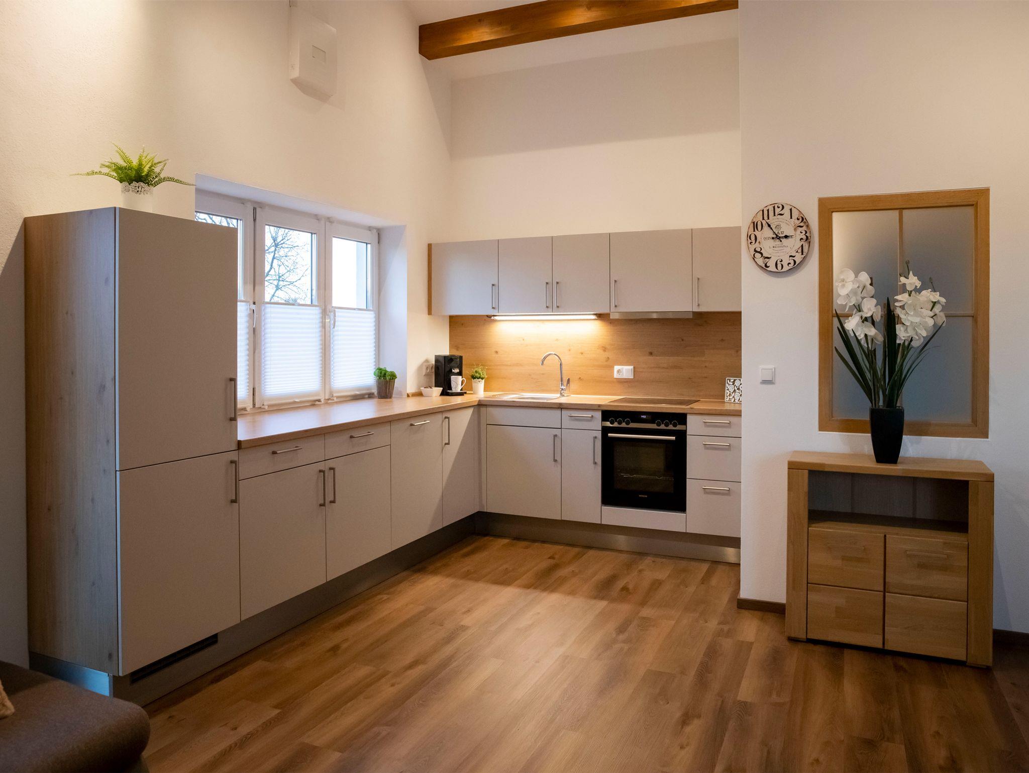Unsere Ferienwohnung wurde Anfang 2019 komplett neu gebaut und befindet sich im 2. Obergeschoss. Bei einer Größe von 104 qm bietet die Wohnung Platz für 2-4 Personen. Die offene Architektur, sowie die hohen Decken verleihen der Wohnung einen besonderen Charme. Die Ferienwohnung beinhaltet 2 Schlafzimmer, eine Wohn-/Ess-/Küche, ein Badezimmer mit Dusche und Badewanne, sowie ein separates WC. Ein kleiner Balkon auf der Südseite, lädt ebenfalls zum Entspannen ein.