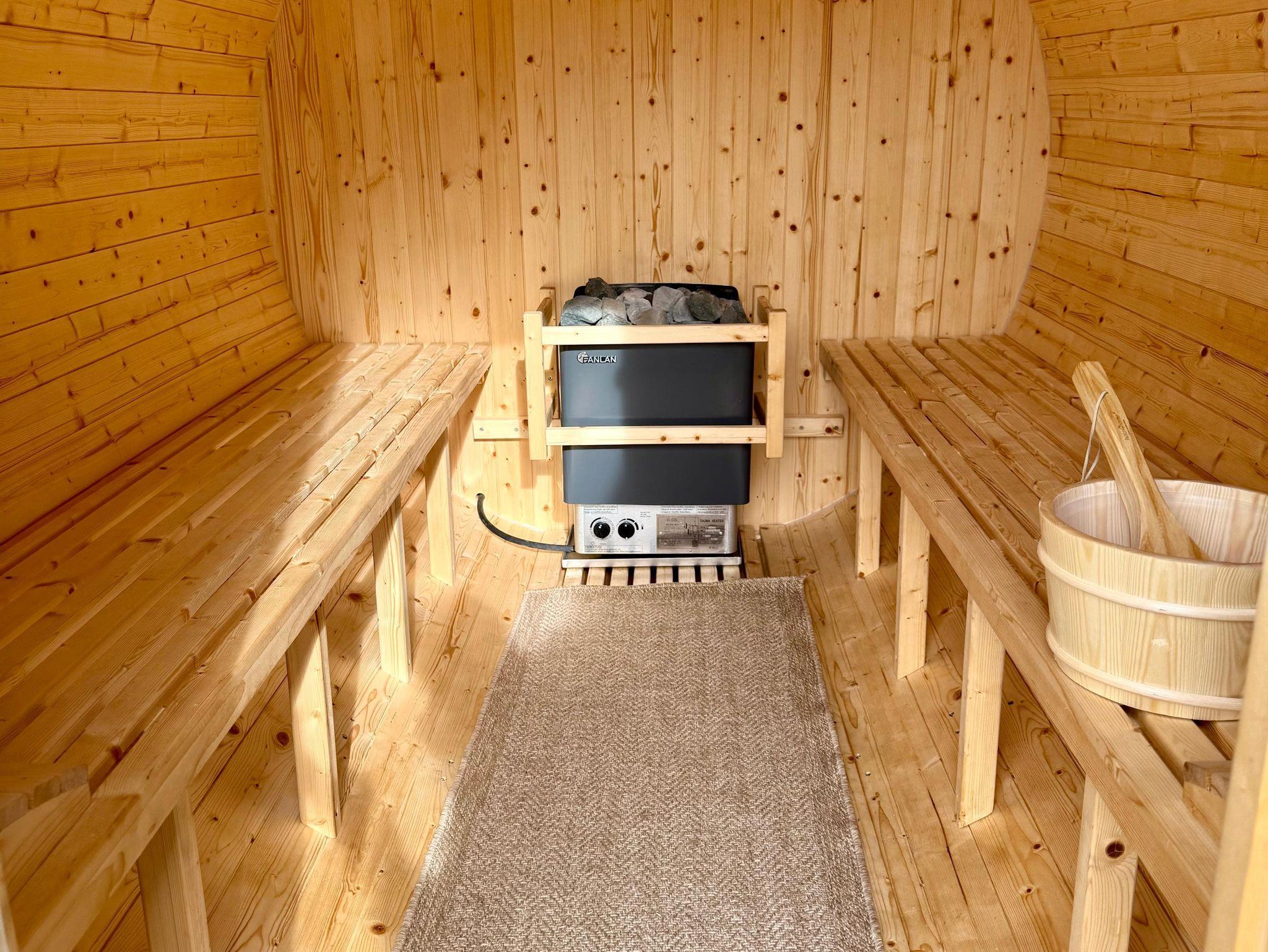 Unsere Fasssauna ist auf Wunsch vor Ort zubuchbar.