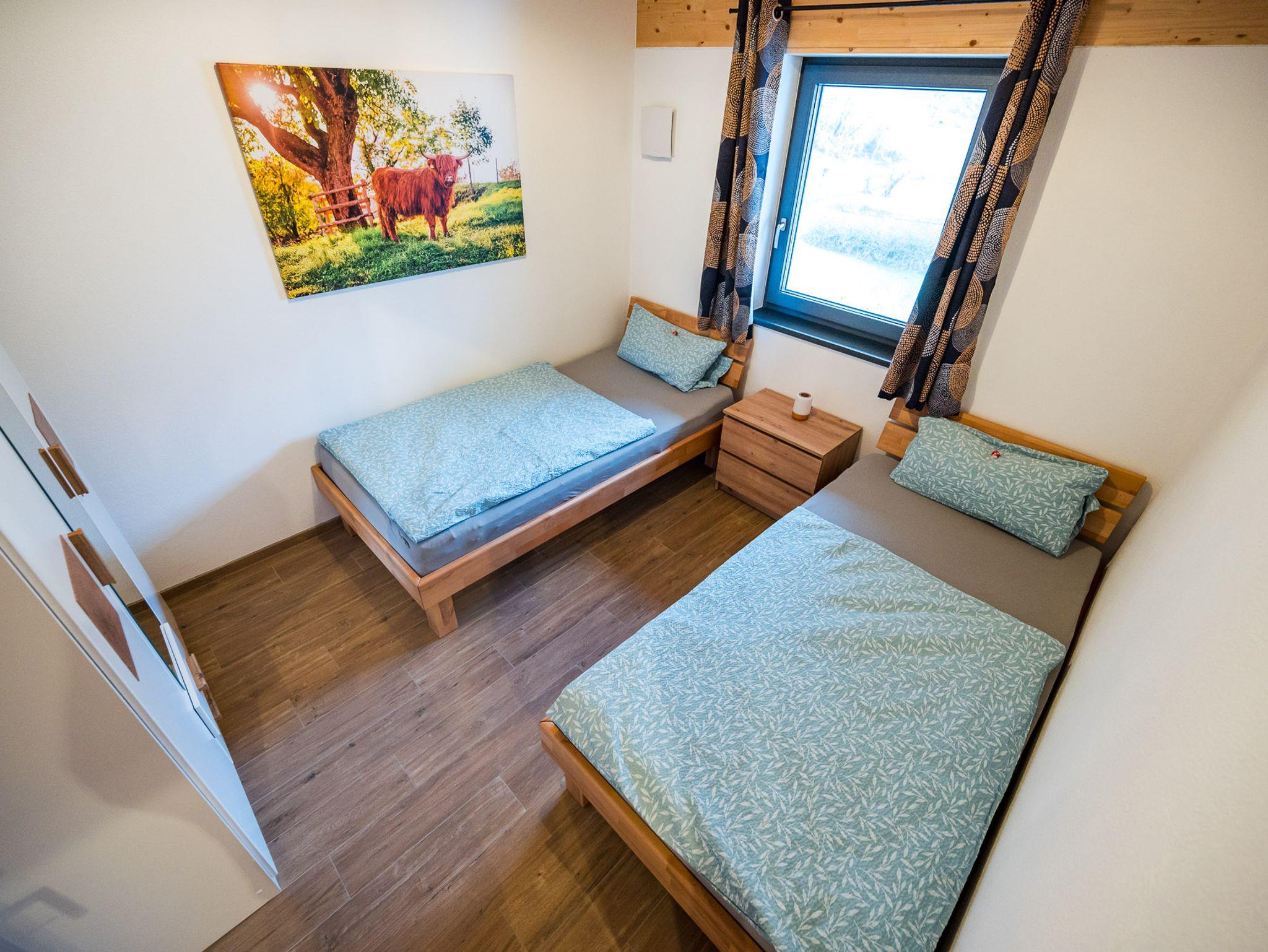 • 2 Schlafzimmer: Zwei gemütliche Schlafzimmer die jeweils mit bequemen Betten und ausreichend Stauraum ausgestattet sind. Im Elternschlafzimmer steht für Sie ein Doppelbett mit 1,8m x 2m und im Kinderzimmer zwei 1m x 2m Einzellbetten zur Verfügung. Ideal für Familien oder Freunde.