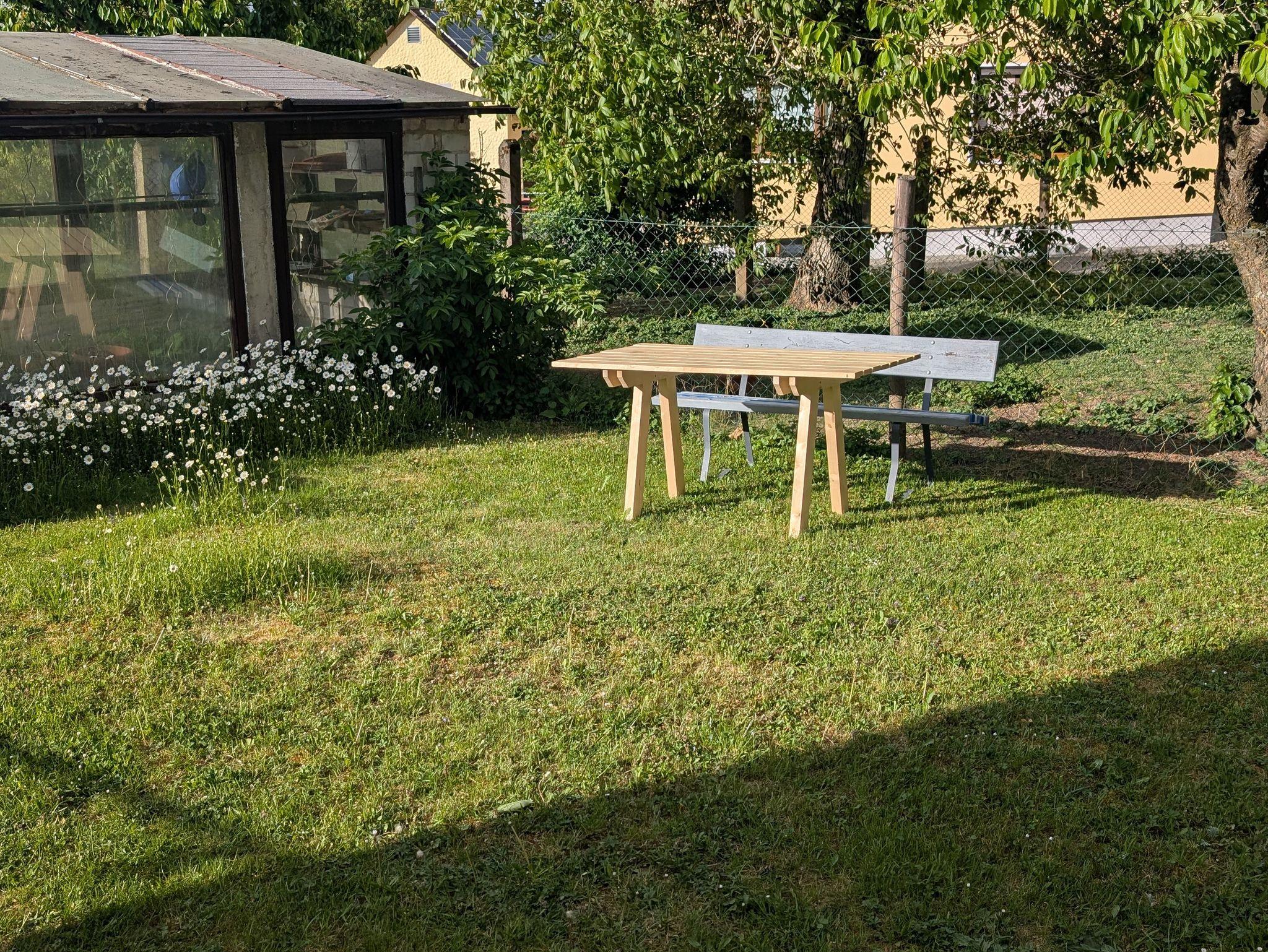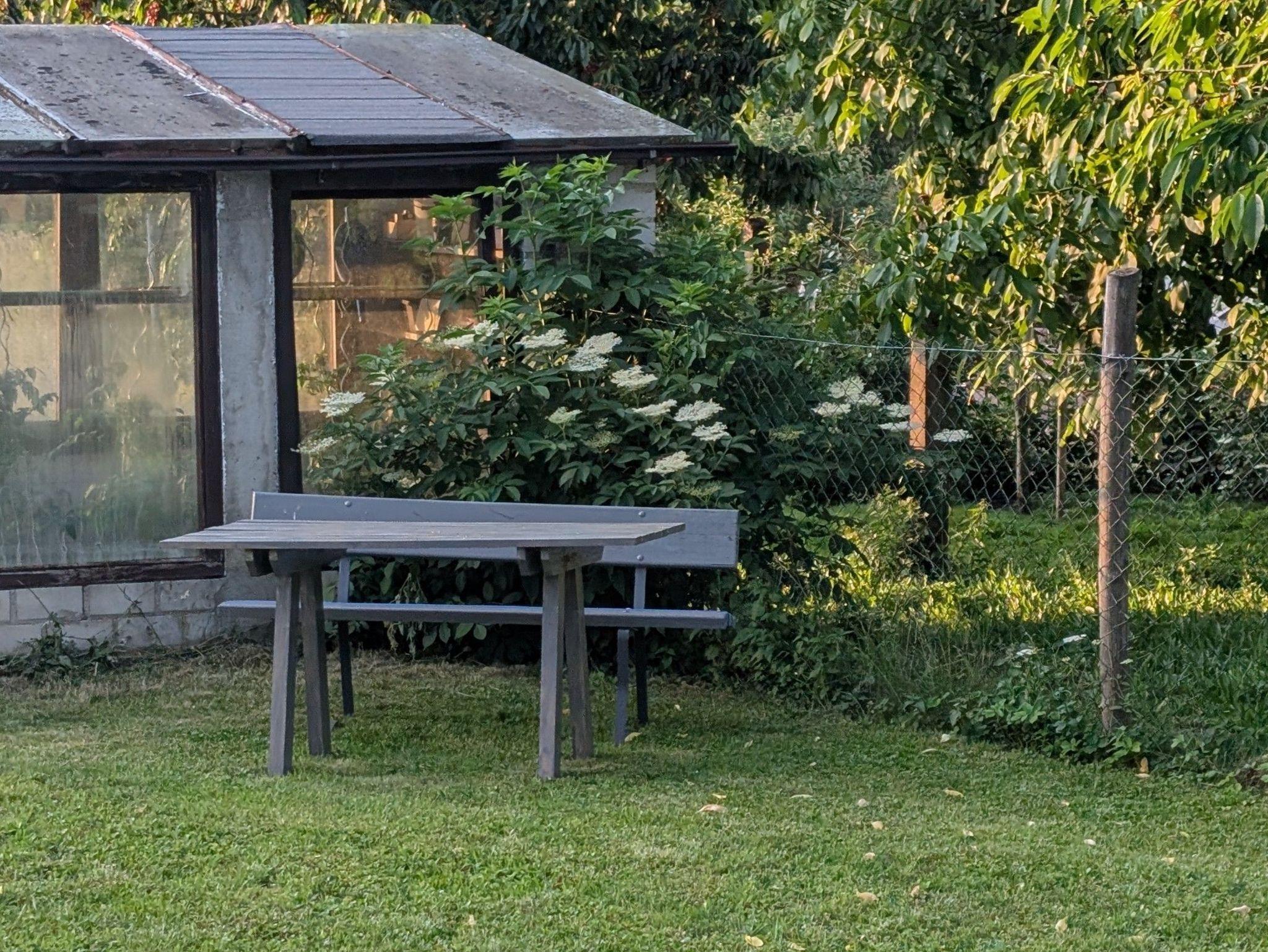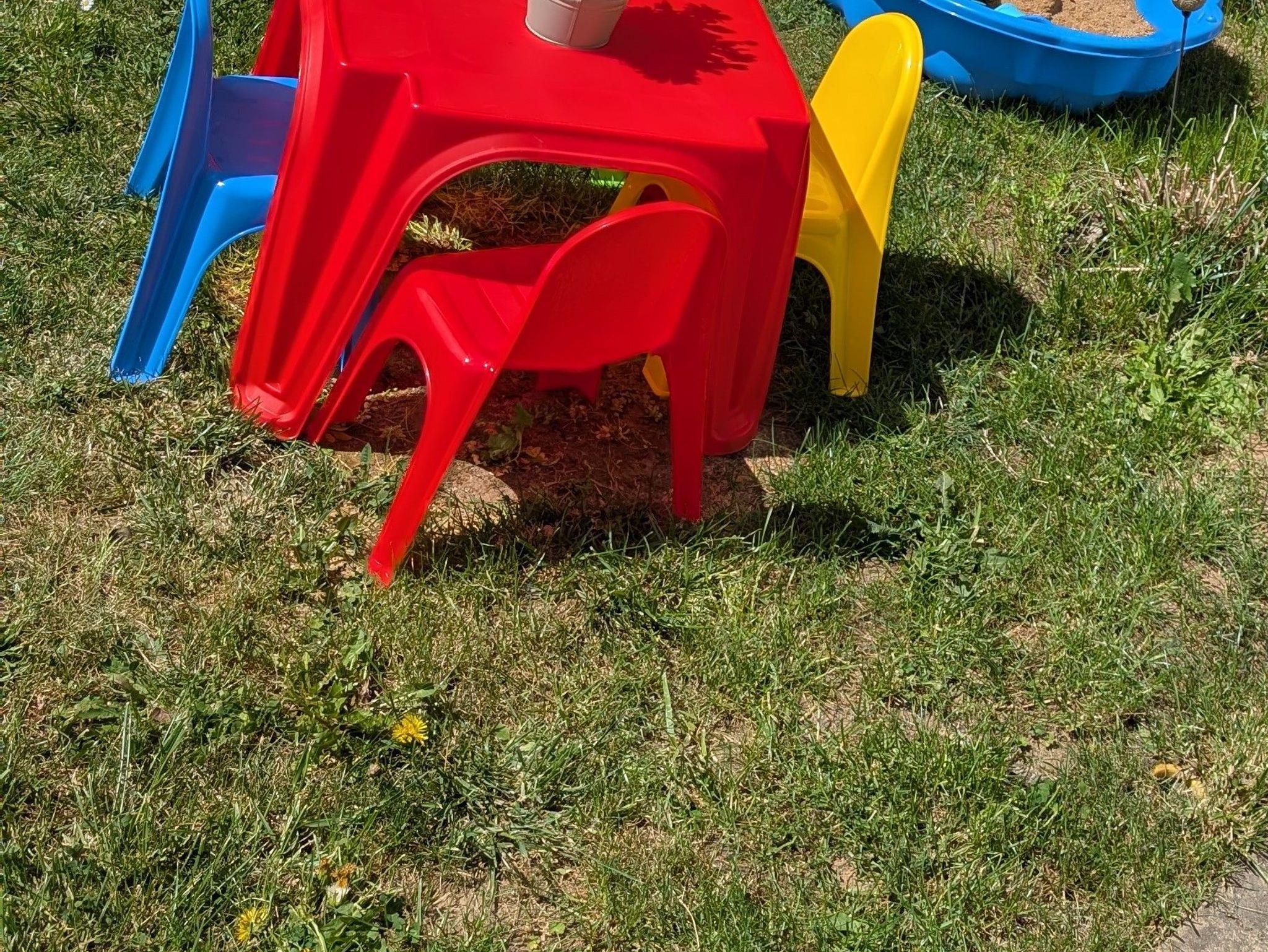 Im Garten vor der Haustüre sind Sitz- und Spielmöglichkeiten angelegt.