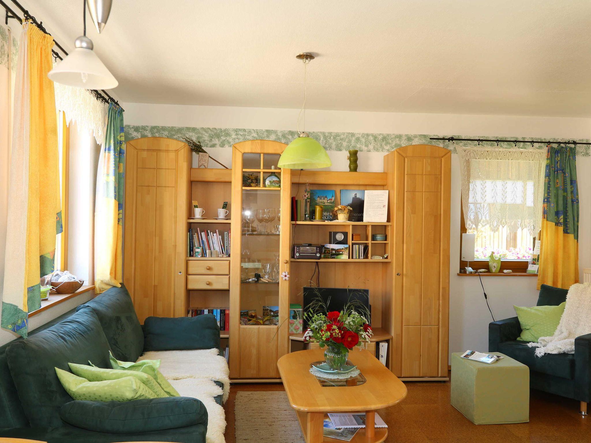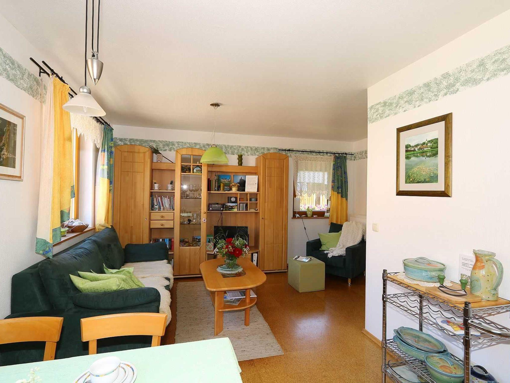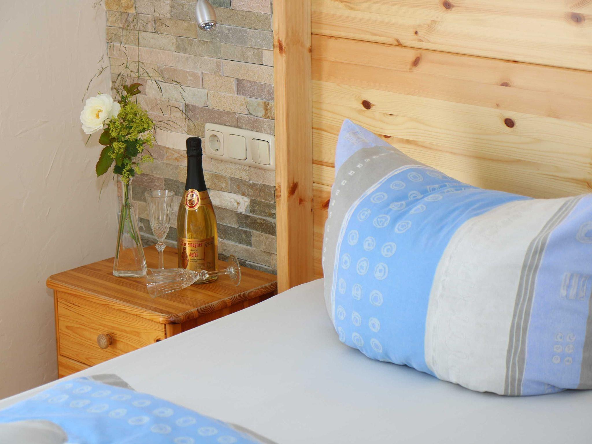 Die Ferienwohnung befindet sich im 1. Stock eines separaten Gebäudes. Liebevoll und sehr komfortabel ausgestattet verfügt sie über zwei Schlafzimmer (Doppelbett, 2 Betten) einen gemütlichen Wohn-Essbereich und über ein großes Tageslichtbad. Außerdem gibt es einen großen Balkon.