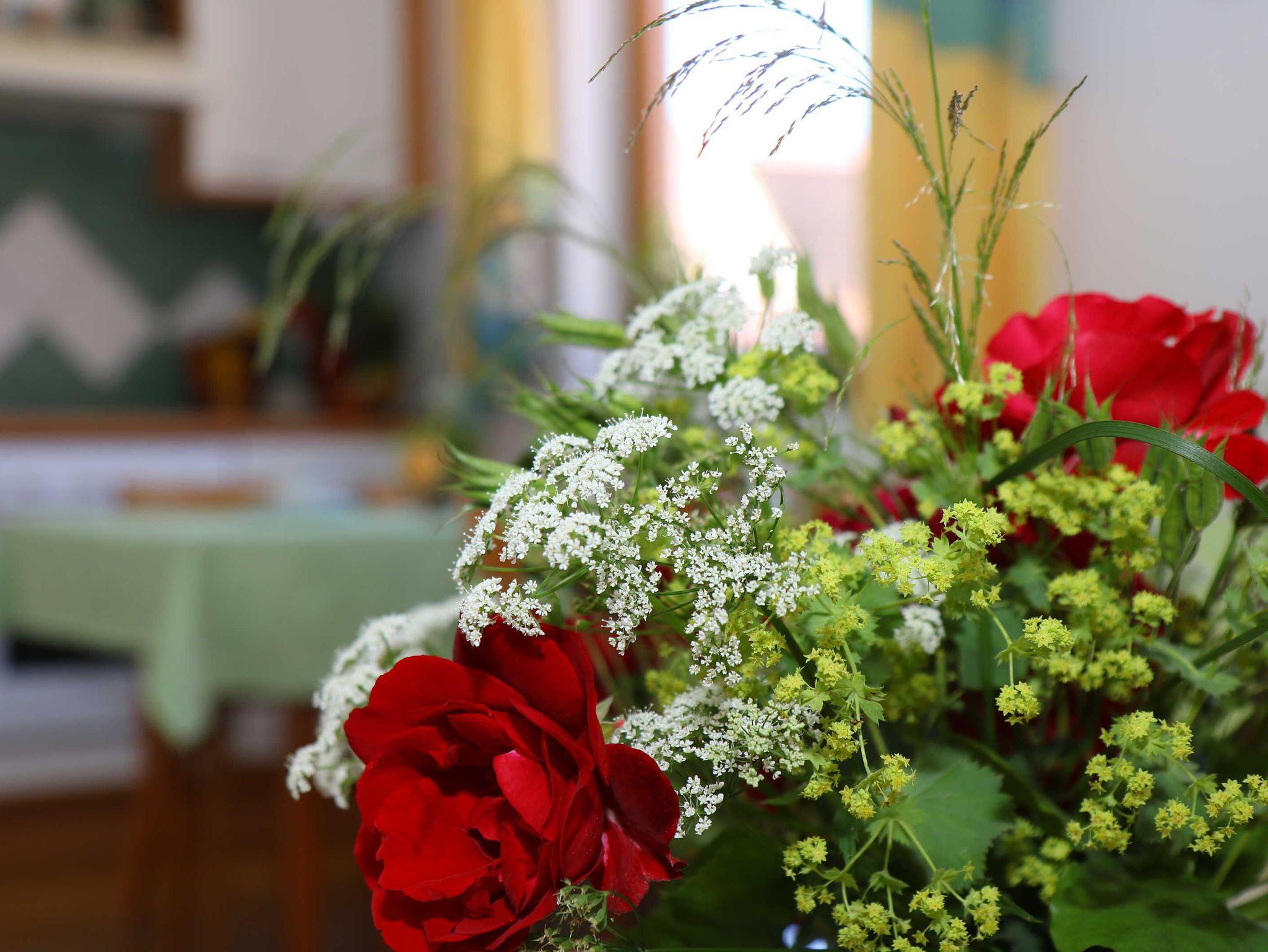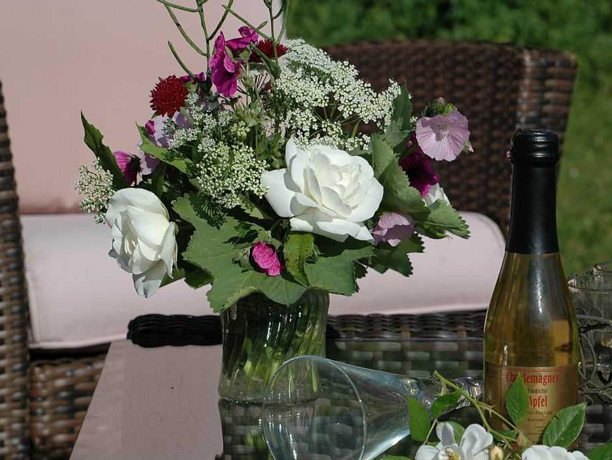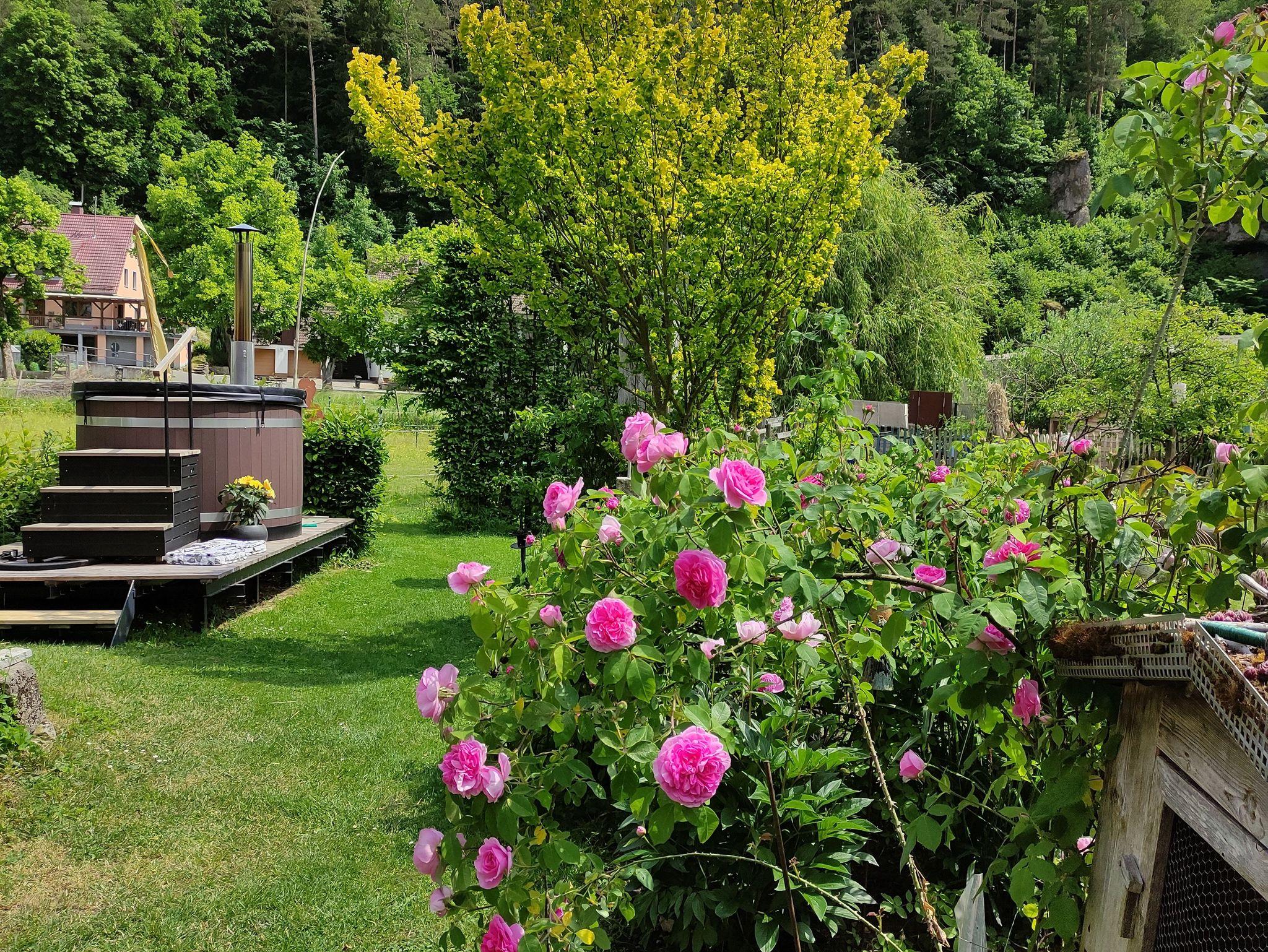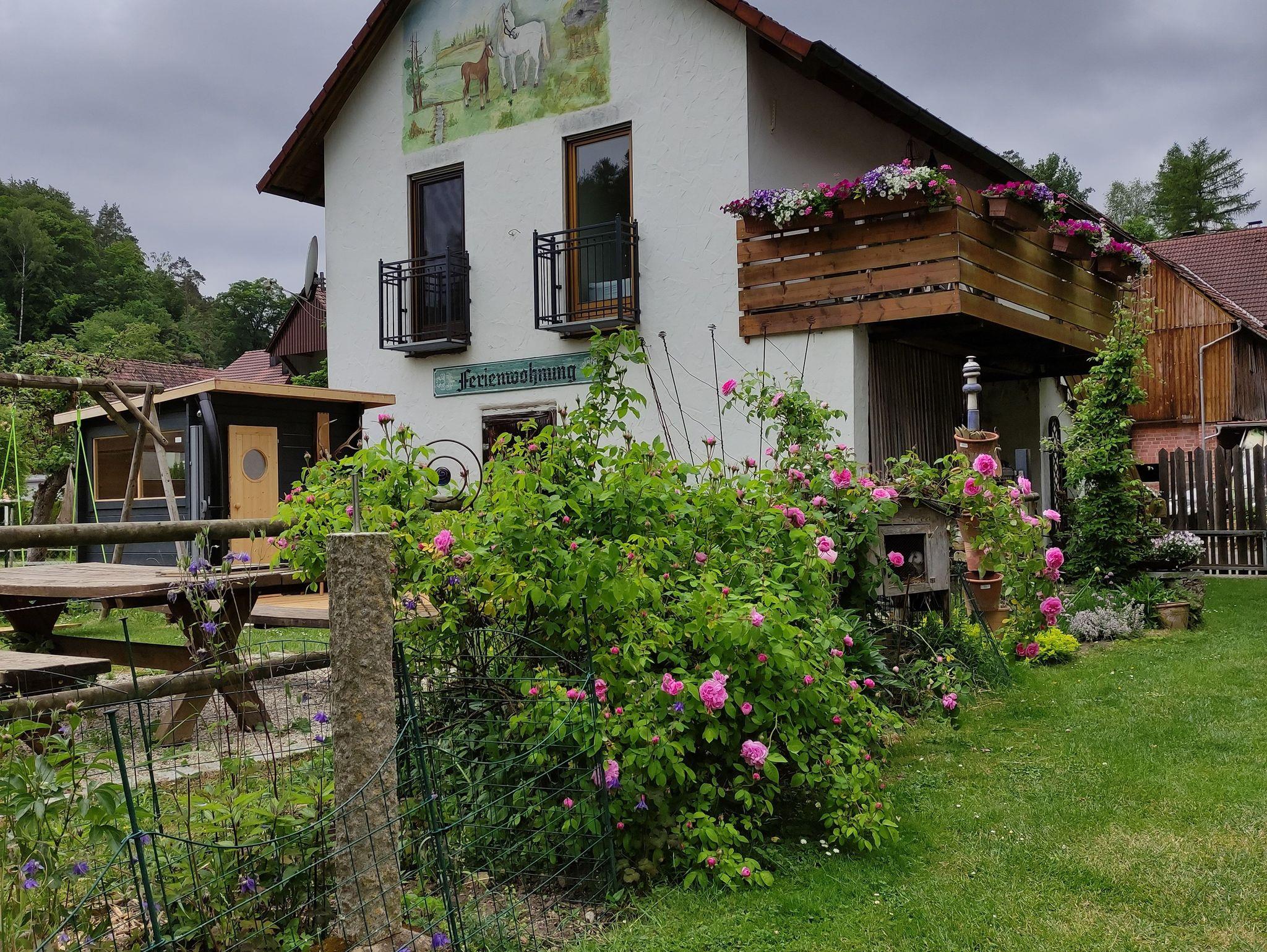 Vom großen Balkon schweift der Blick ins malerische Wiesenttal und über den weitläufigen Bauerngarten mit duftenden Kräutern und Rosen. Hier fühlen sich auch unsere Hasen, Hühner, Katzen und Enten pudelwohl. Wer mehr über 'Wilde Kräuter' erfahren möchte, geht mit der Hausherrin - einer ausgebildeten Kräuterpädagogin - auf Entdeckertour.