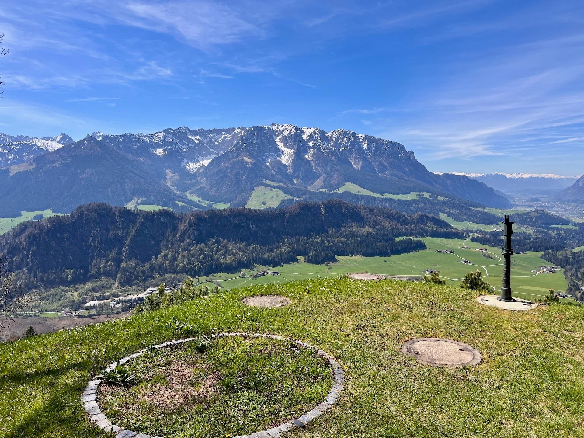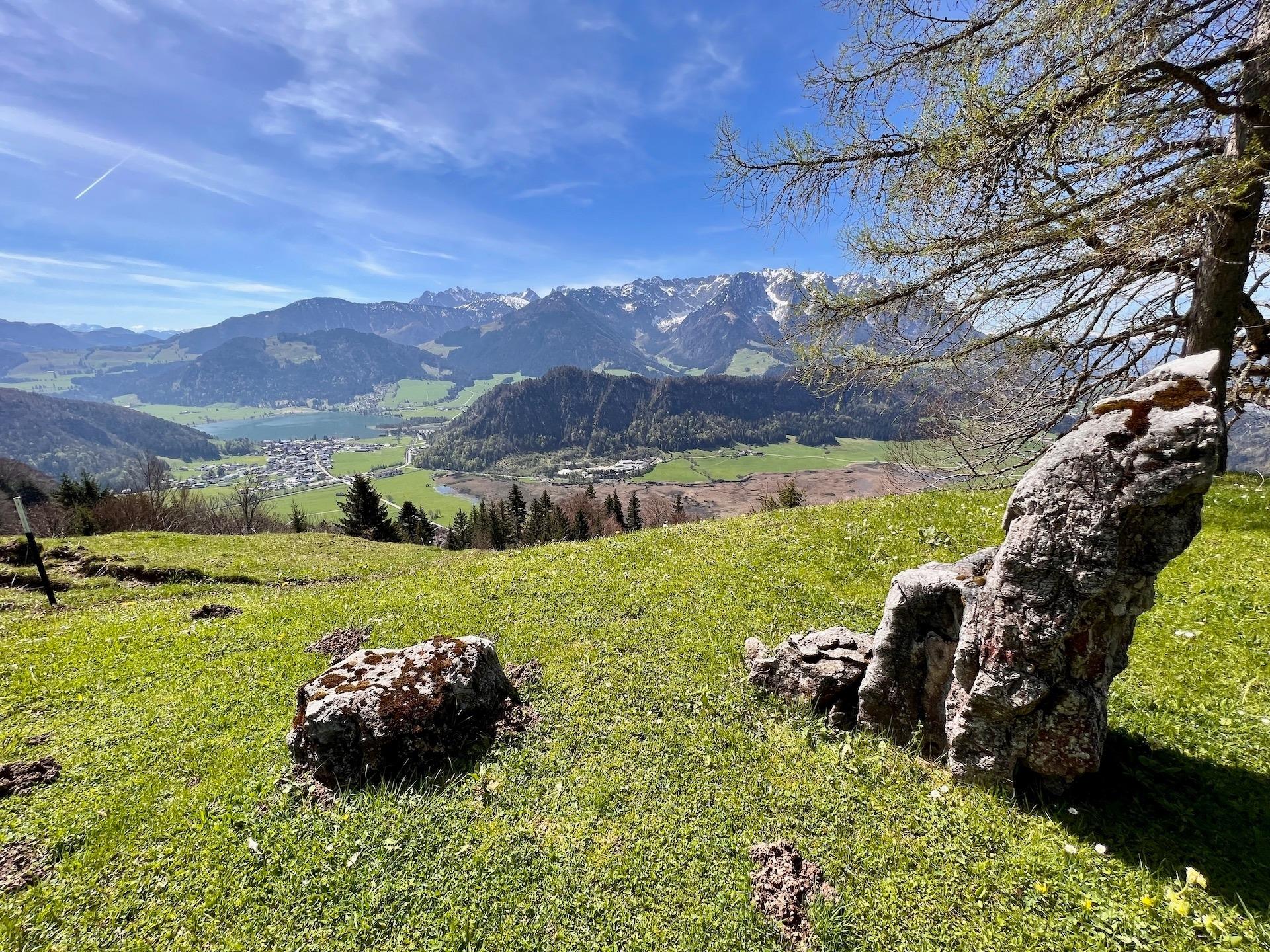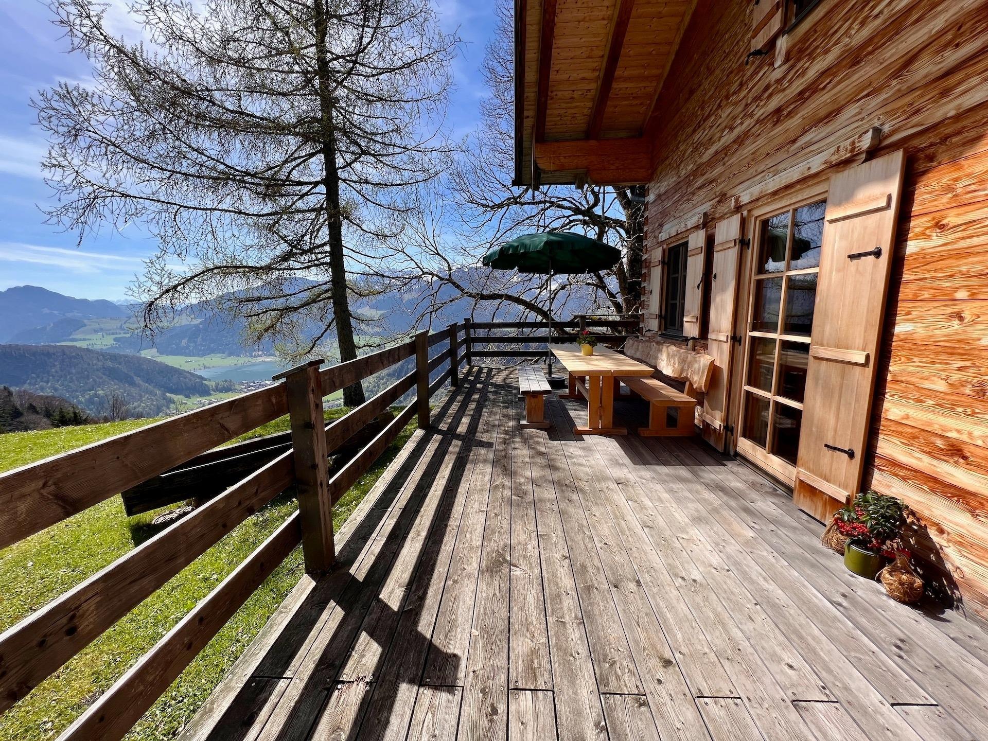 Von der Hütte hat man einen beeindruckenden Ausblick auf das Tal mit dem Walchsee sowie den Zahmen Kaiser bis nach Kufstein und das Inntal.