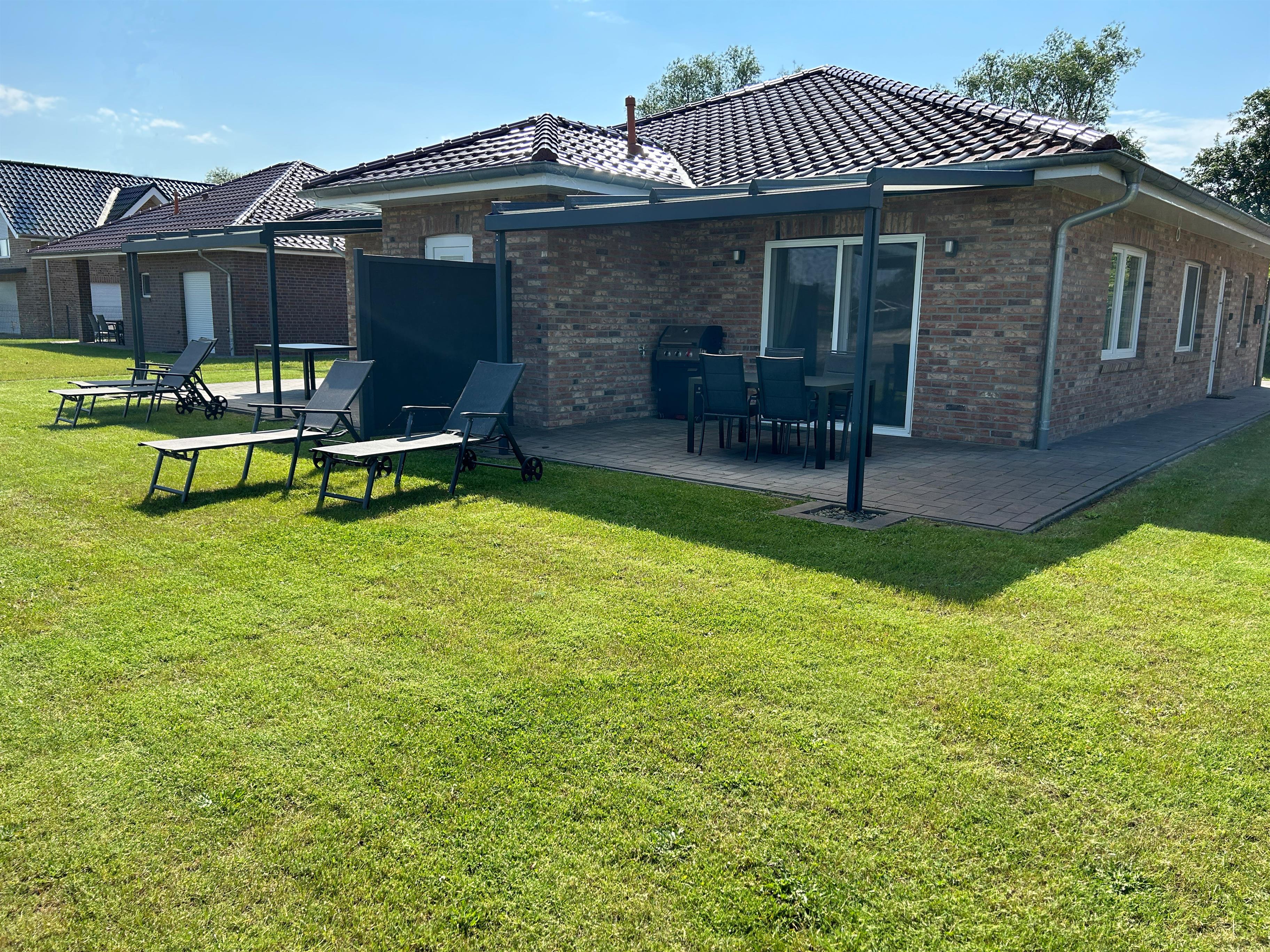 -komplette Ausstattung der Terrasse mit Bestuhlung-Tisch-Grill und Liegen