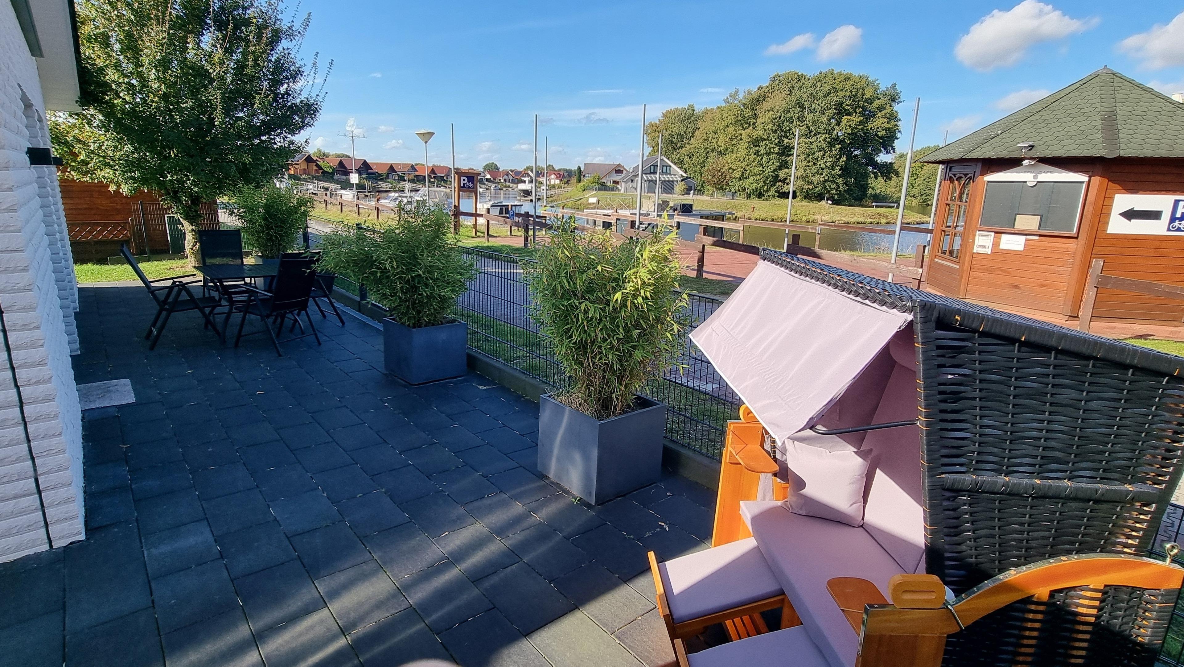 Wellness-Neubau-Ferienhaus mit freiem Blick über den Sportboothafen vom Marinapark Walchum!!