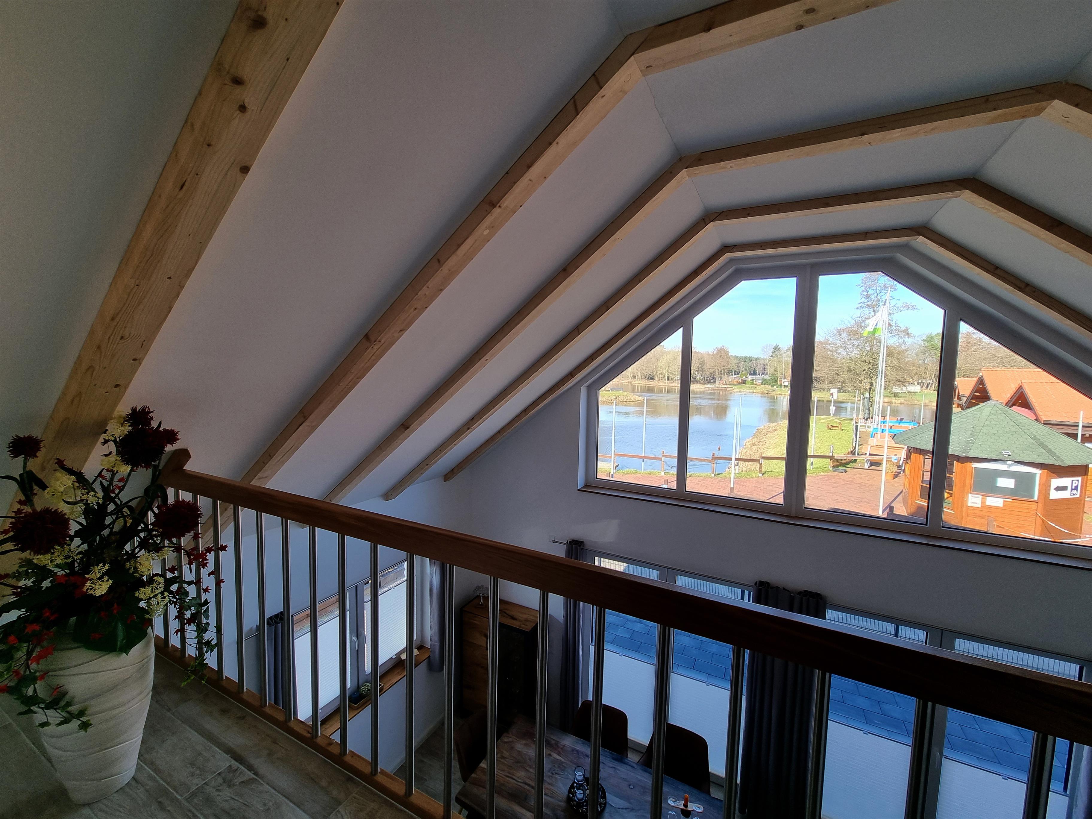 Genießen Sie den phantastischen Ausblick auf den maritimen Sportboothafen ... aus dem Wohnzimmer heraus, von der Terrasse sowie von der Empore im Haus.