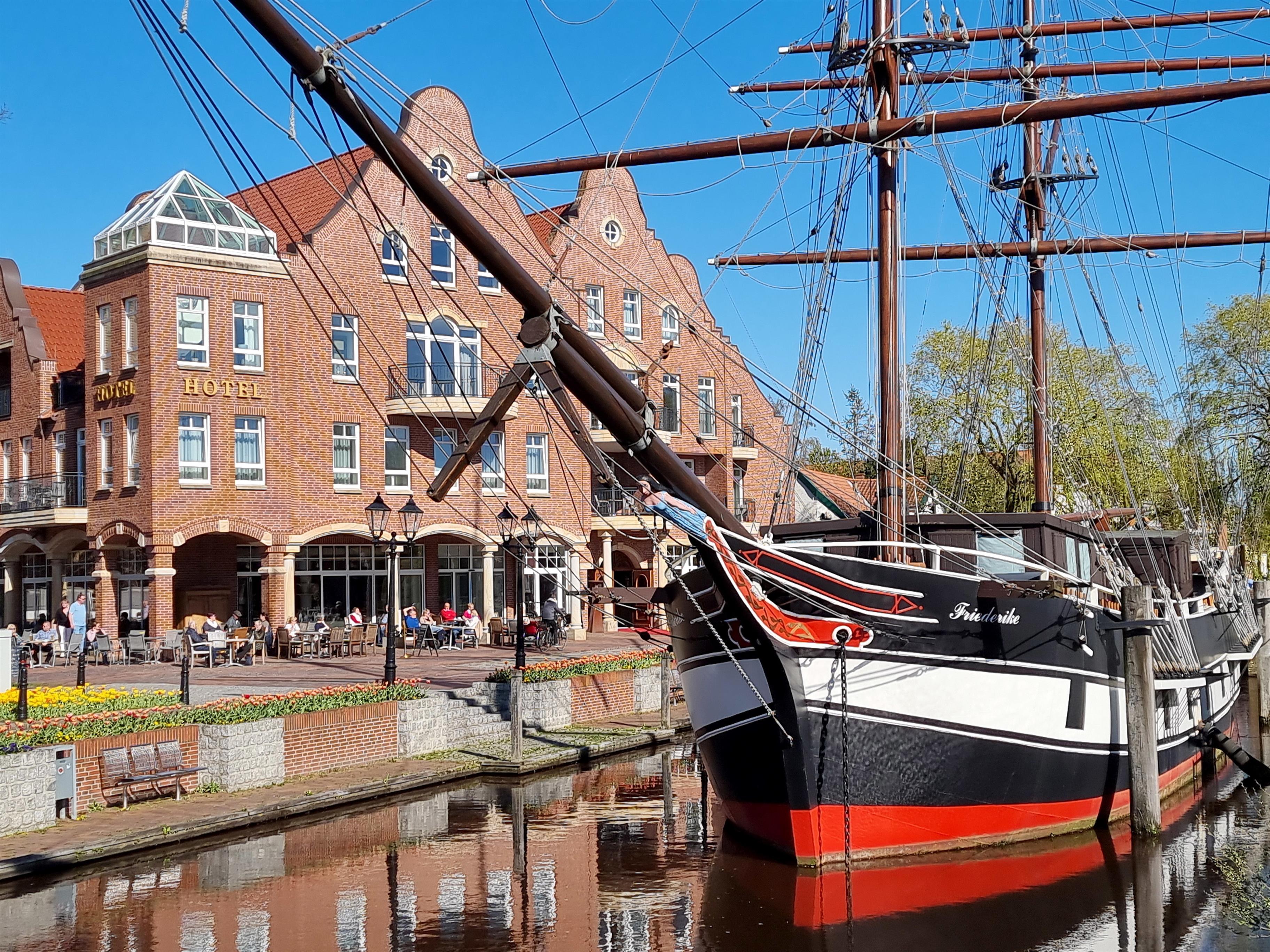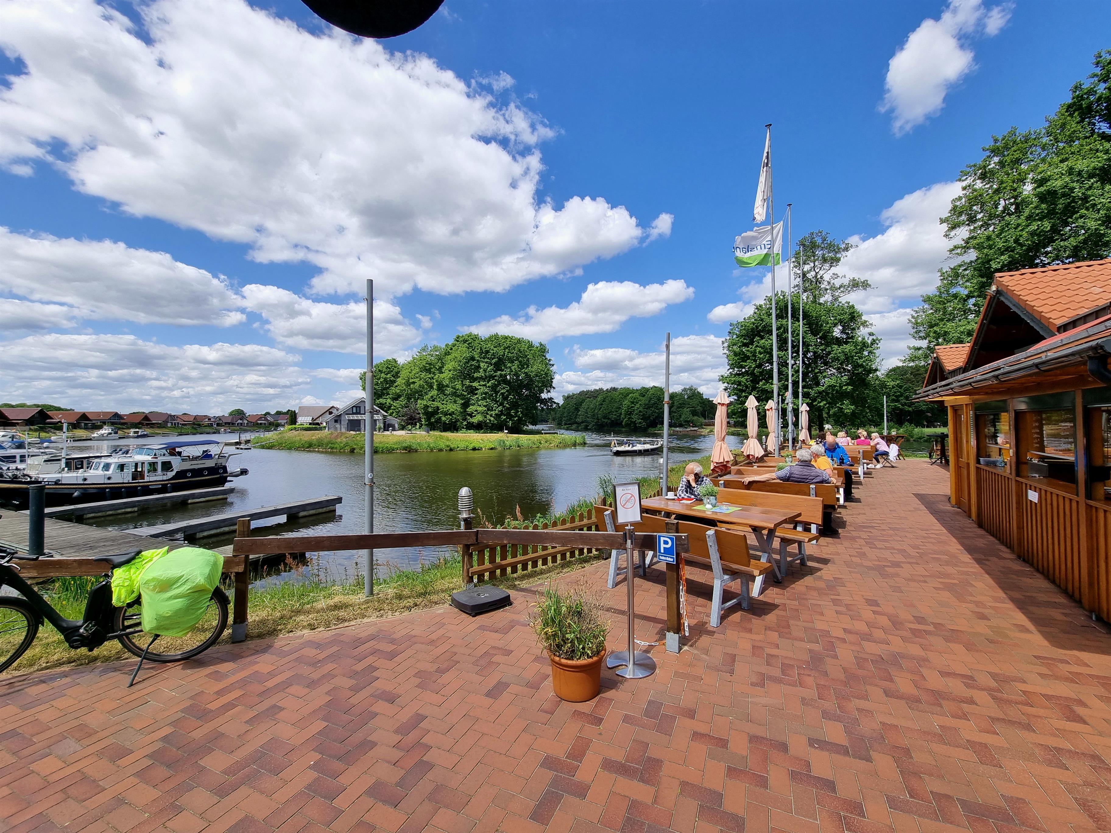 In nur etwa 2 km Entfernung befindet sich das HafenCafe, wo Sie unmittelbar am Wasser sitzen können, also gaaaanz entspannt auf das Hafenbecken sowie die Ems schauen können. Angeboten werden diverse Gerichte sowie auch Kaffee und Kuchen. Von etwa Ostern bis Oktober ist das HafenCafe an den Wochenenden derzeit geöffnet.