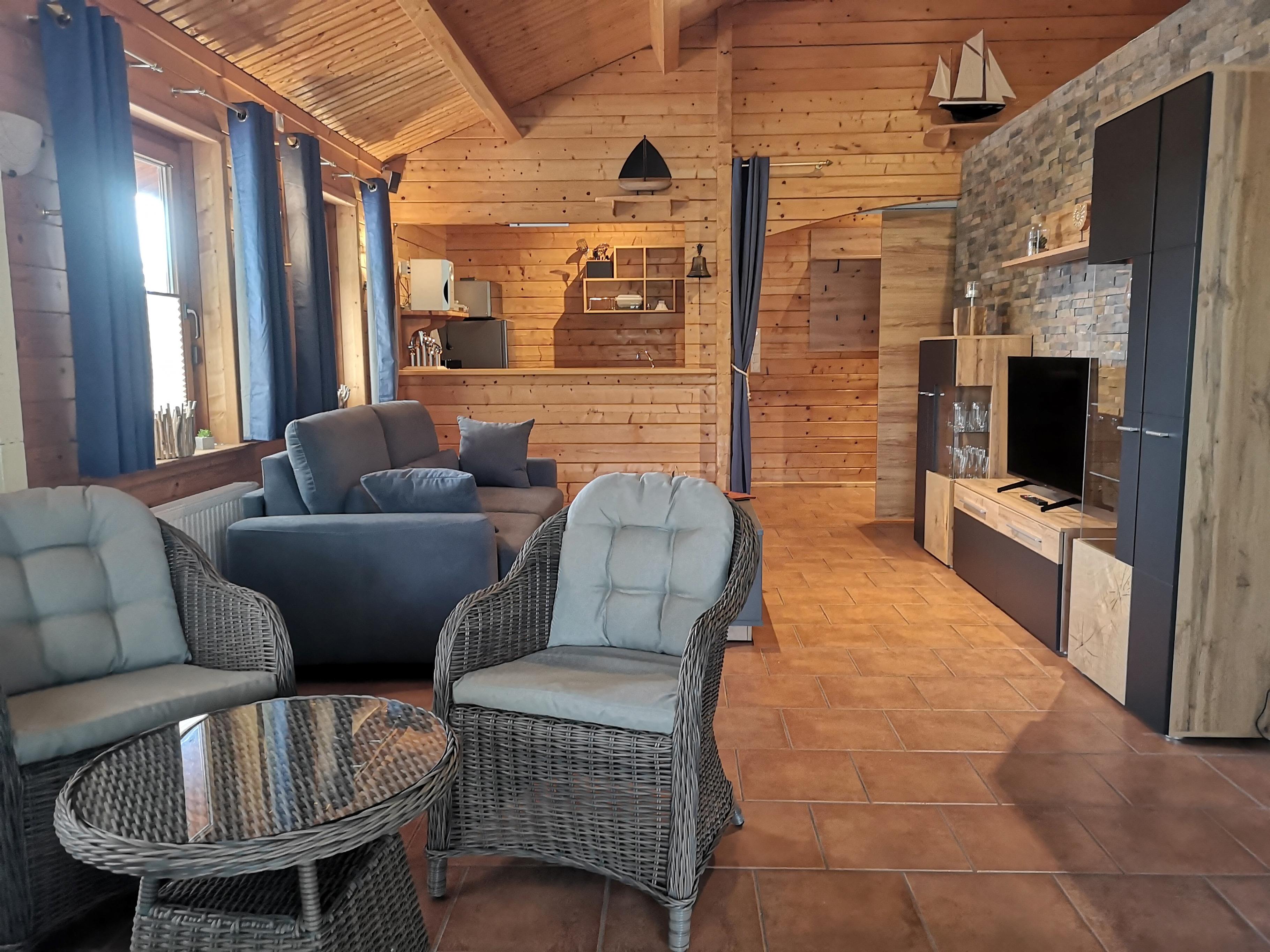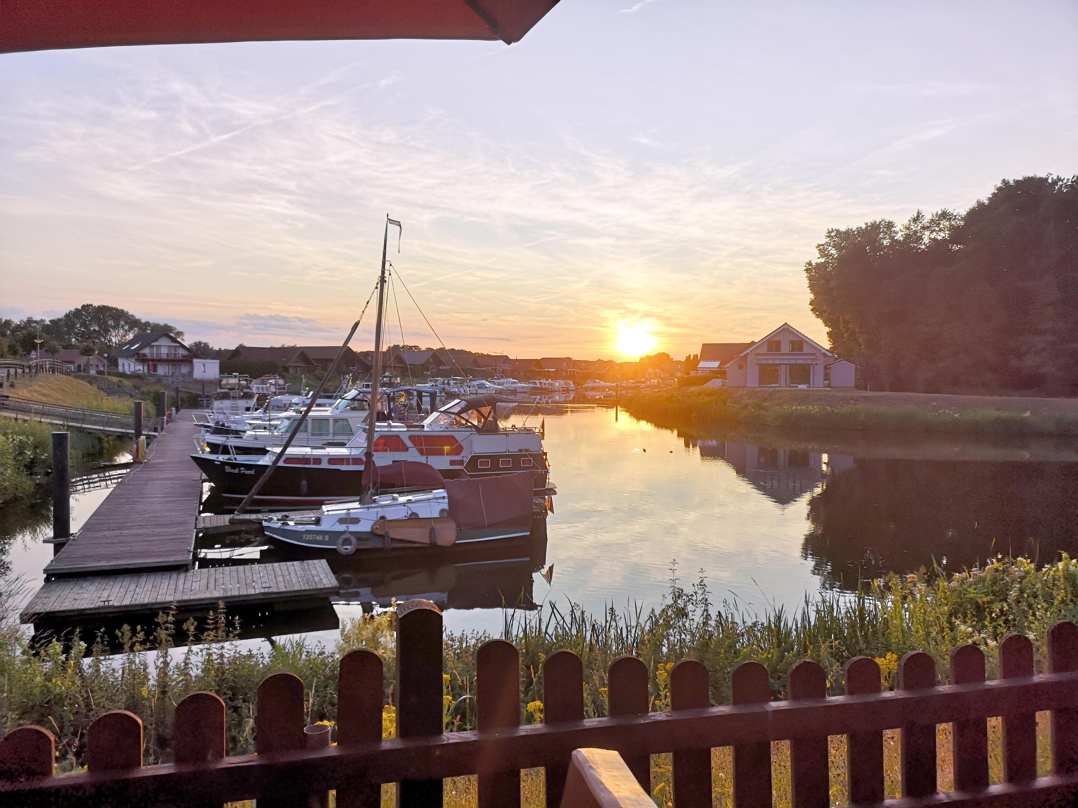 Neben dem ebenerdigen Ferienhaus befindet sich das Hafencafe. Hier sitzt man herrlich auf der Terrasse und schaut auf den Hafen. Diverse Gerichte sowie auch Kaffee und Kuchen werden hier angeboten. Eine Innenterrasse vom Hafencafe befindet sich direkt neben dem Ferienhaus, so dass man evtl auch mal Gäste hören könnte. Diese Terrasse wird jedoch nur sehr selten benutzt.