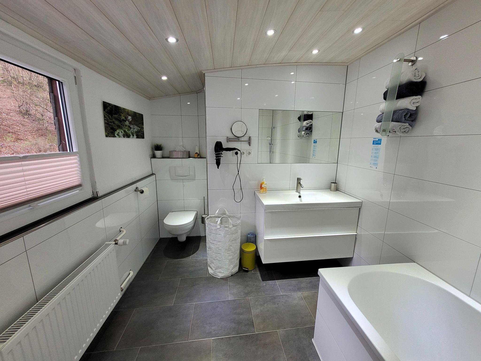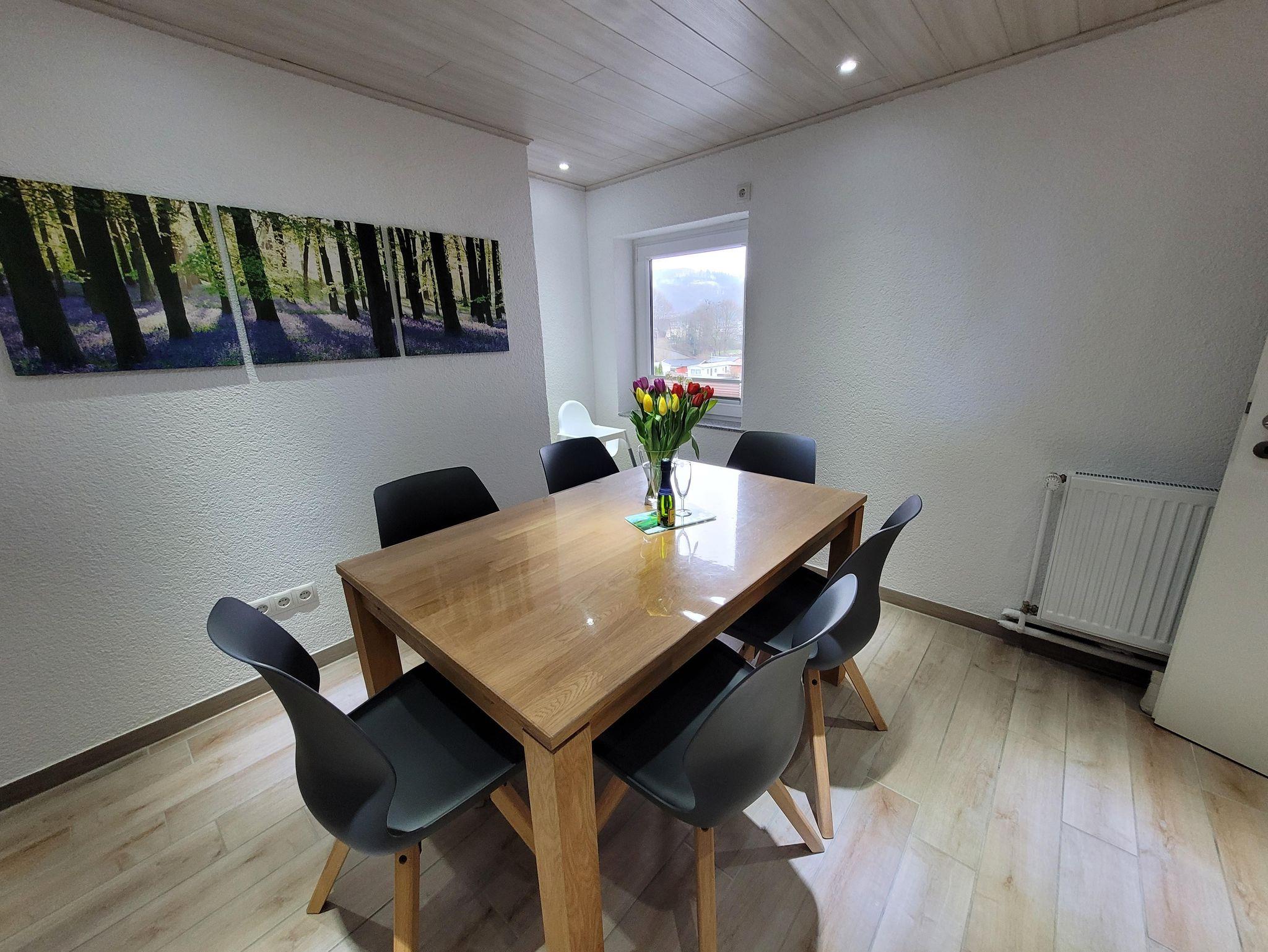 Die Ferienwohnung hat zwei getrennte Schlafzimmer, Gäste-WC, ein geräumiges Bad mit Dusche und Badewanne, ein gemütliches Wohnzimmer mit großer Couch, großem Flachbildfernseher mit Kabelanschluss und ein gemütliches Esszimmer.
