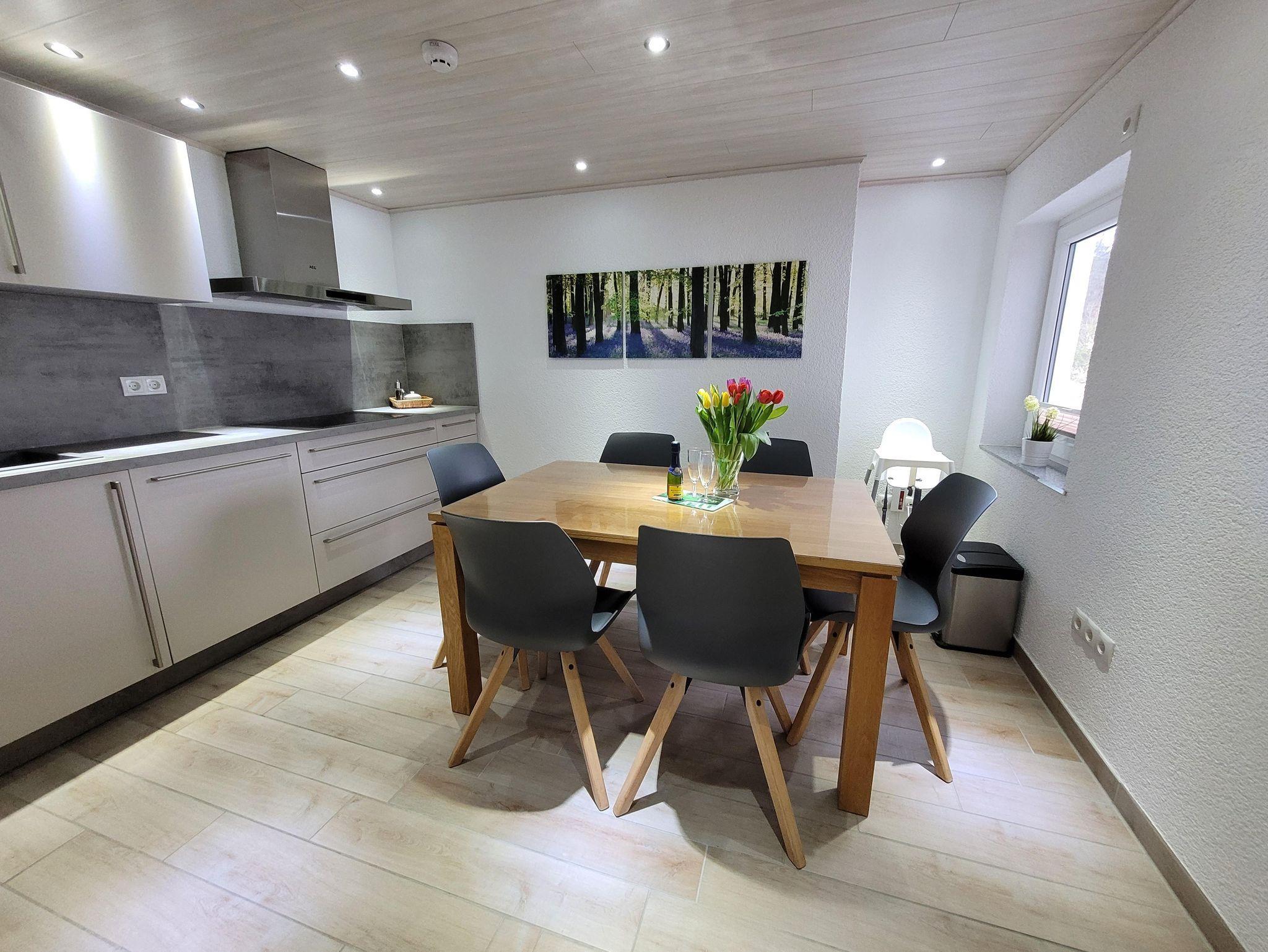 Eine moderne, hochwertige, voll ausgestattete Einbauküche mit Geschirrspülmaschine, hochgesetztem Backofen, Mikrowelle mit Grillfunktion und Induktionskochfeld rundet Ihren Urlaub wunderbar ab.
