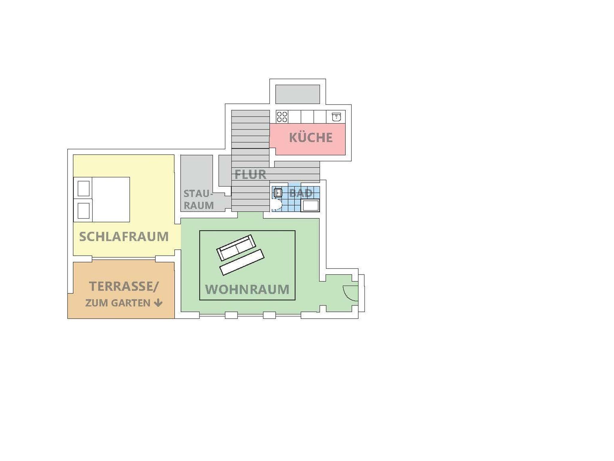 Ferienwohnung für bis zu 3 Personen, ruhige Ortslage, neue hochwertige Einrichtung, 65 m², eigener Eingang, Wohnzimmer, Schlafzimmer, komplette Einbauküche, Dusche + WC, Terrasse (teilweise überdacht) mit Gartennutzung und Gartenmöbeln, PKW-Stellplatz, Radio sowie SAT-TV. Zur Ausstattung gehören 2 Handtücher pro Person. Die Betten sind bei Anreise bezogen. Nichtraucher-Wohnung, keine Haustiere, incl. Endreinigung.